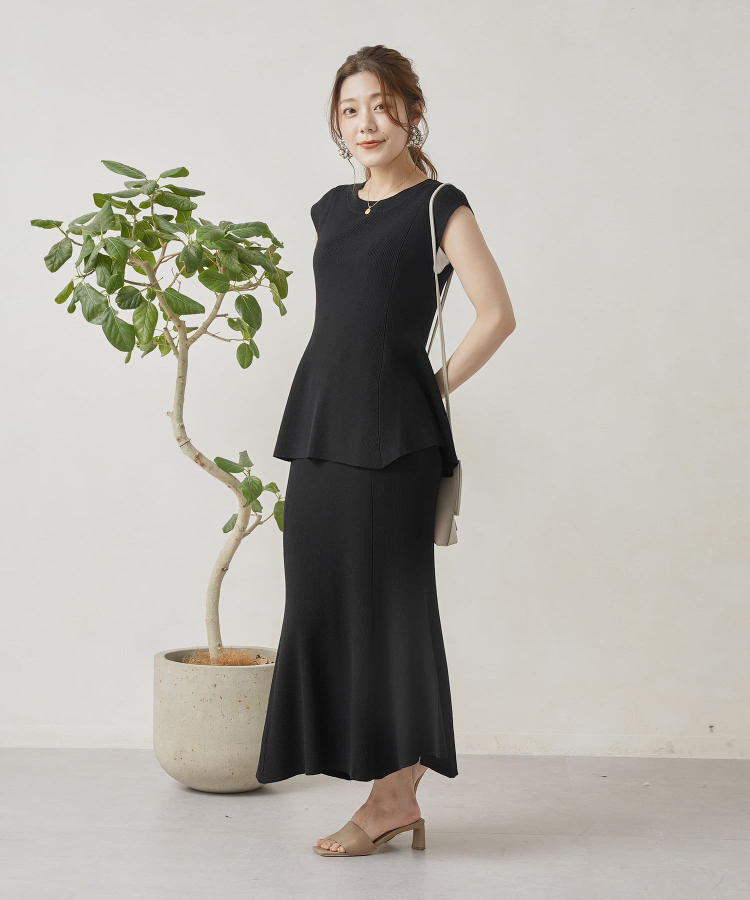 ぺプラムのシルエットでメリハリ着痩せシルエット