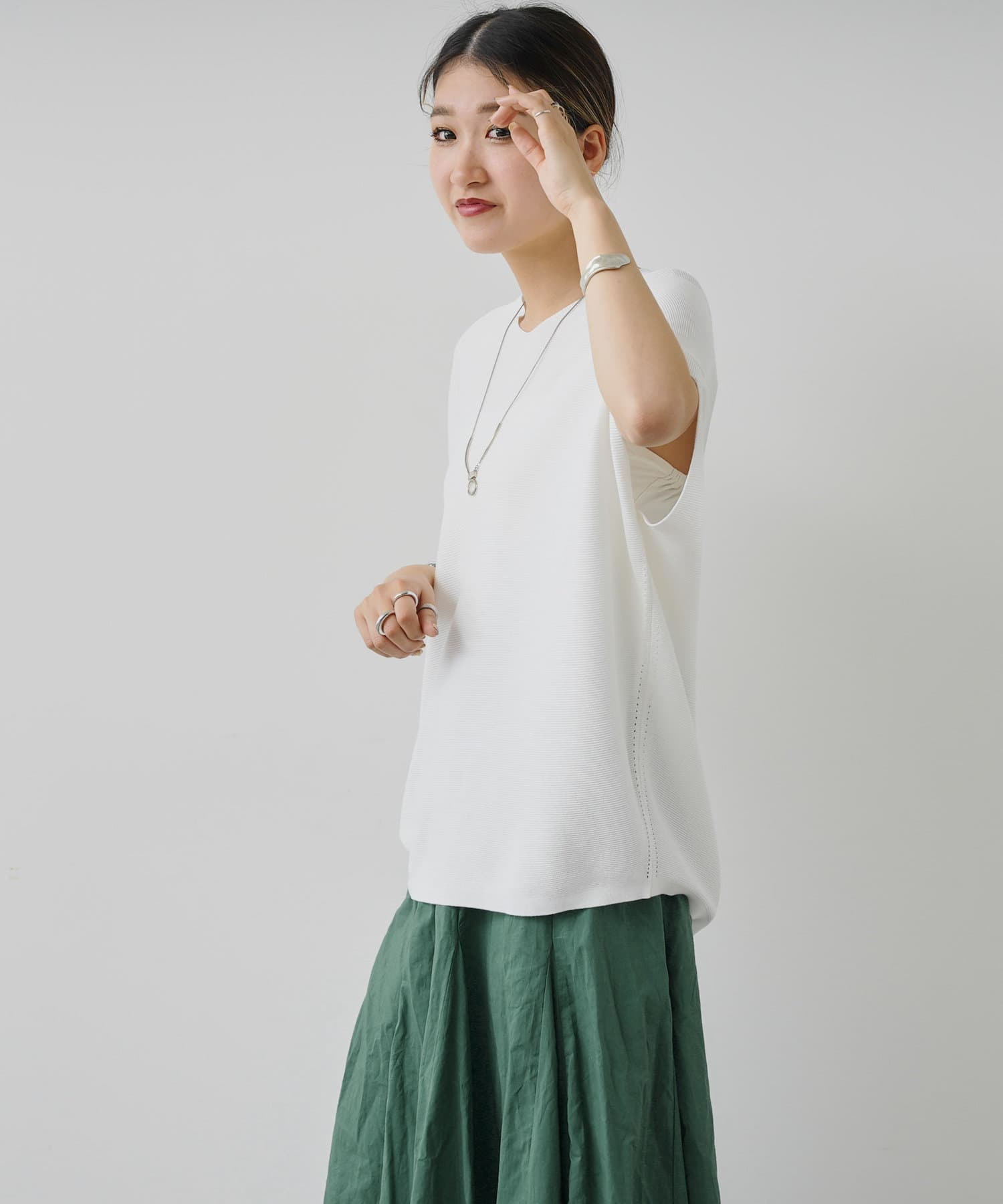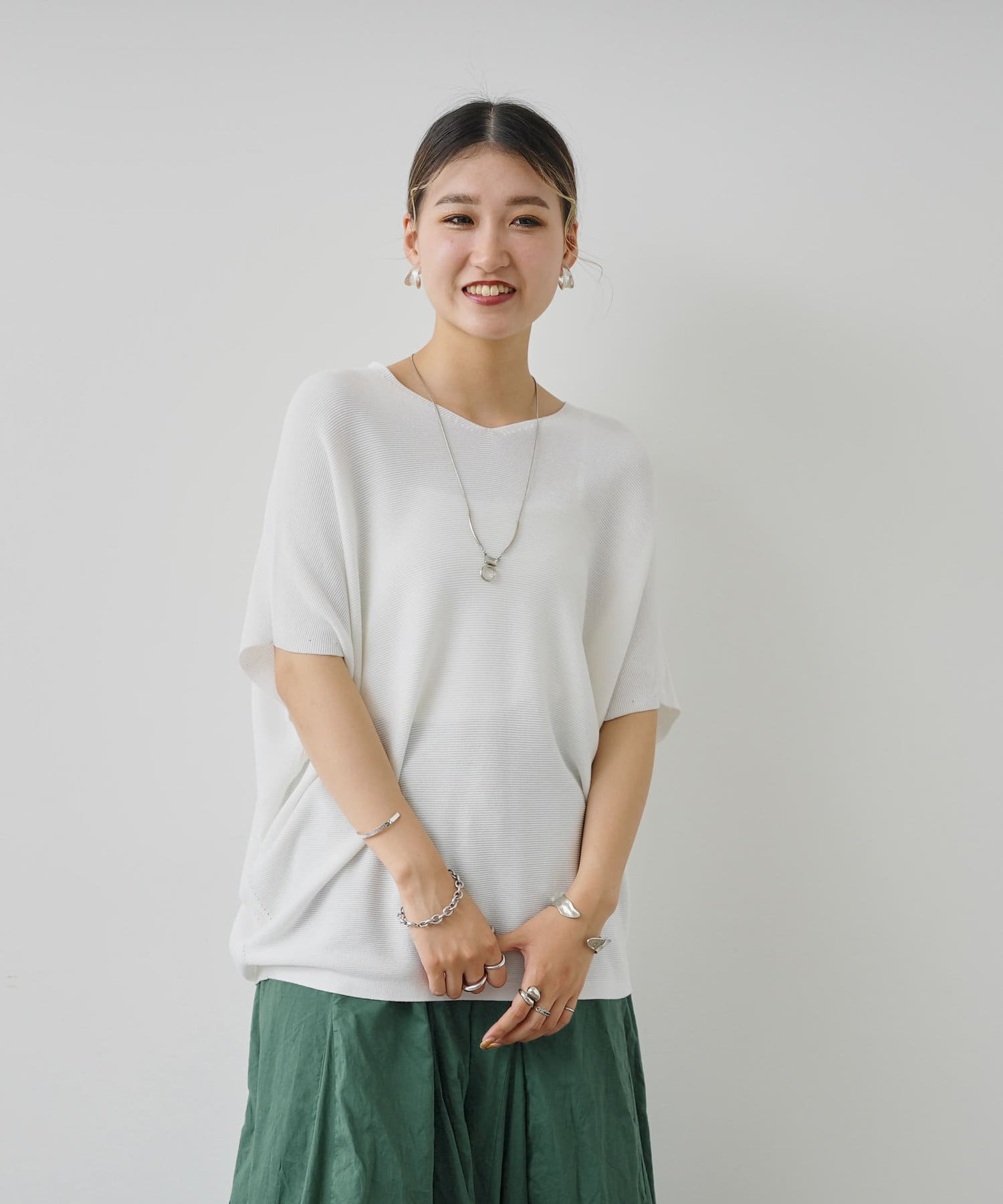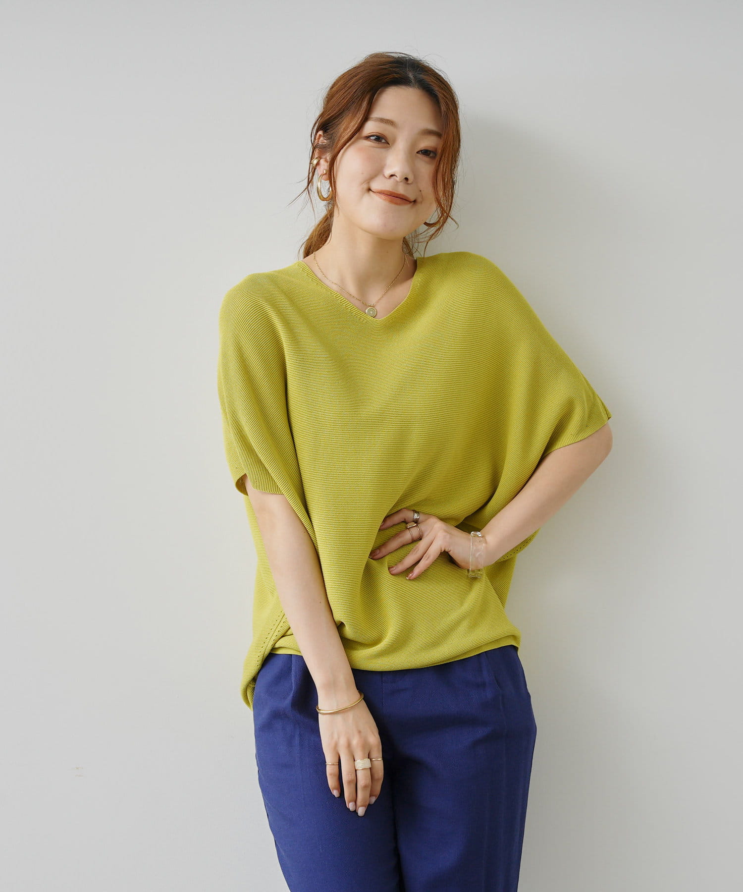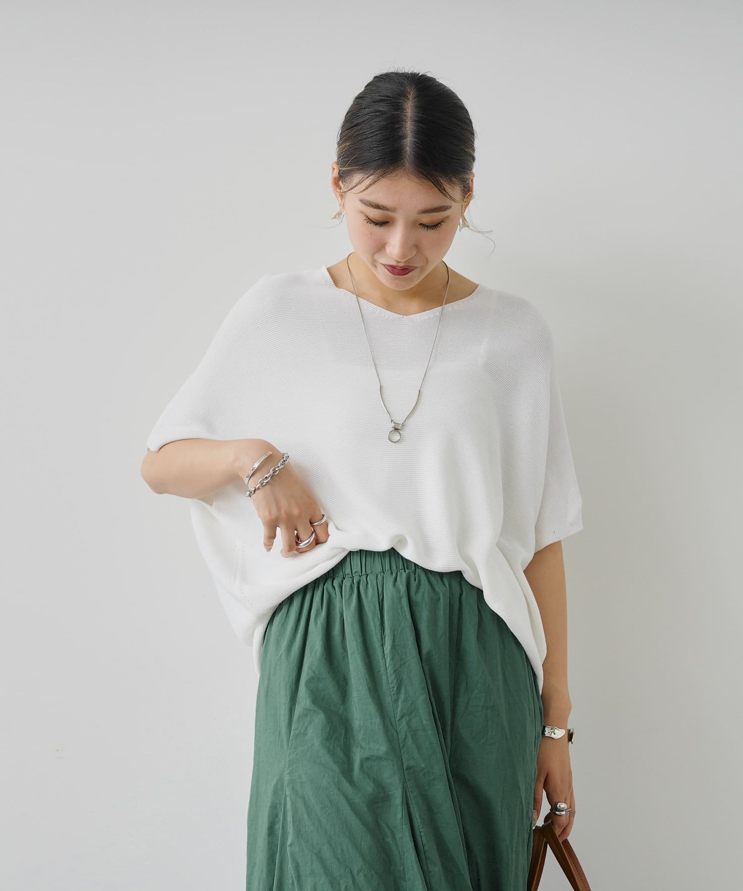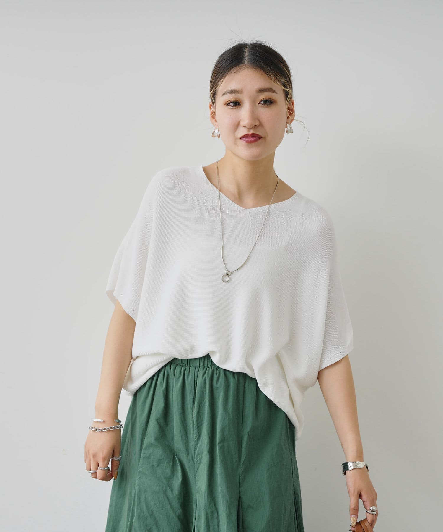 ・二の腕を品良くカバーしてくれる落ち感のあるニット
