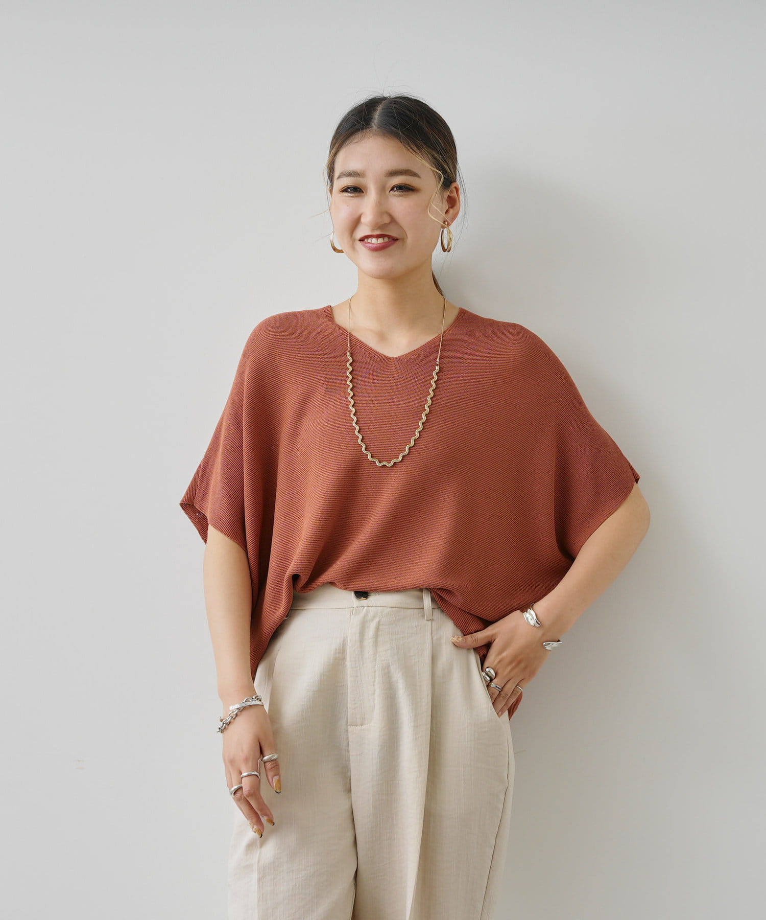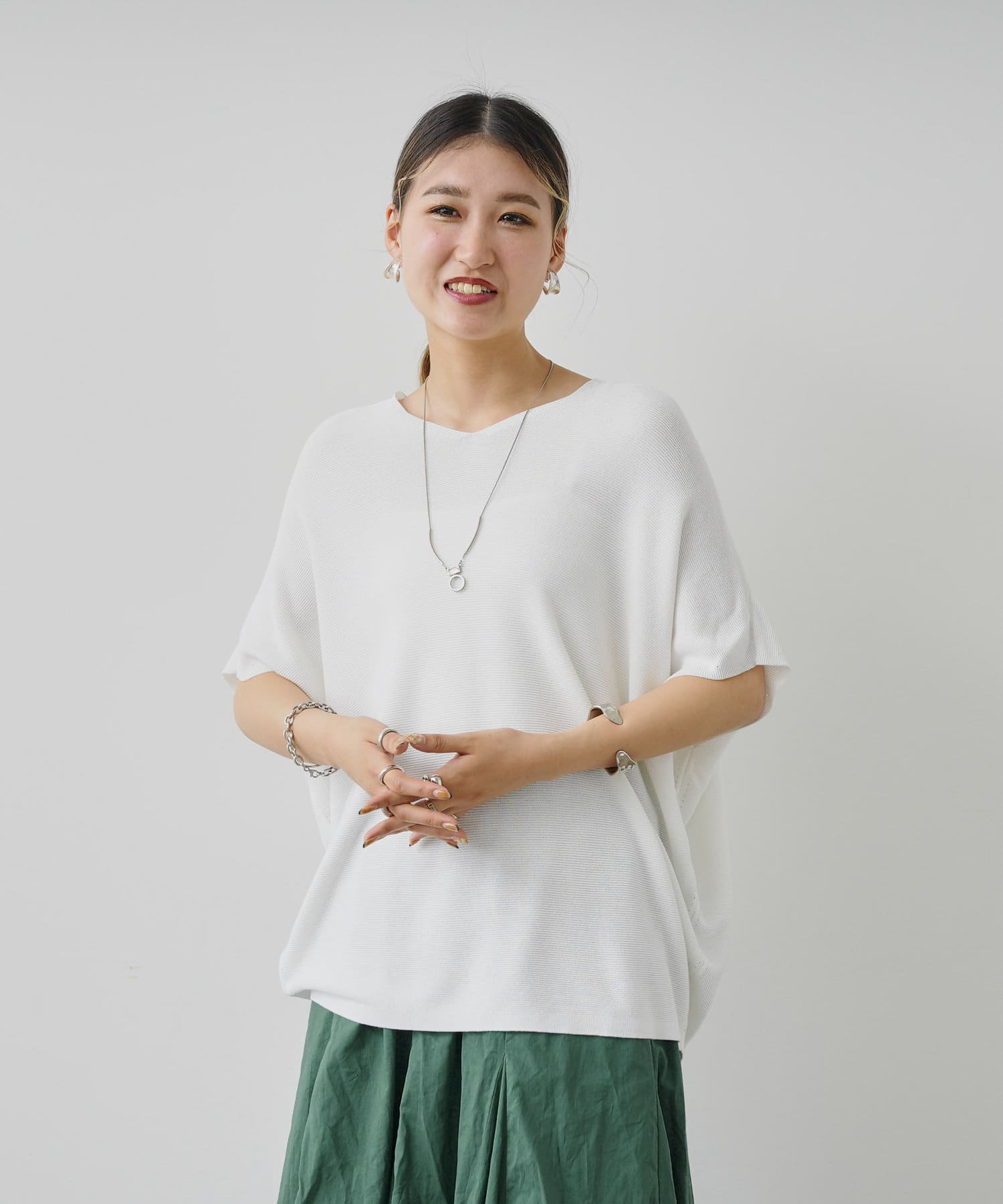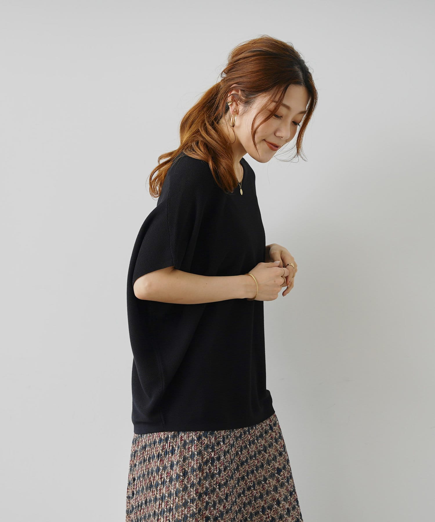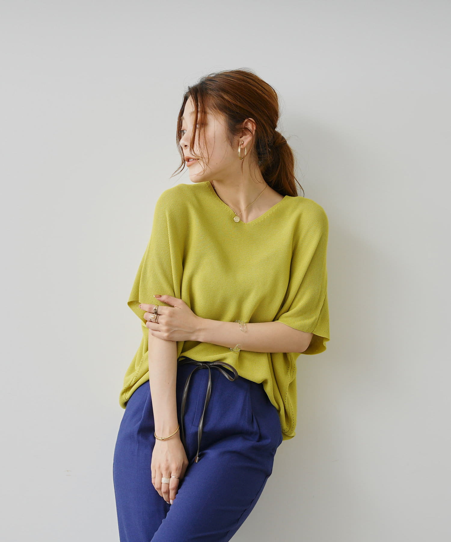・二の腕を品良くカバーしてくれる落ち感のあるニット