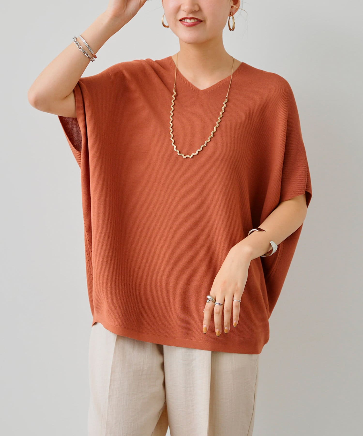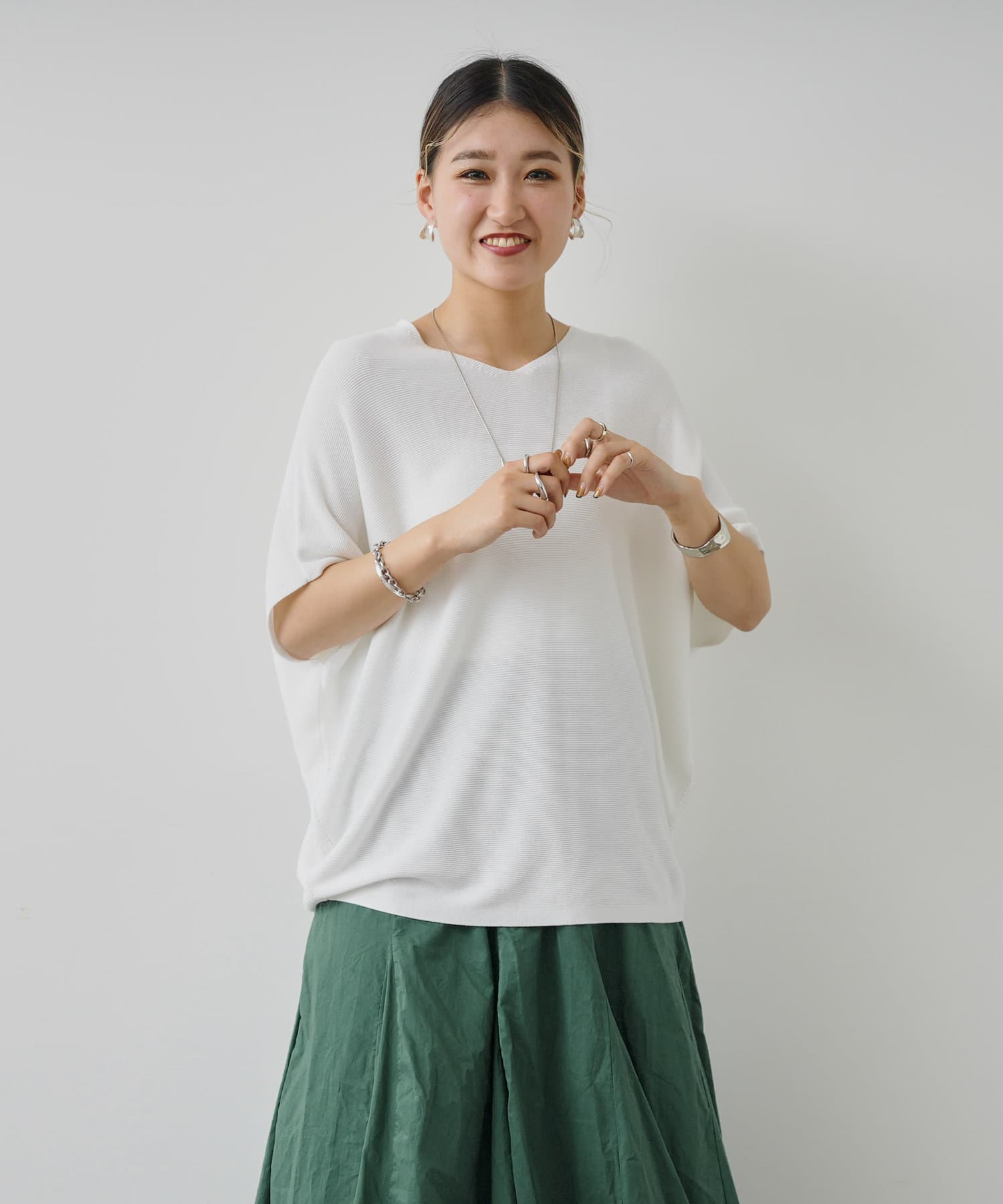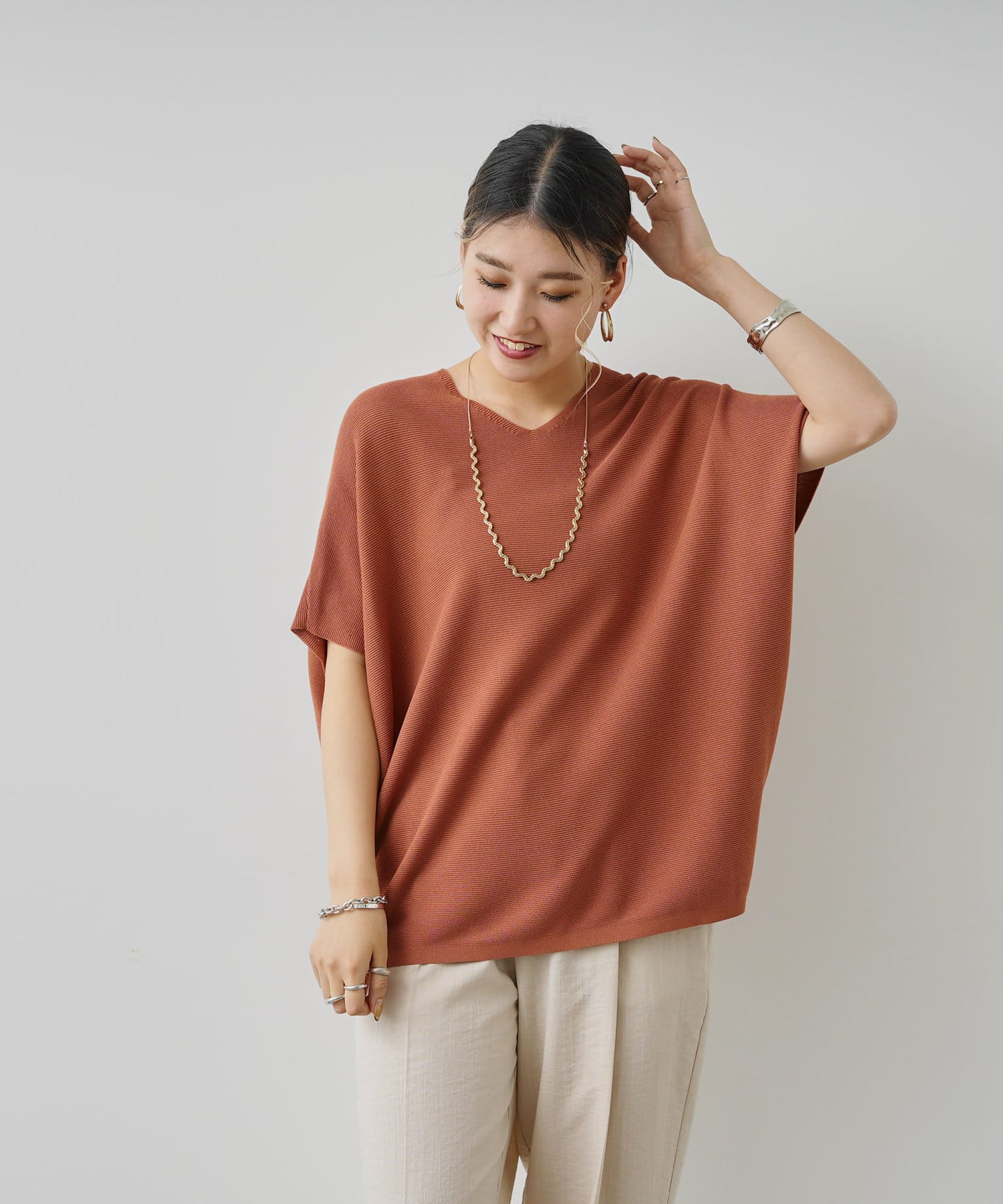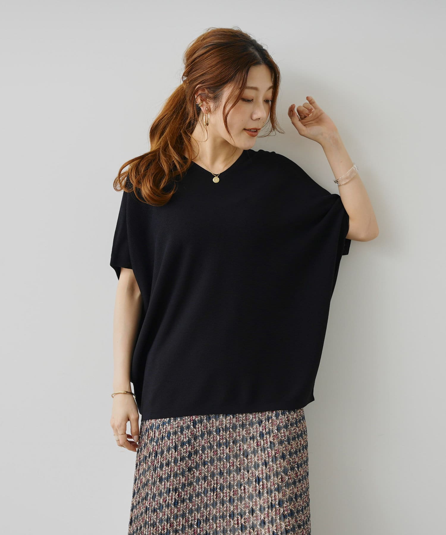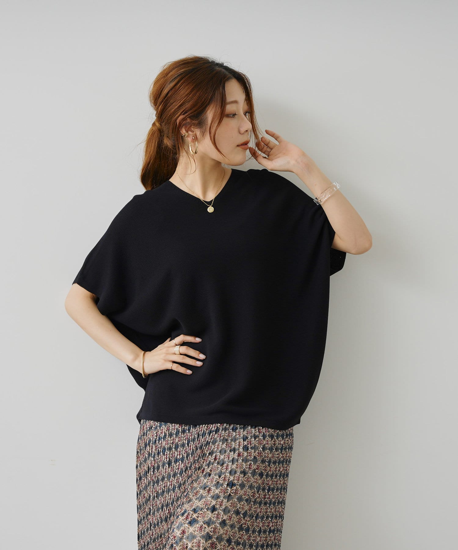 ・二の腕を品良くカバーしてくれる落ち感のあるニット