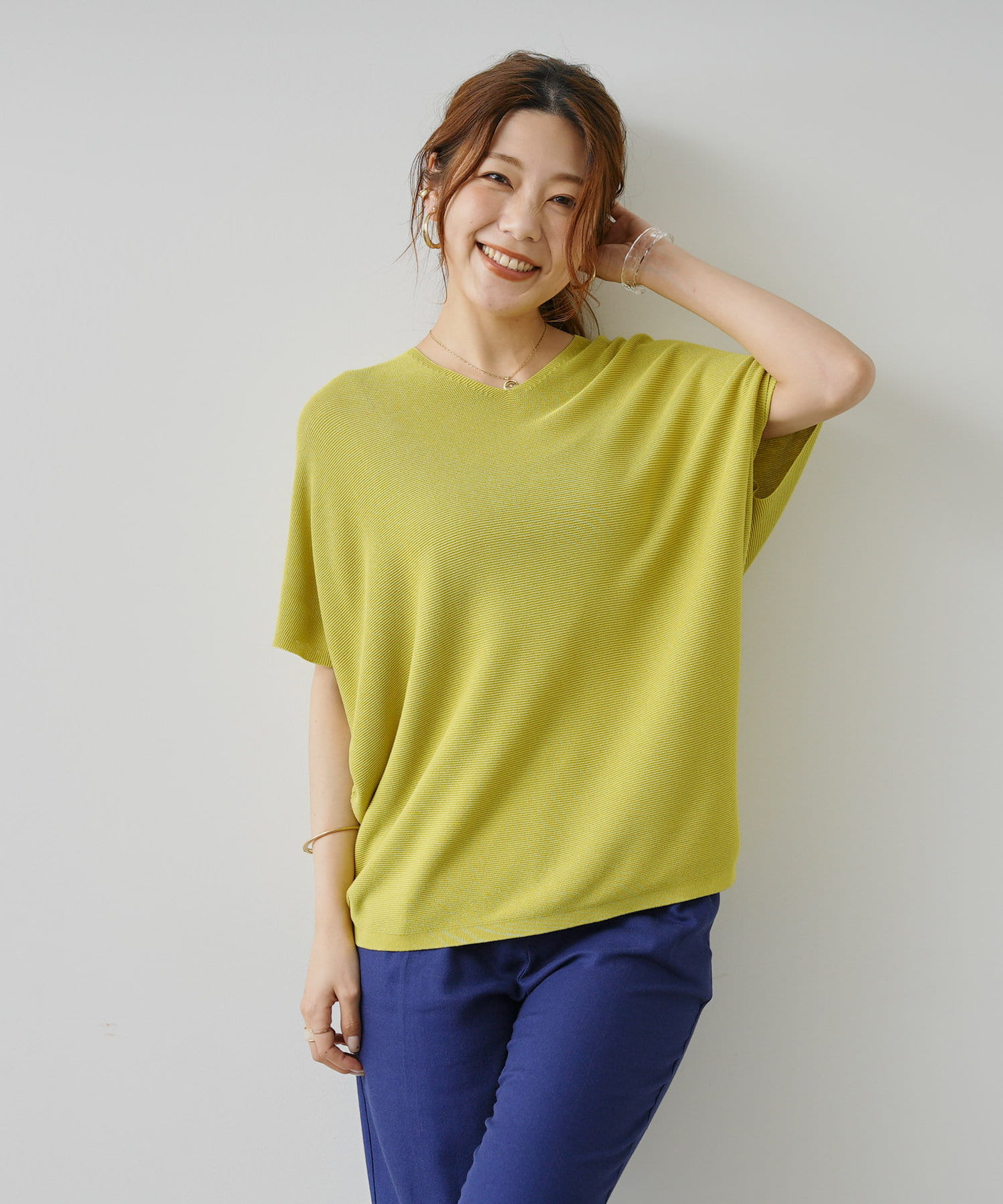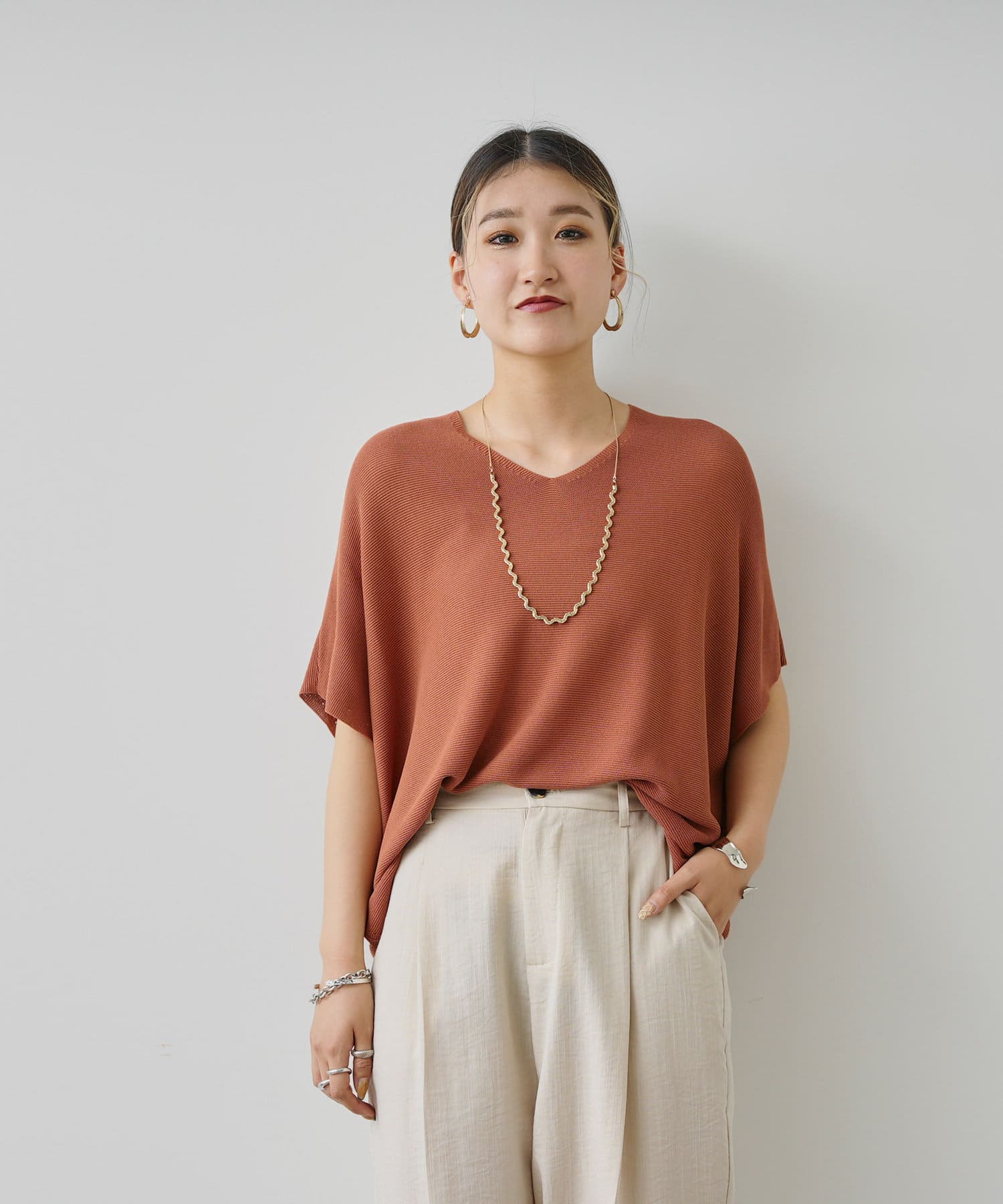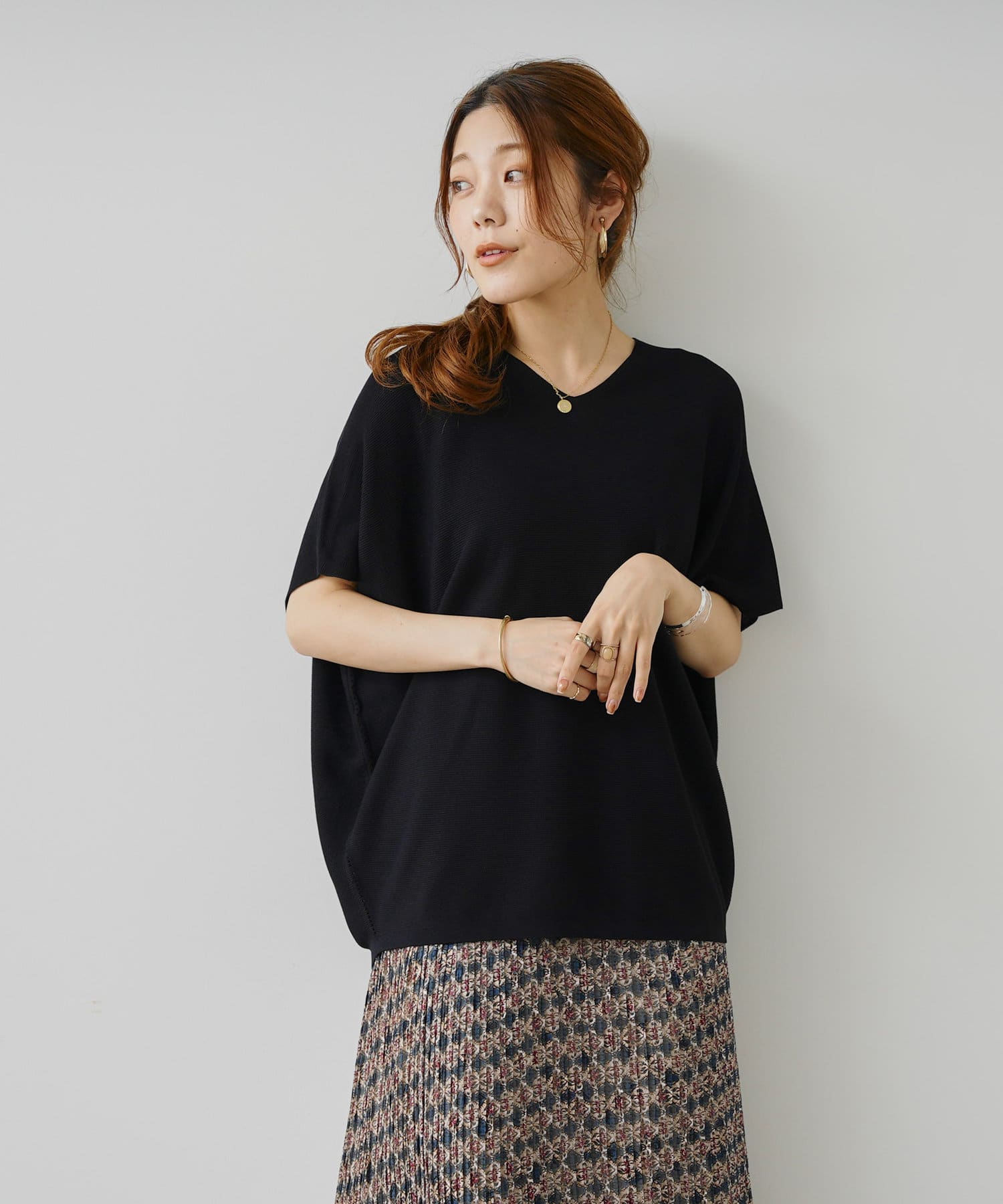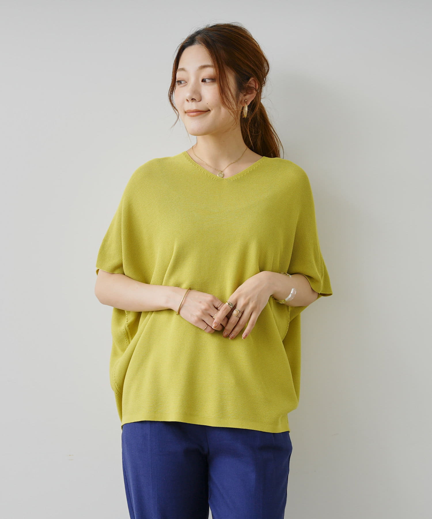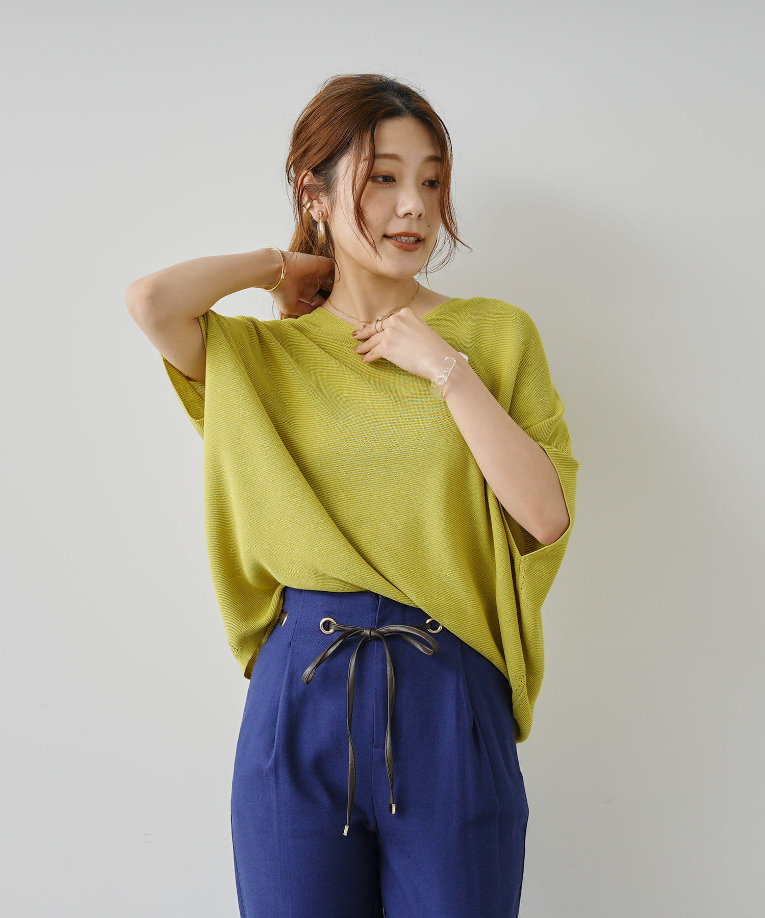 ・二の腕を品良くカバーしてくれる落ち感のあるニット