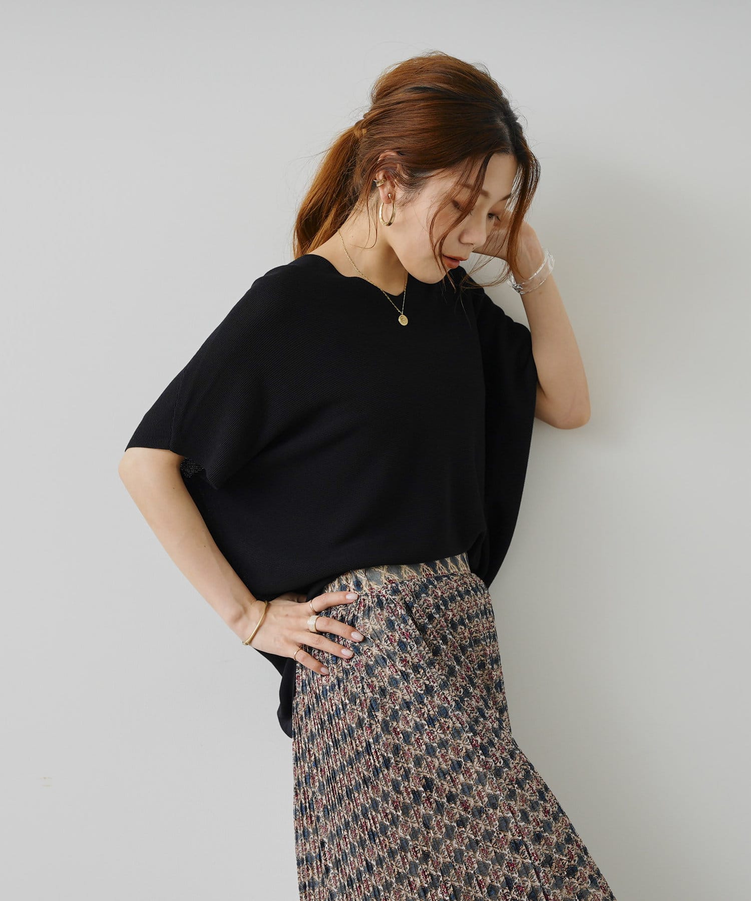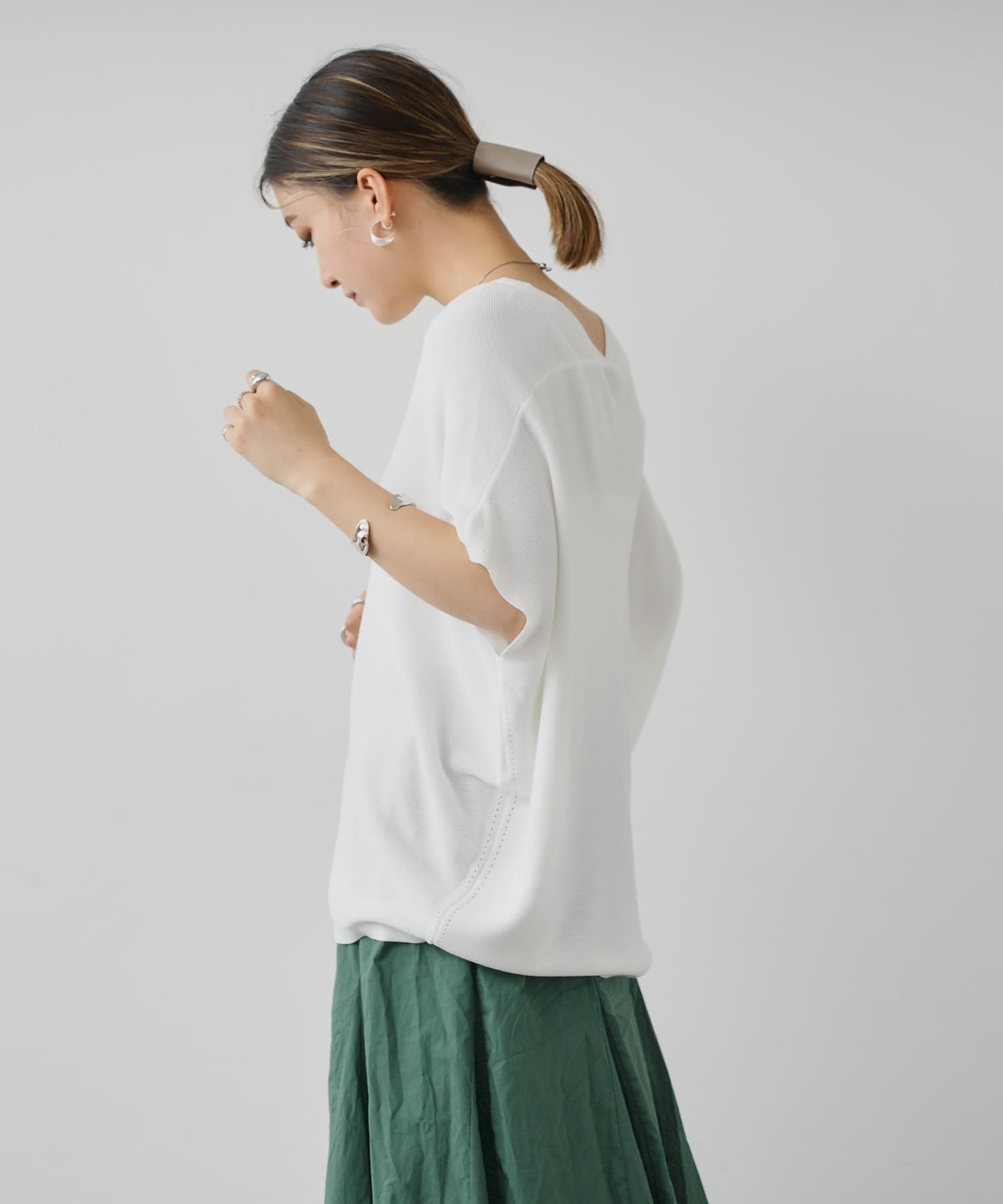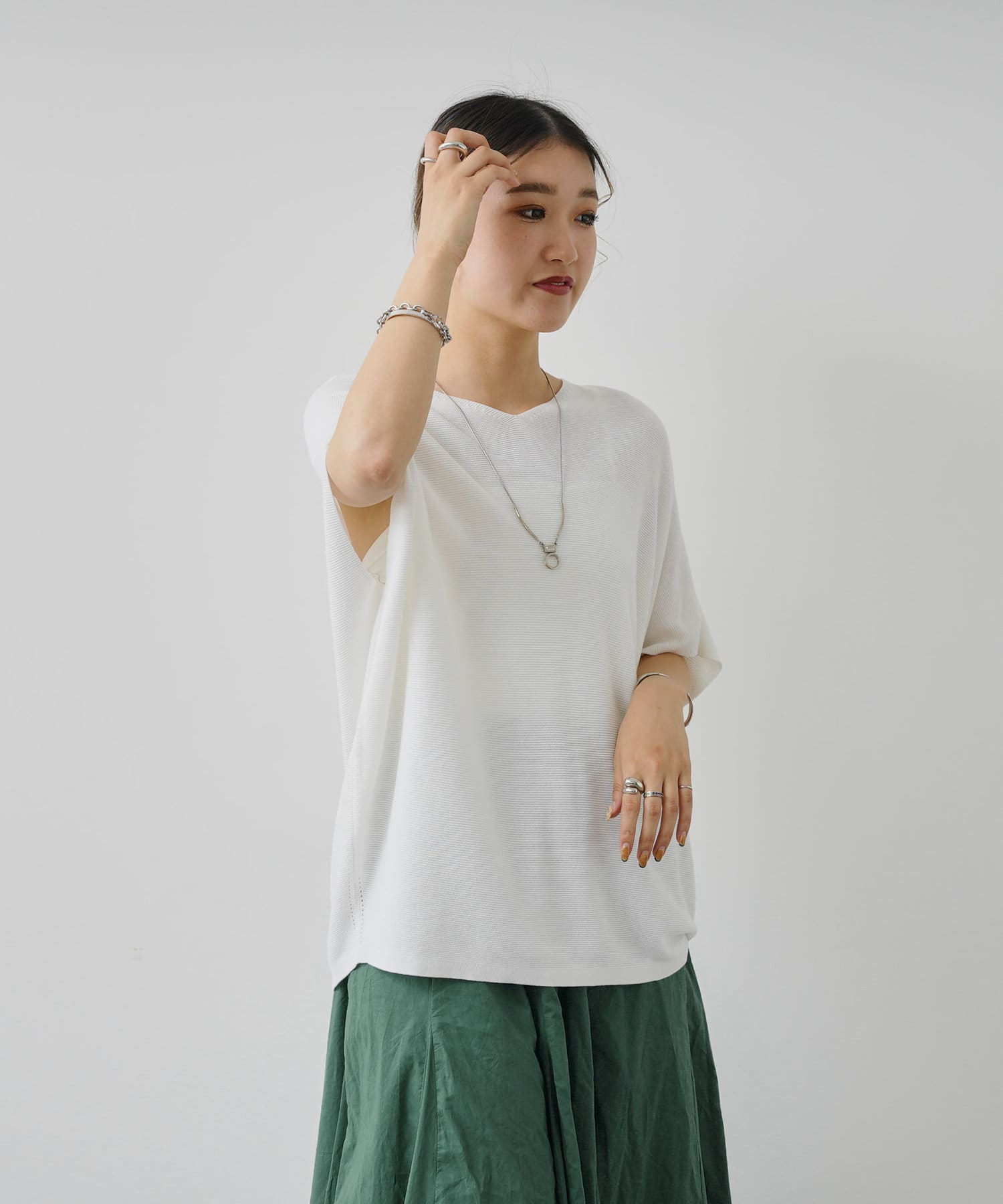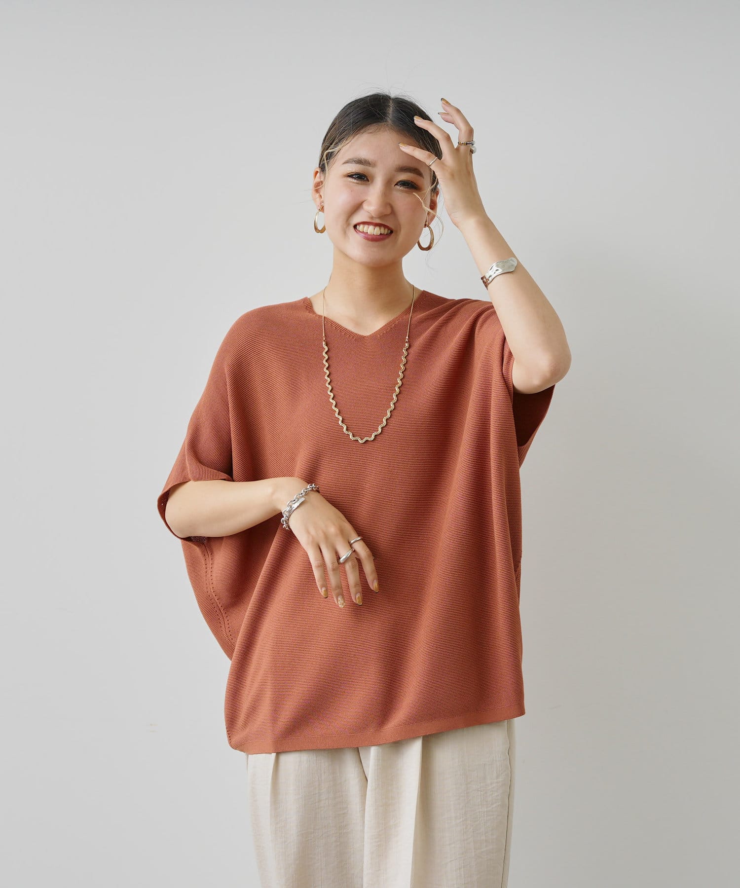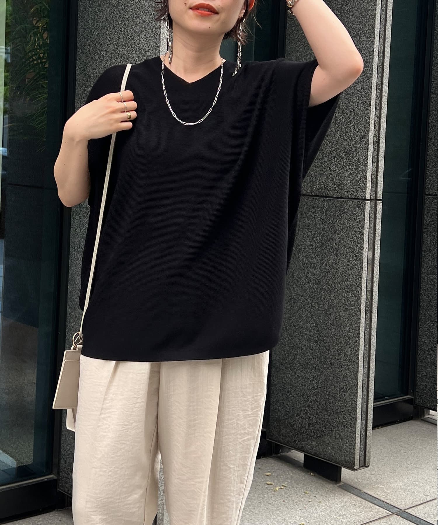 ・二の腕を品良くカバーしてくれる落ち感のあるニット