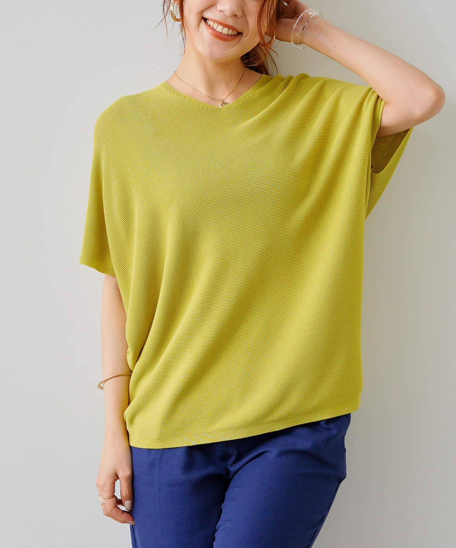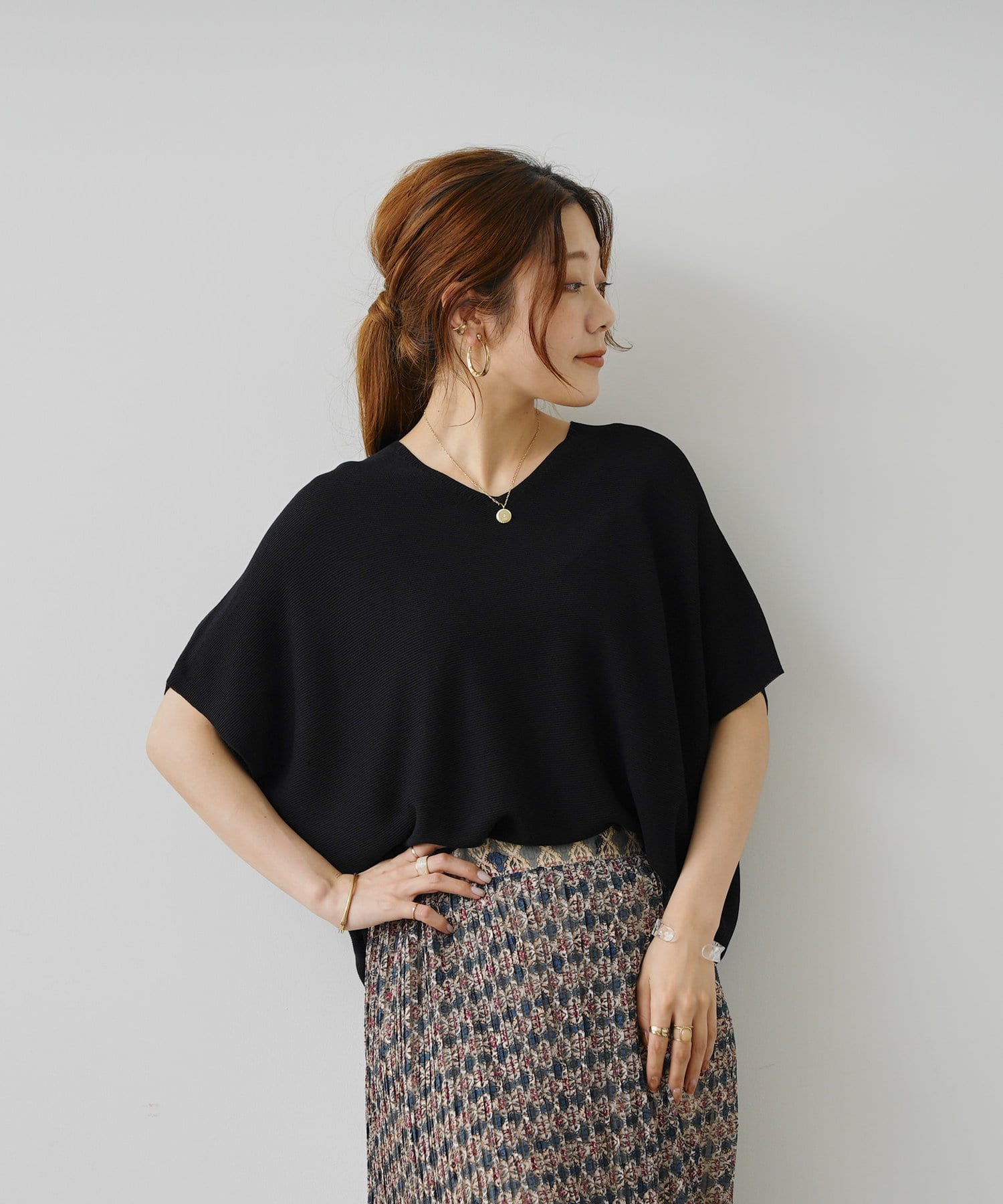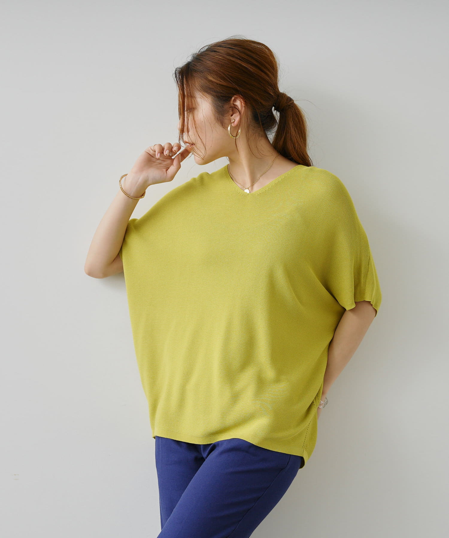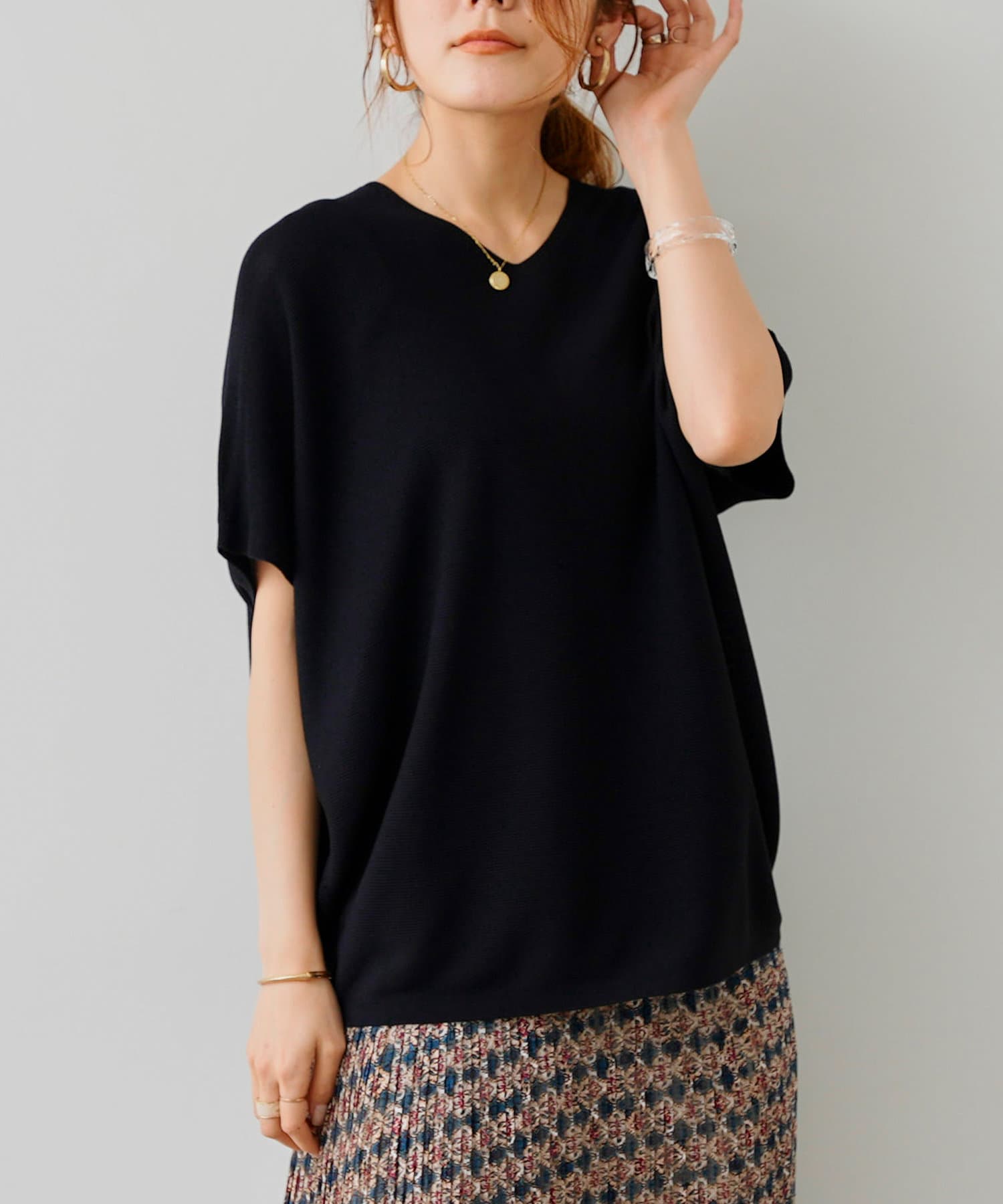 ・二の腕を品良くカバーしてくれる落ち感のあるニット