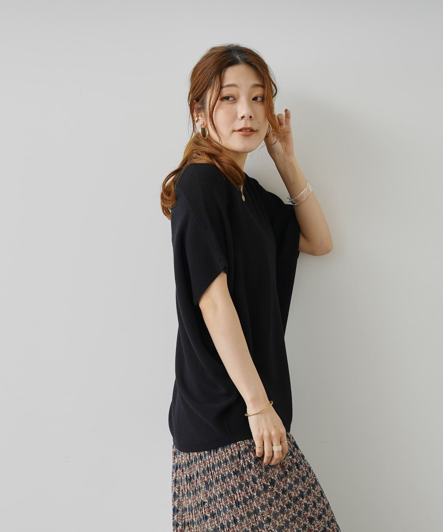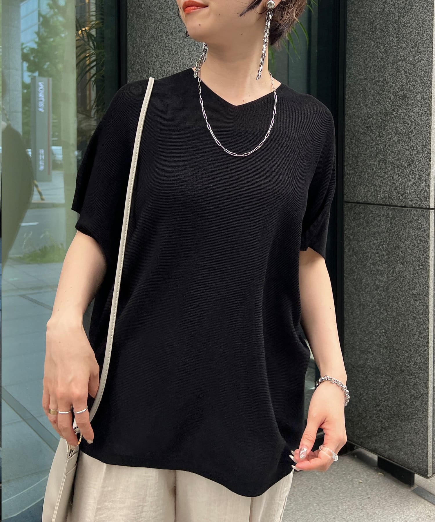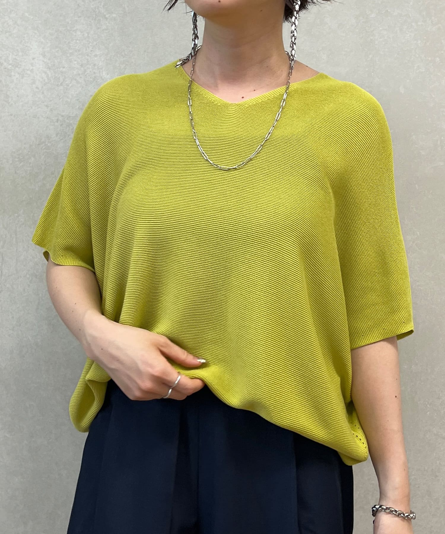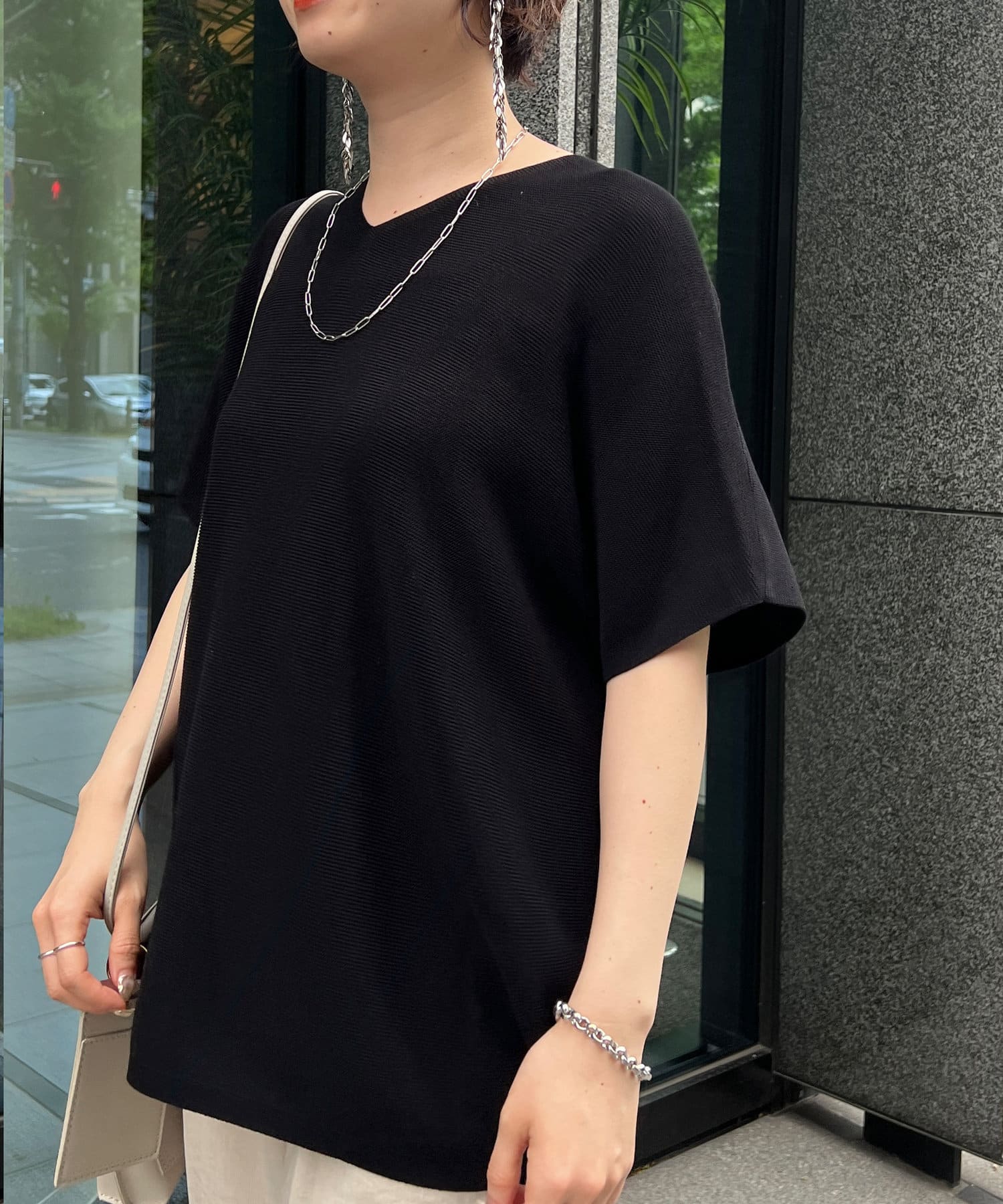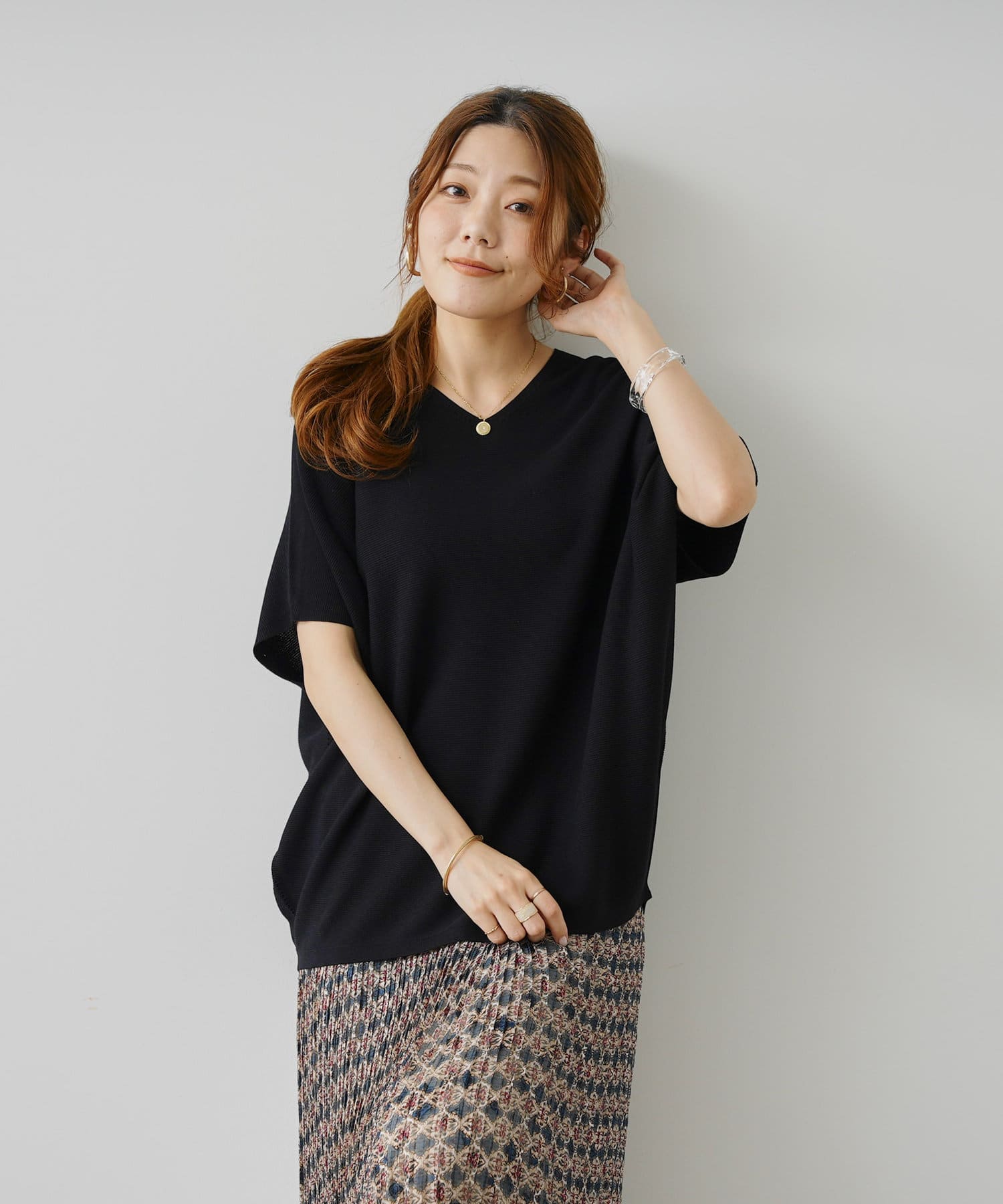 ・二の腕を品良くカバーしてくれる落ち感のあるニット