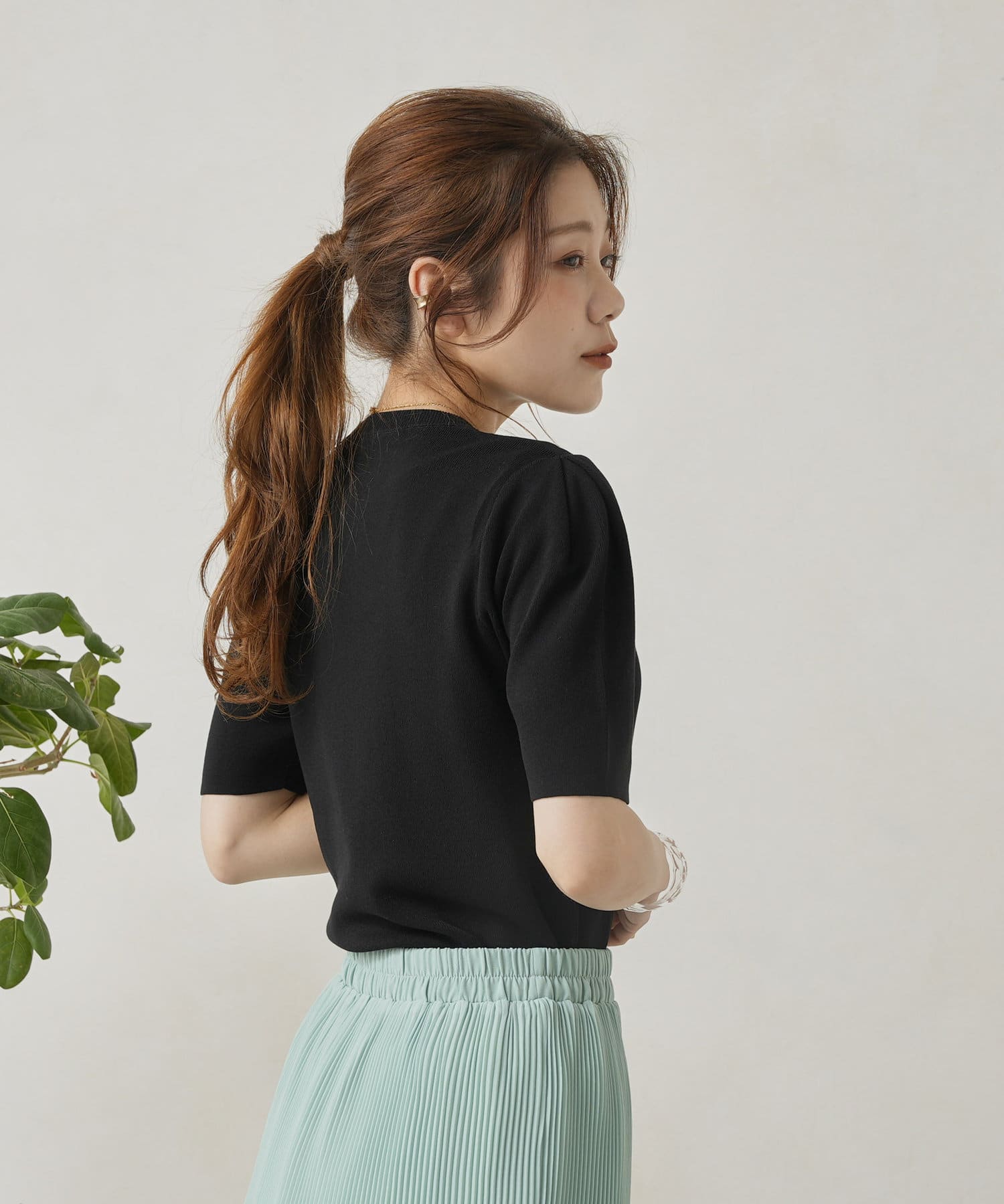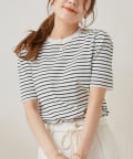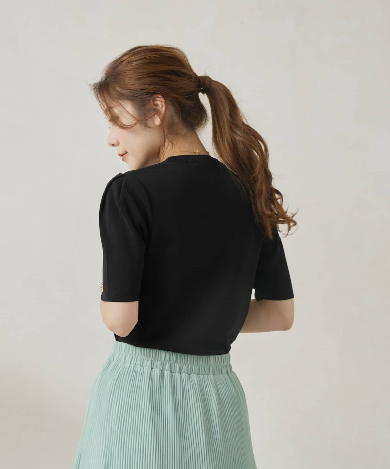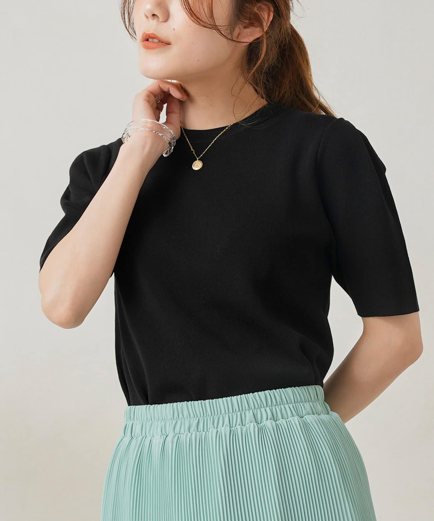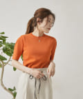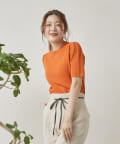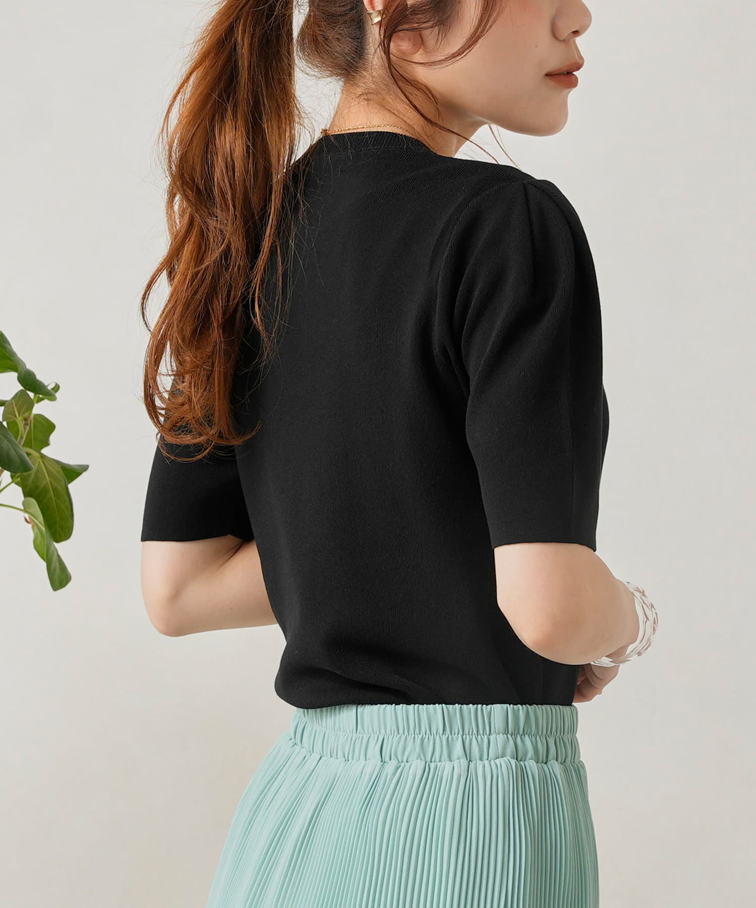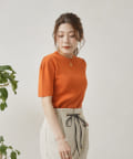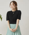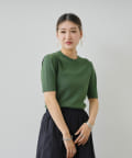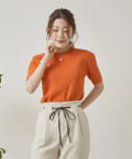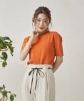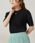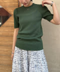 ・シンプルながら袖山のタックがポイントになった半袖ニット