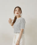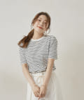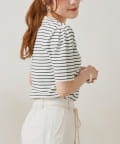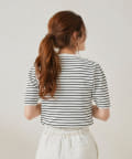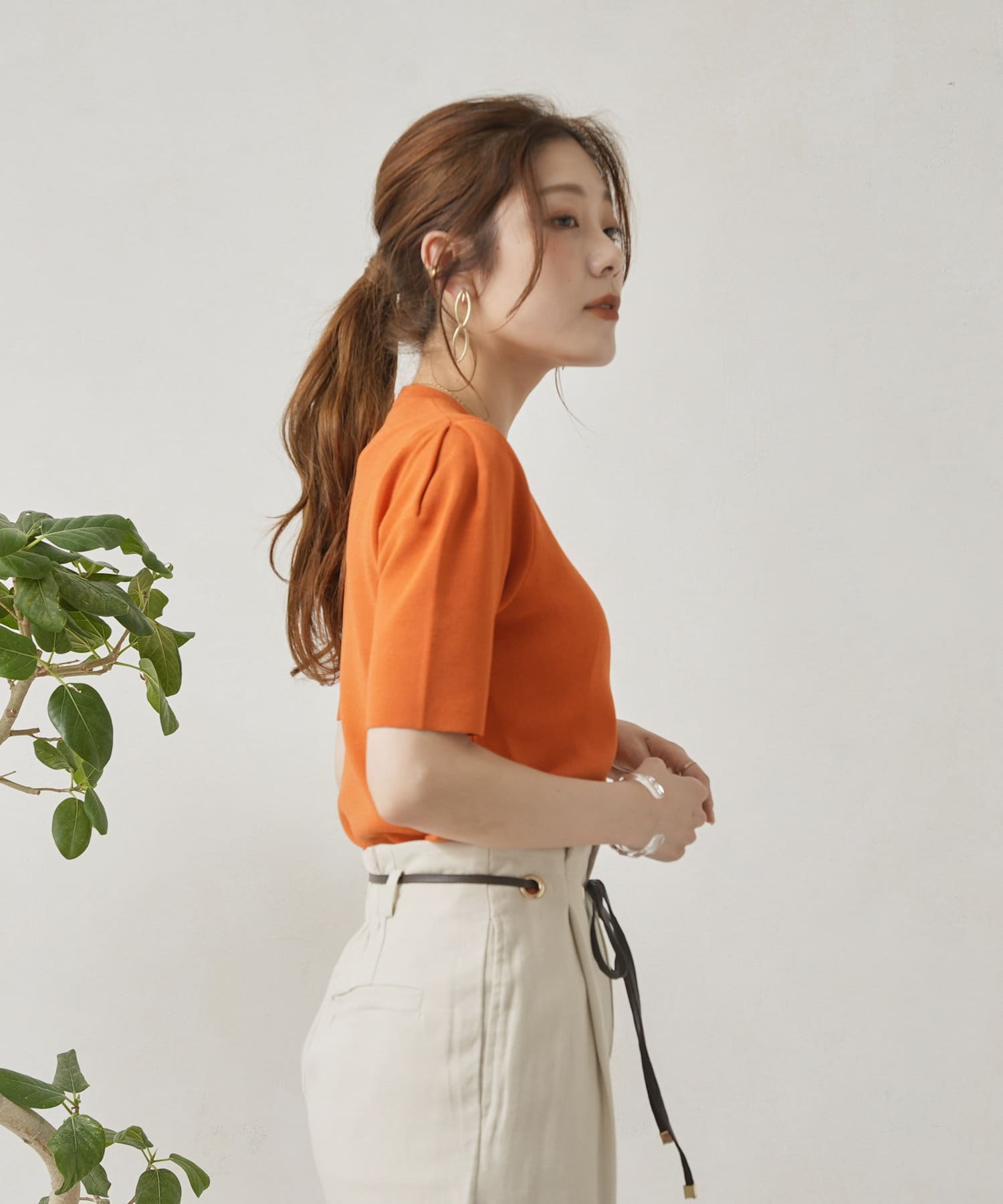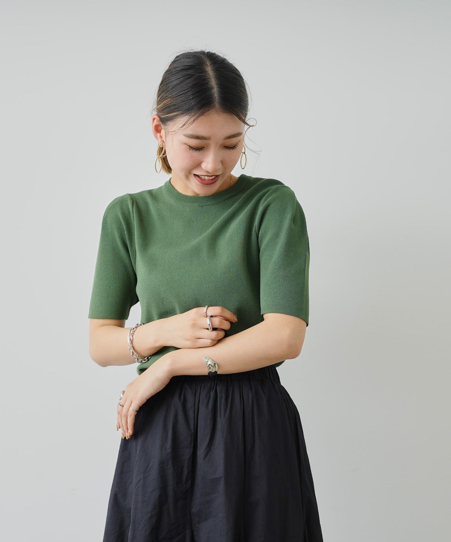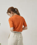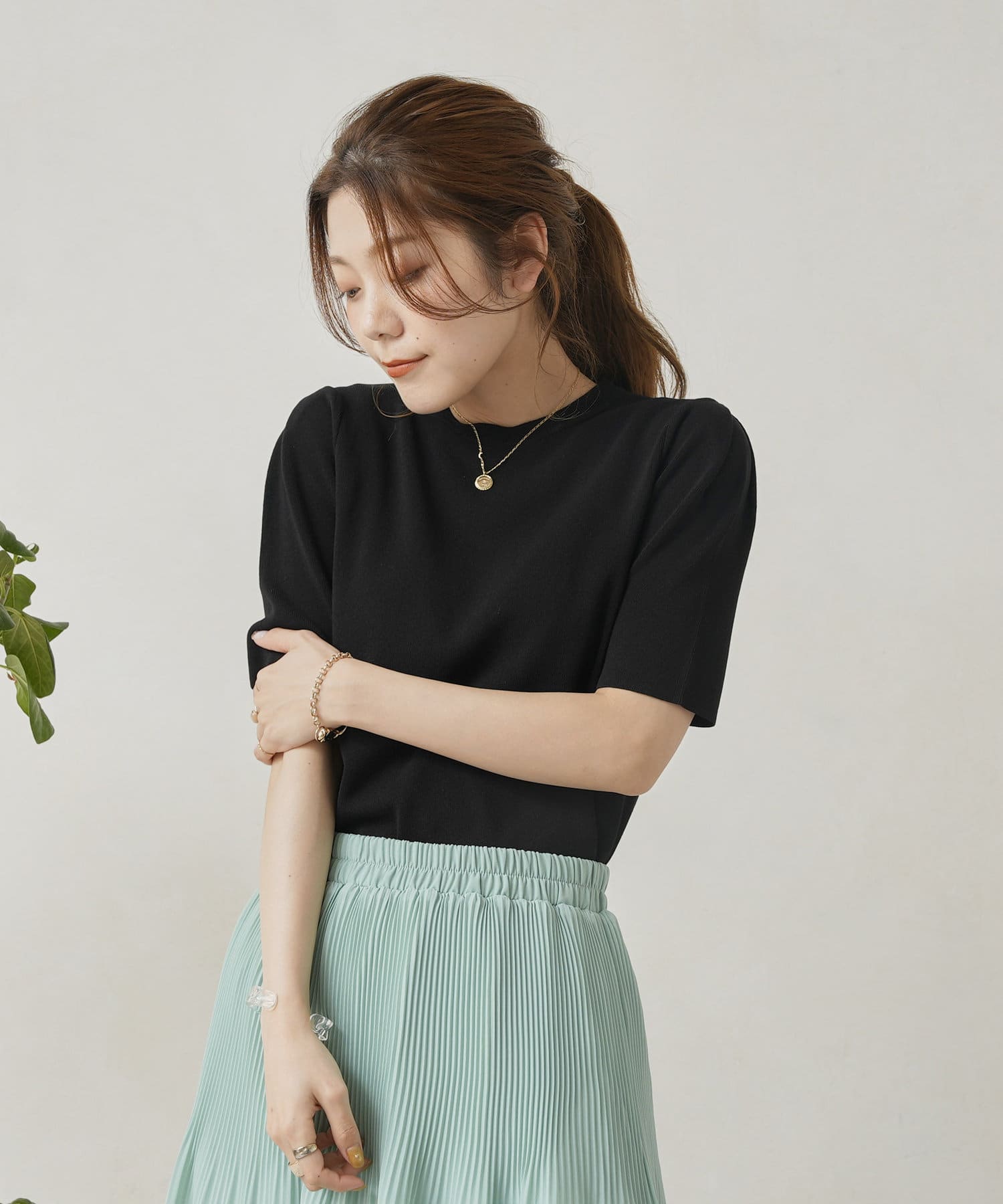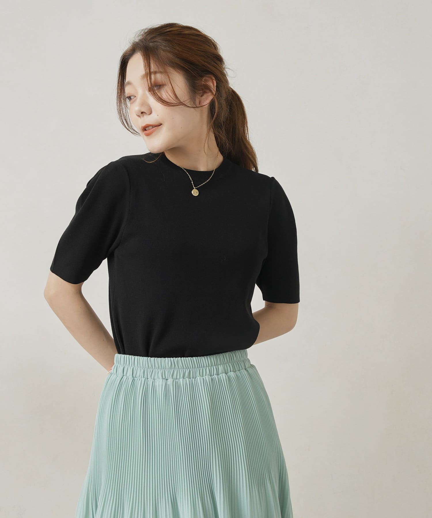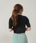 ・シンプルながら袖山のタックがポイントになった半袖ニット