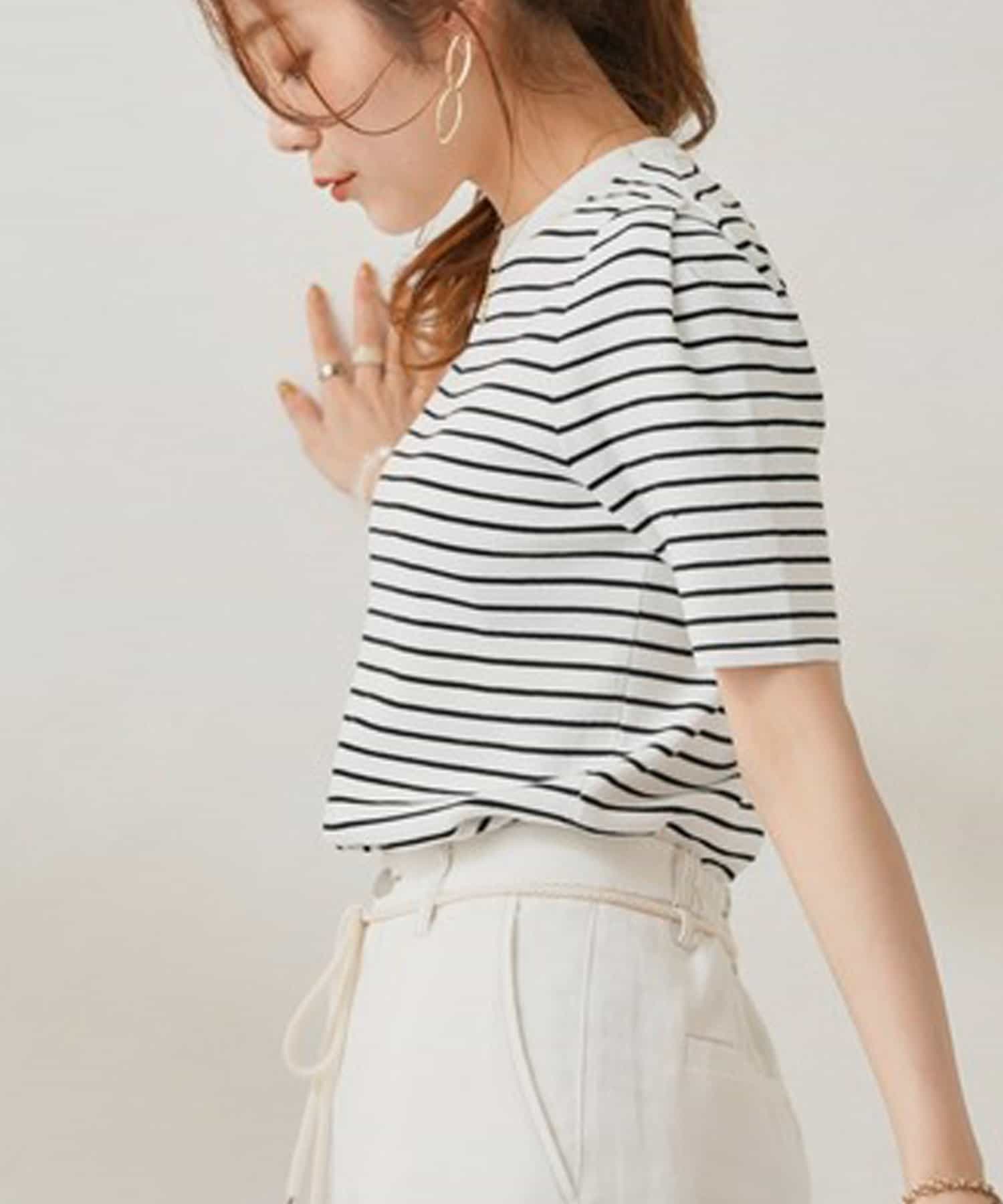 シンプルながら袖山のタックが女性らしいフェミニンな印象を与えてくれます。