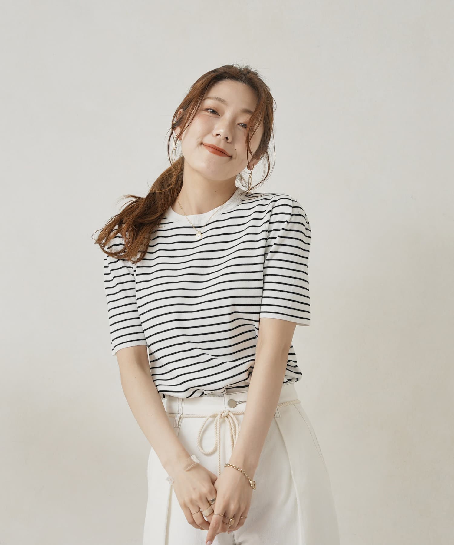 ・シャリ感があるニットなので、夏も大活躍。