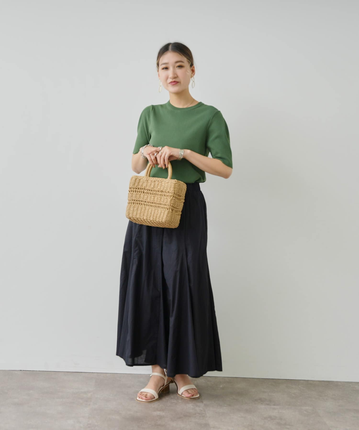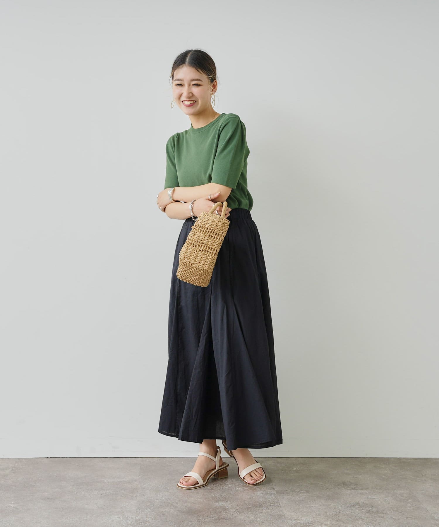 コンパクトなサイズ感なので、フレアスカート、タイトスカート、ワイドパンツや