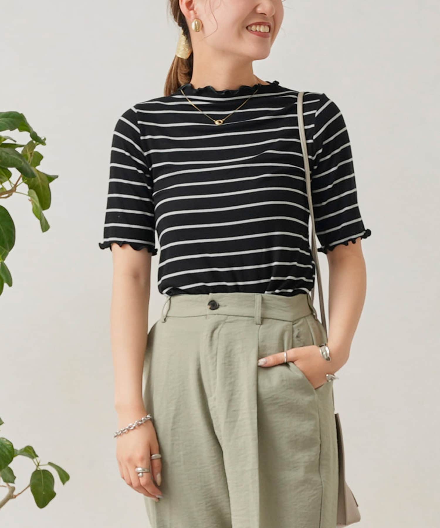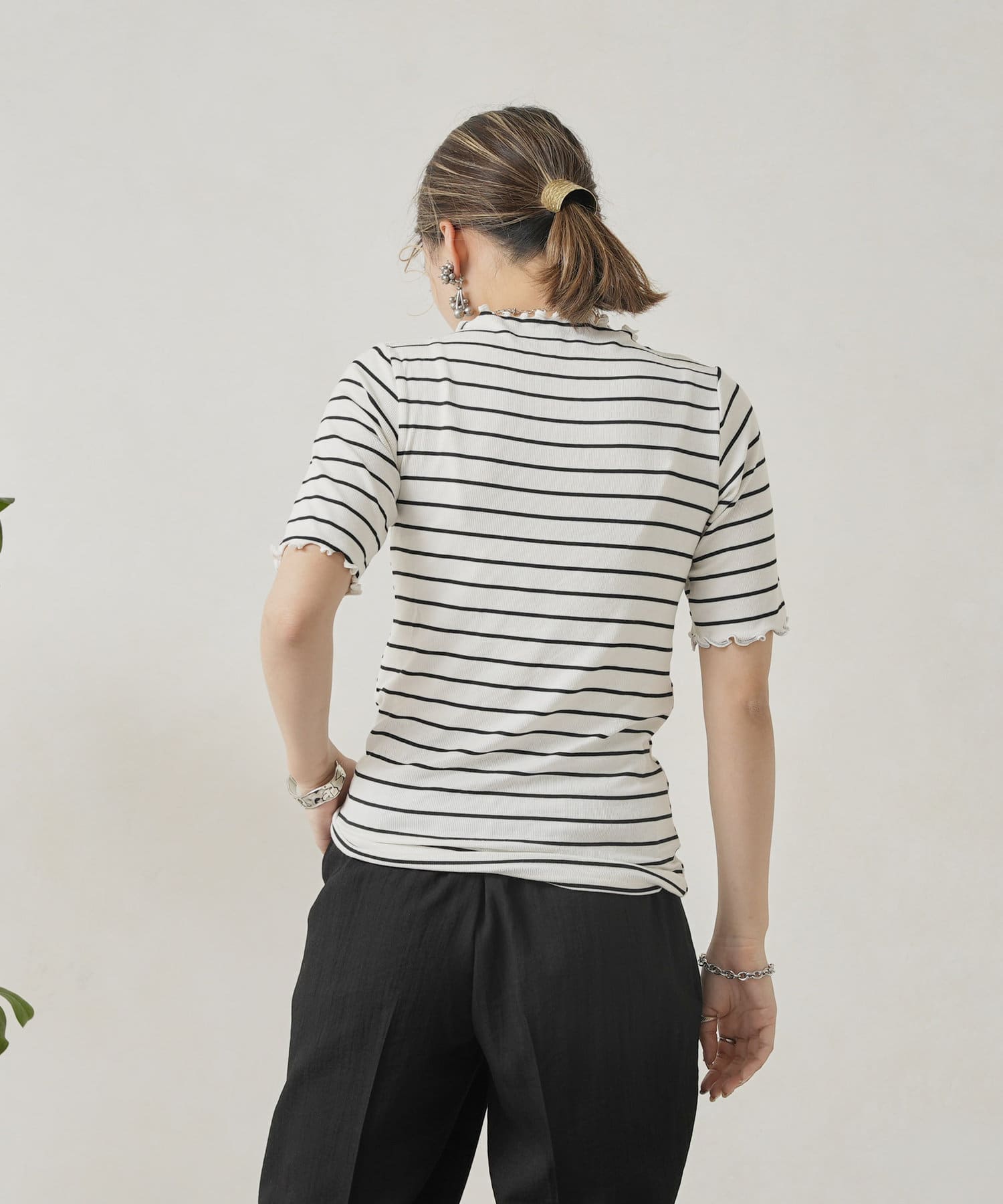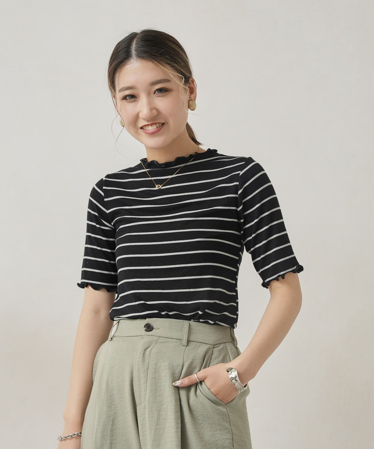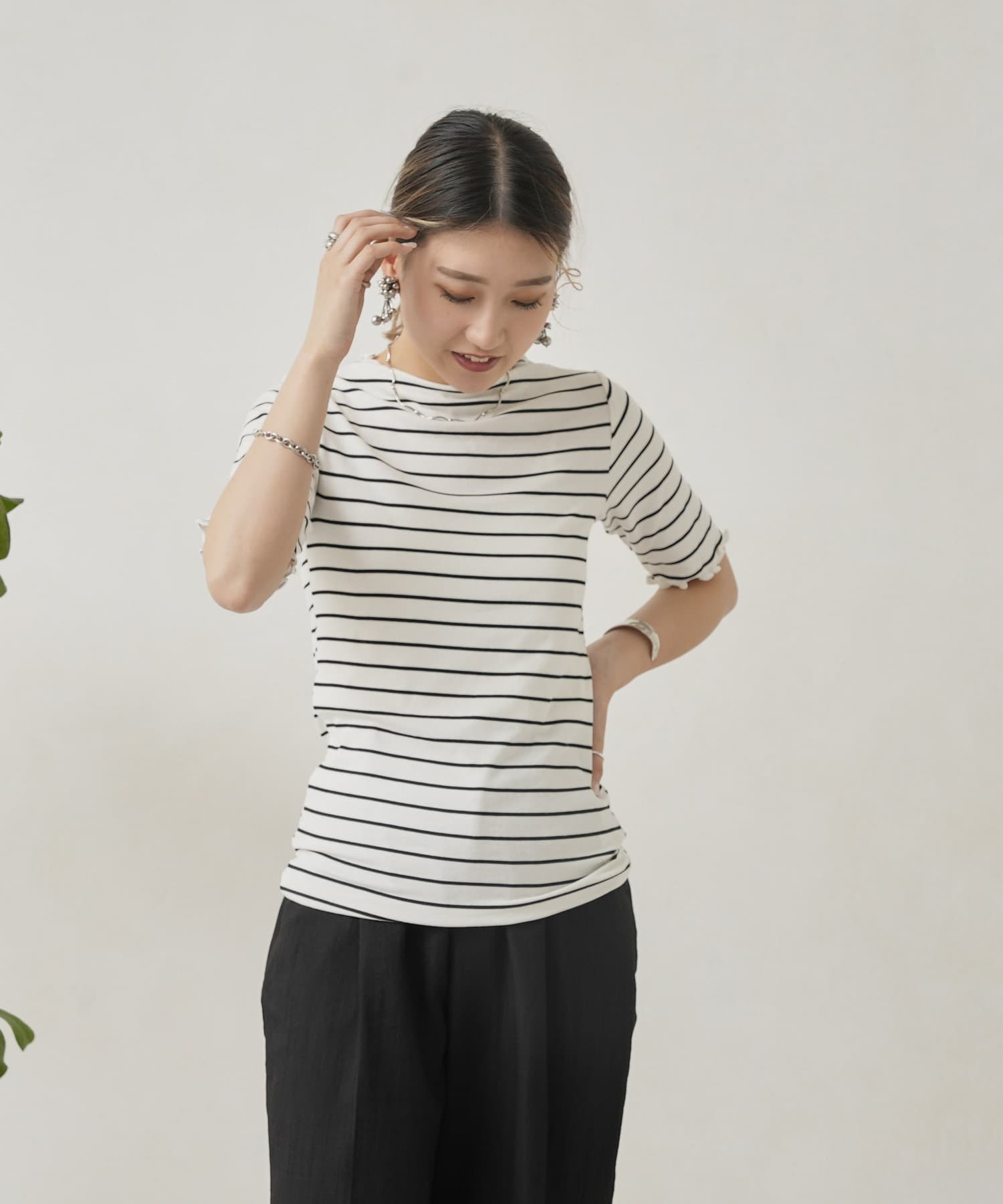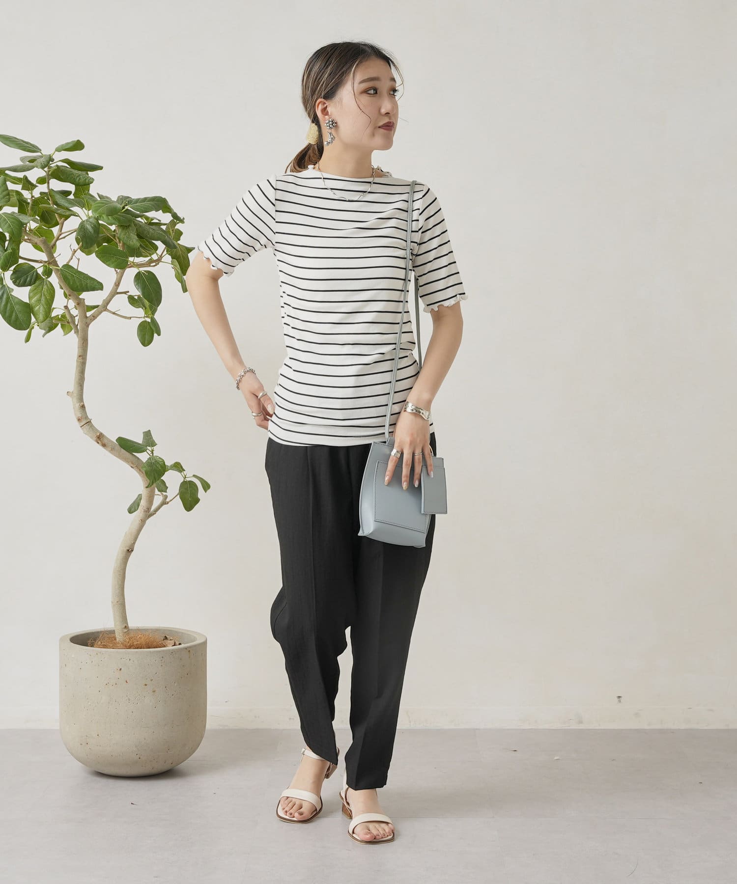 ・カジュアル過ぎず、女性らしく見せるピッチが細めのボーダーです。