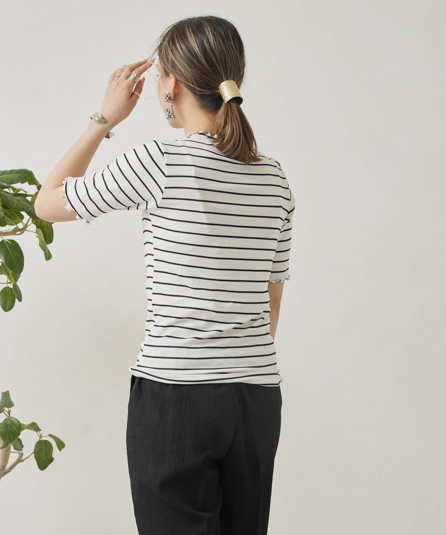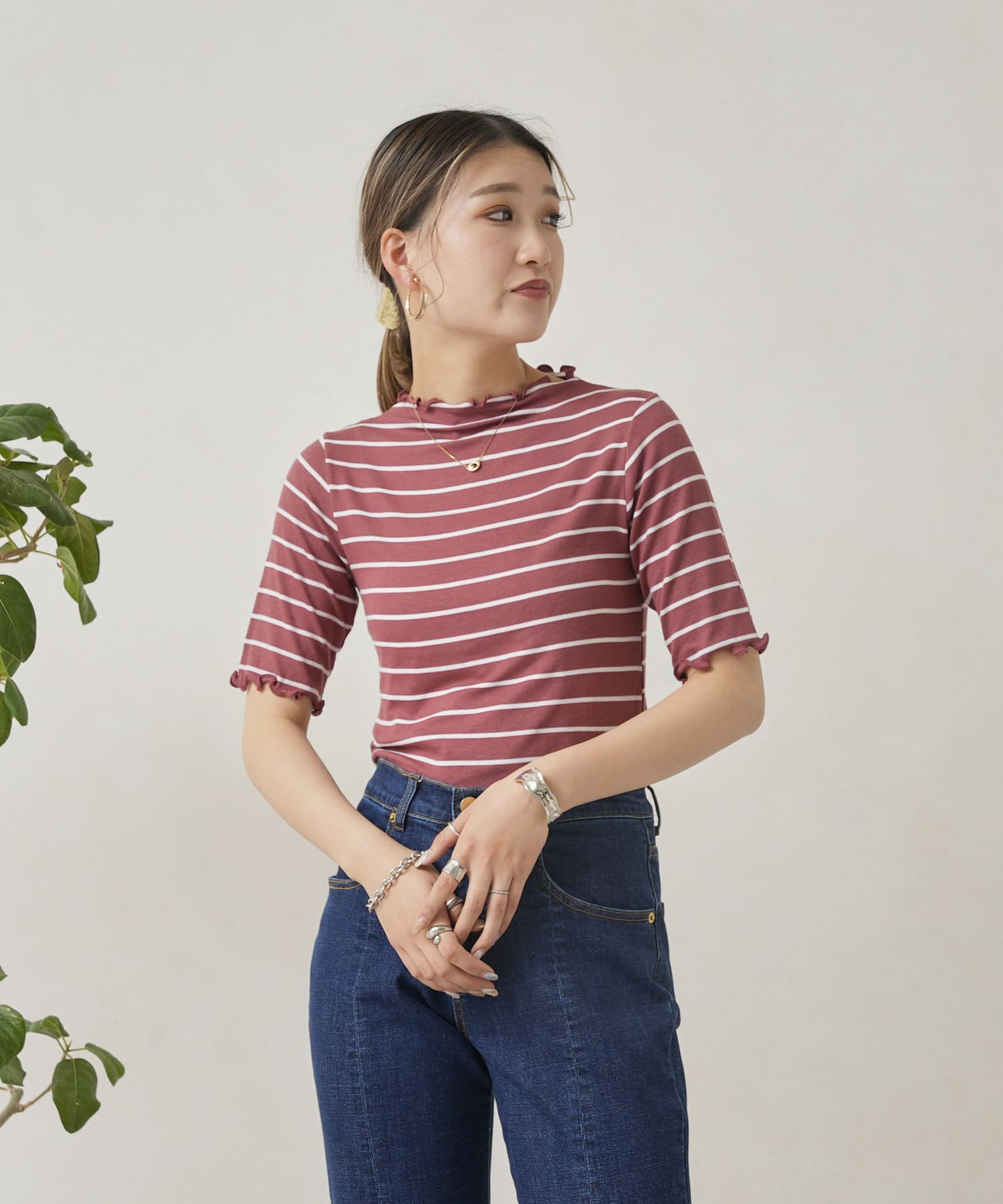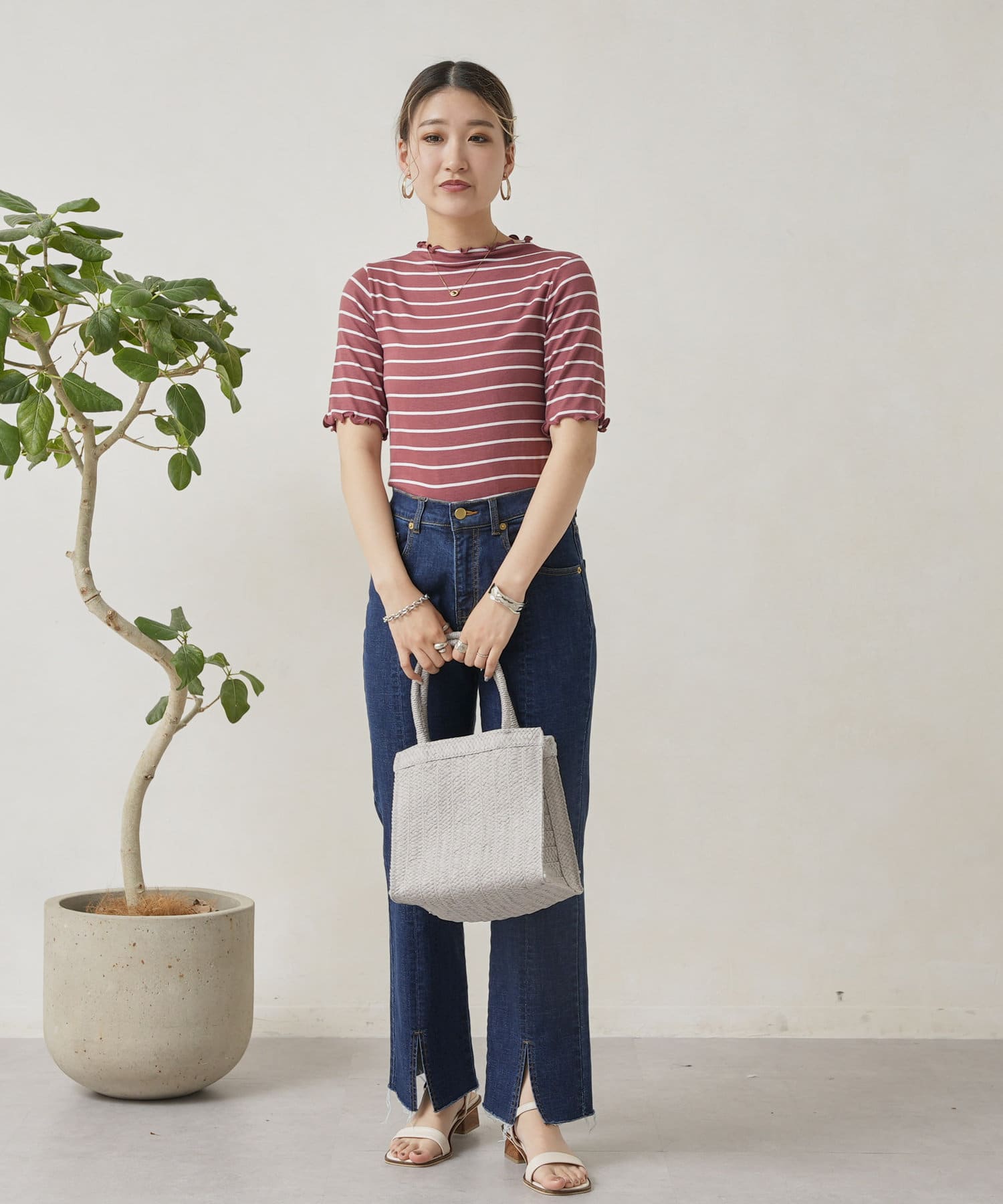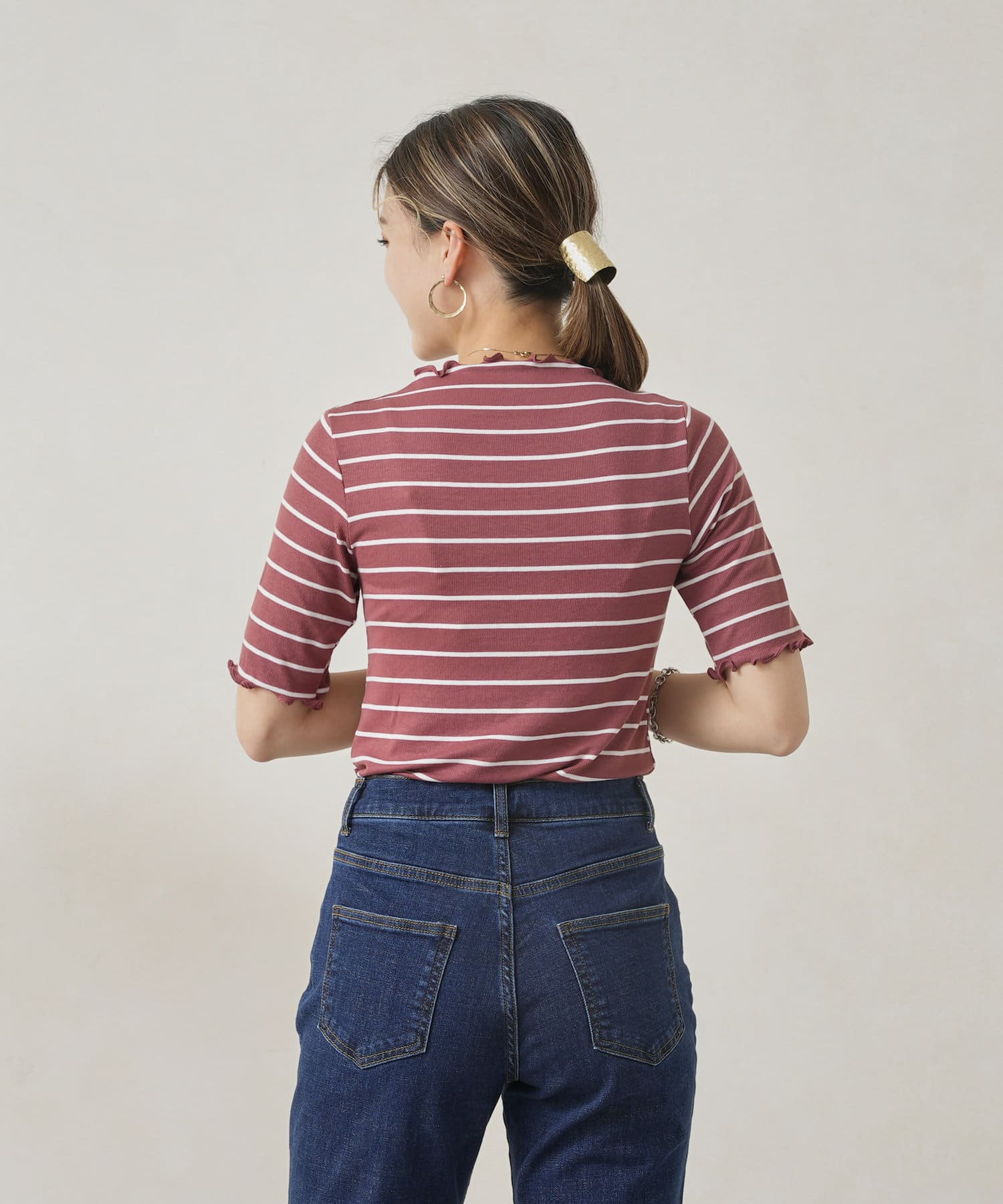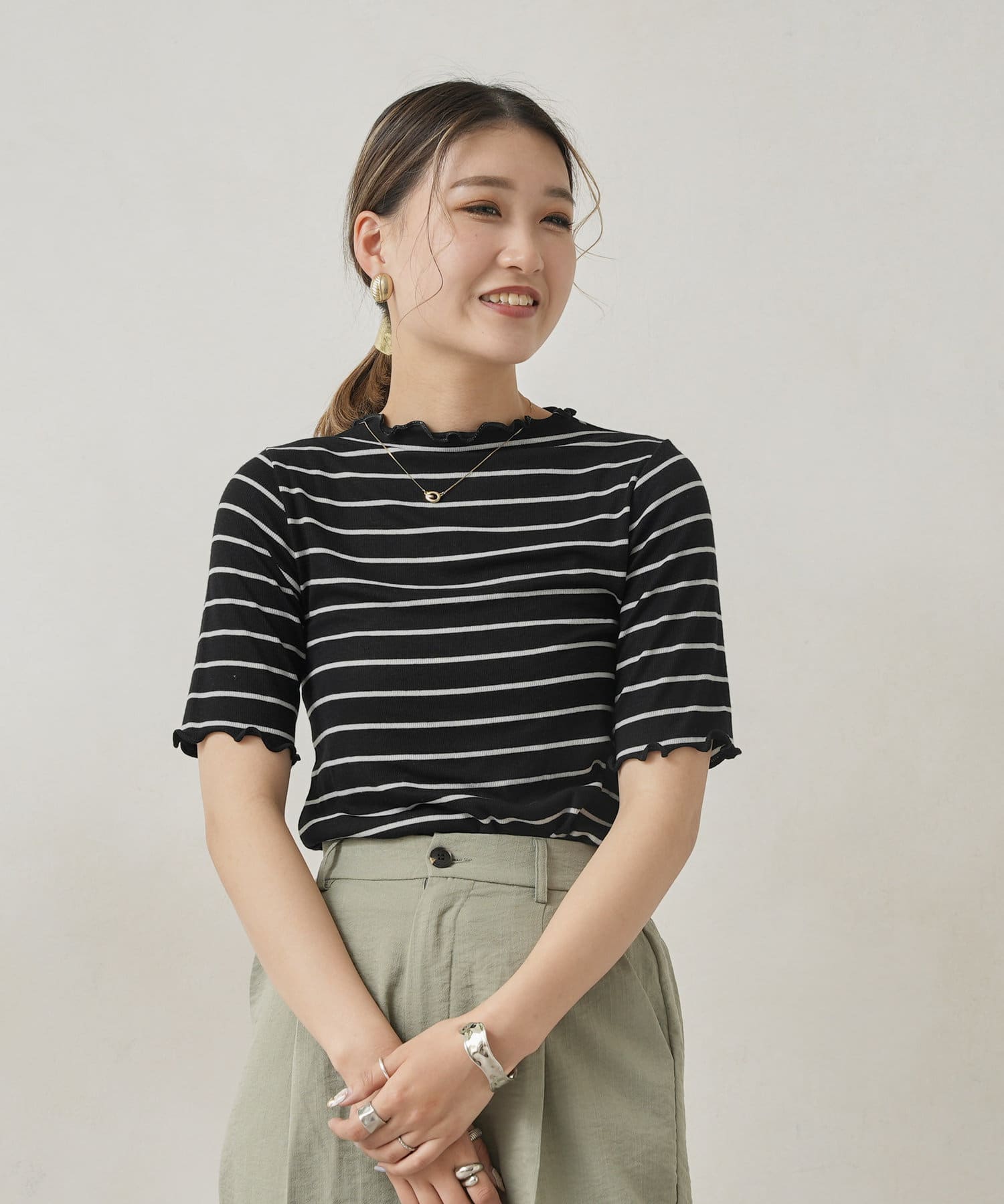 ・カジュアル過ぎず、女性らしく見せるピッチが細めのボーダーです。