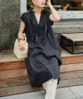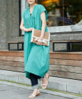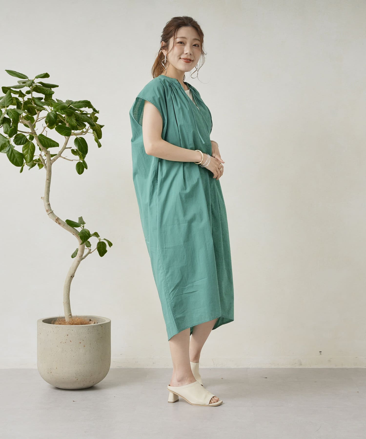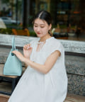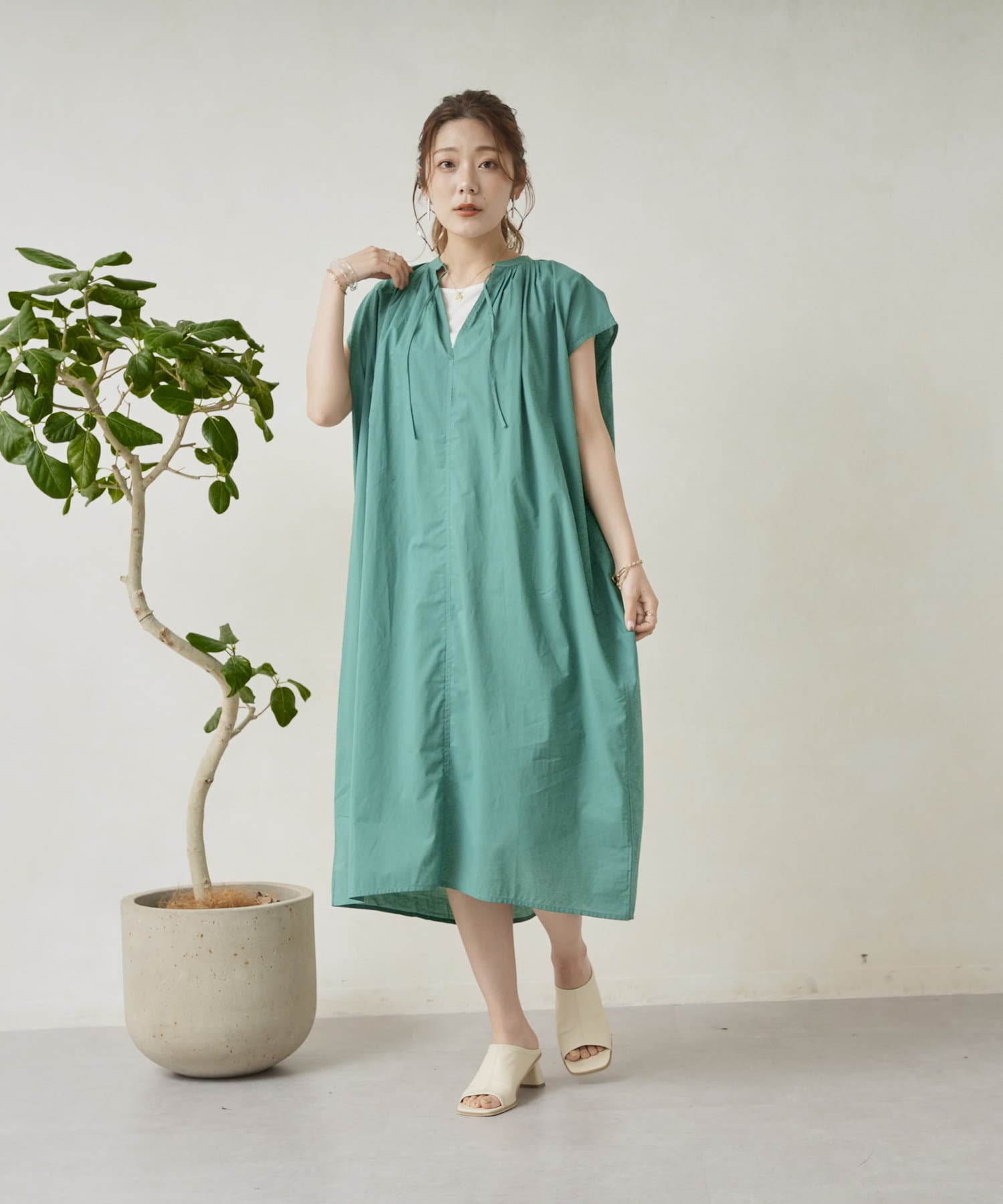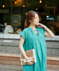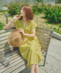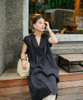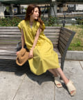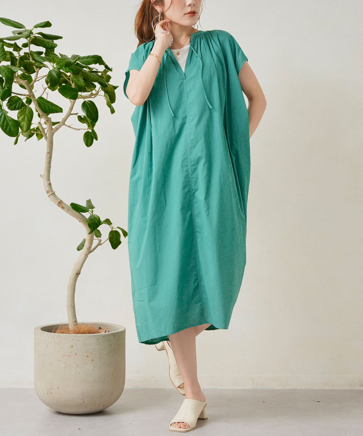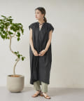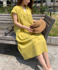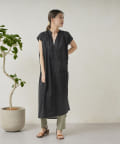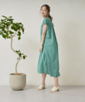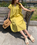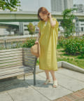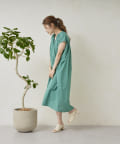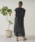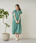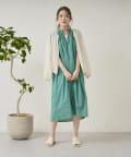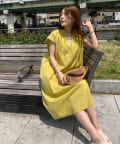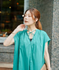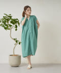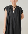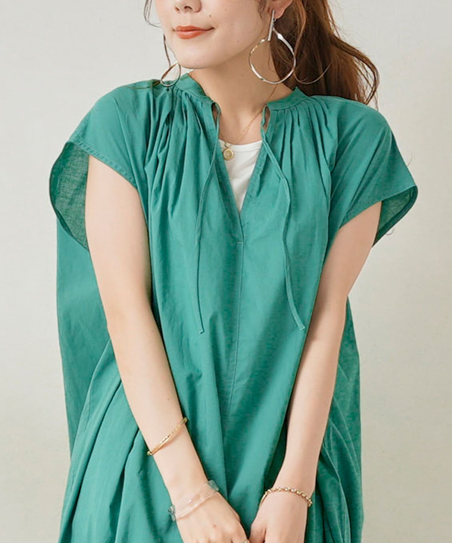 キーネックギャザースモックワンピース