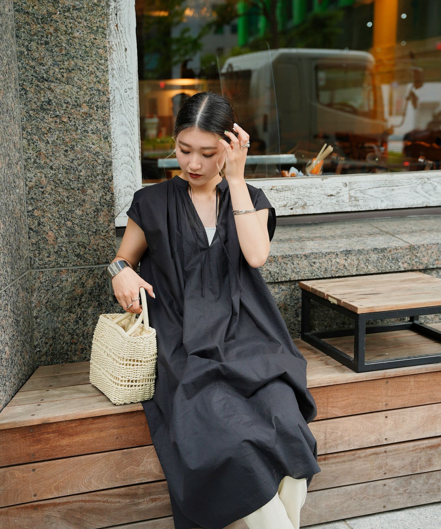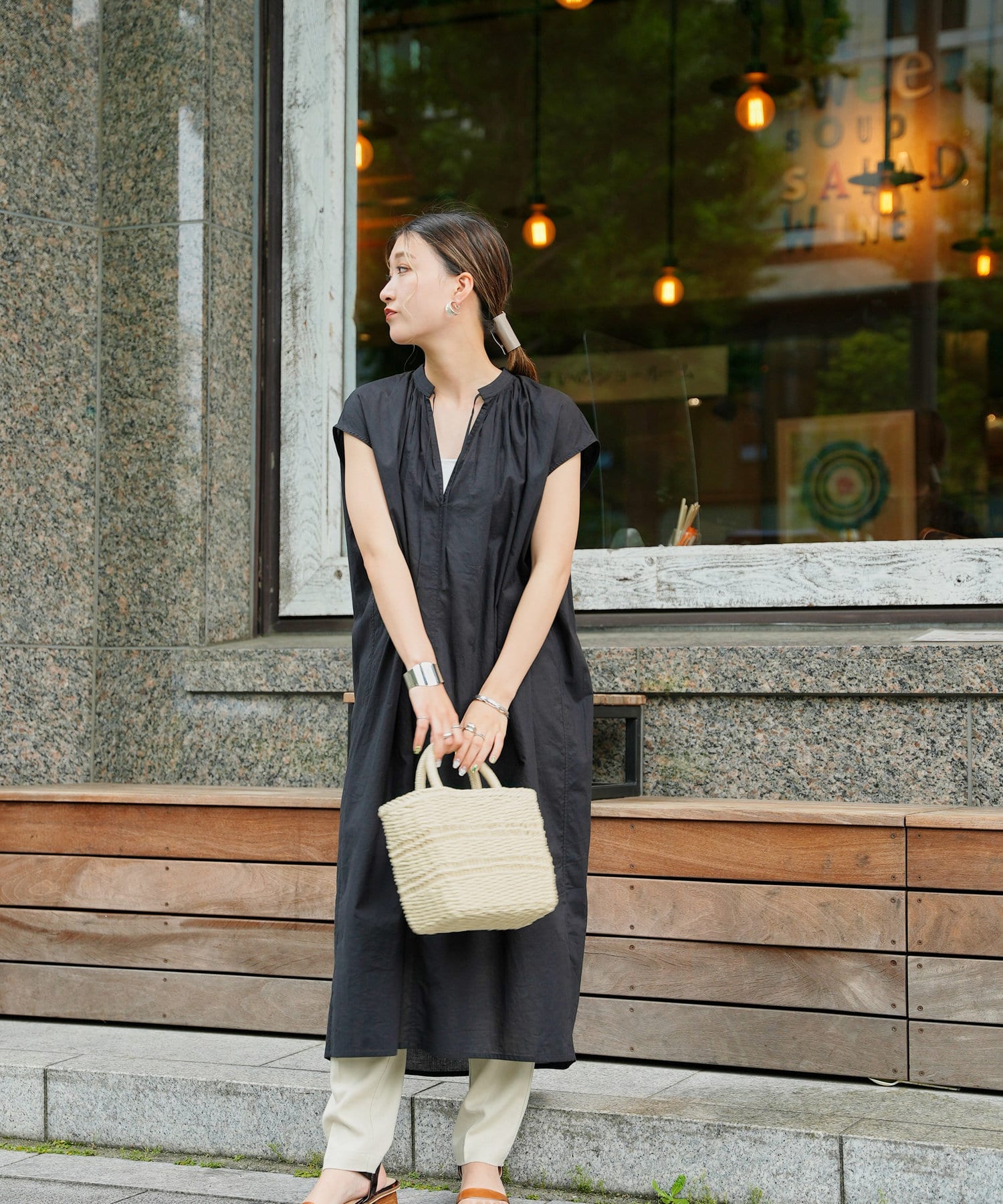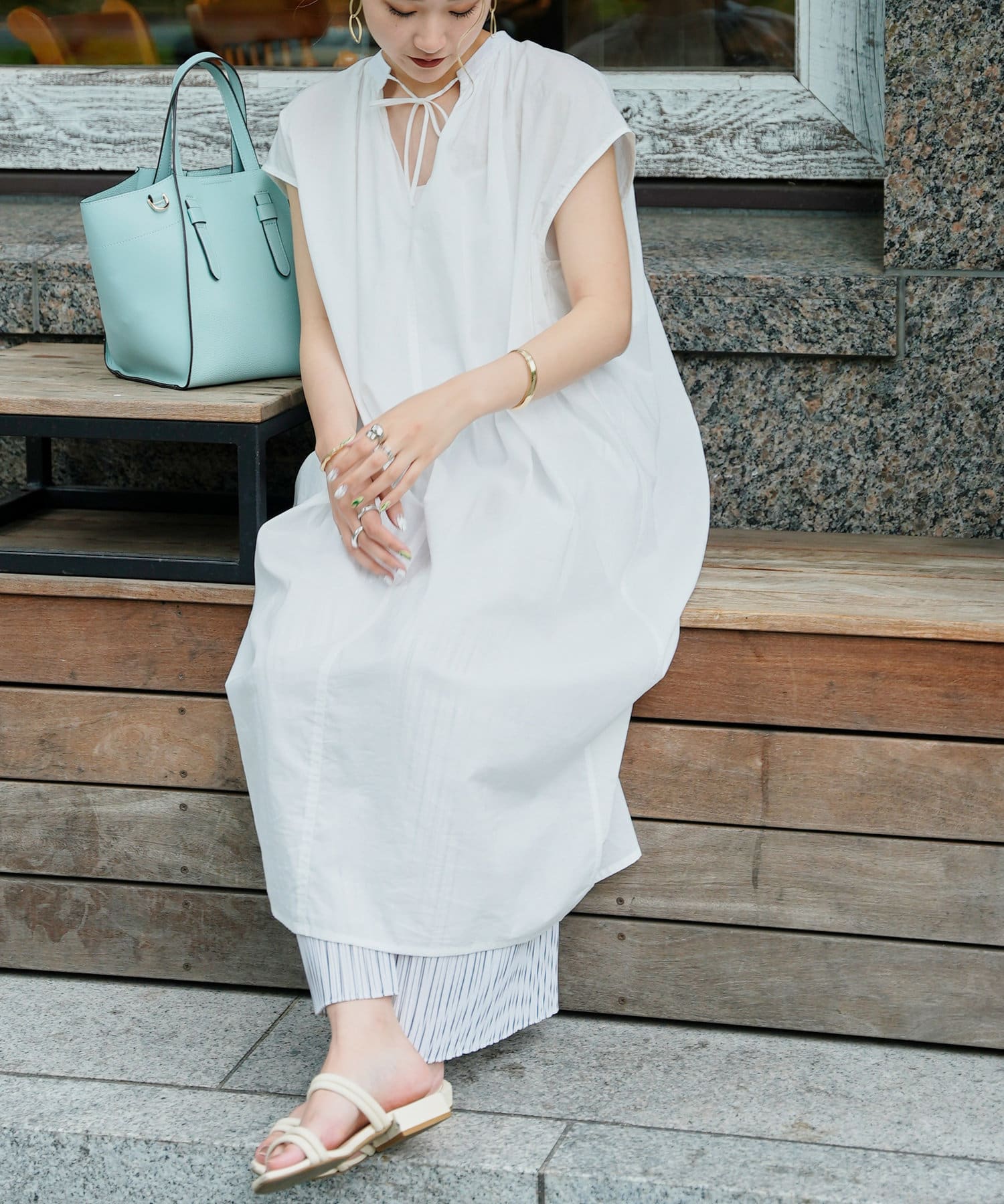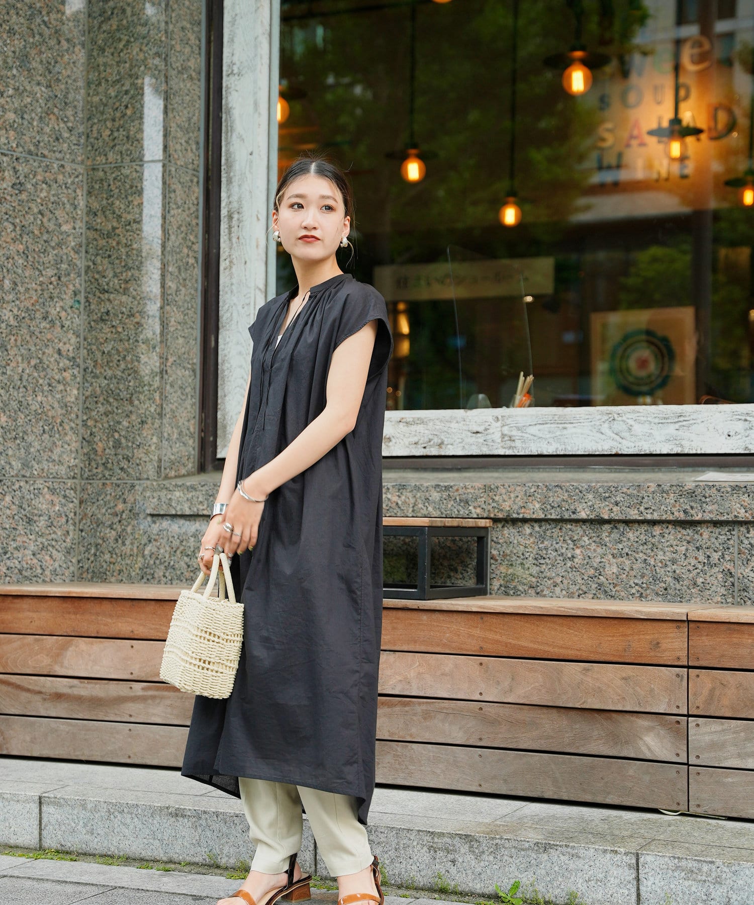 デニムやストレートパンツのレイヤードスタイルもおすすめです。