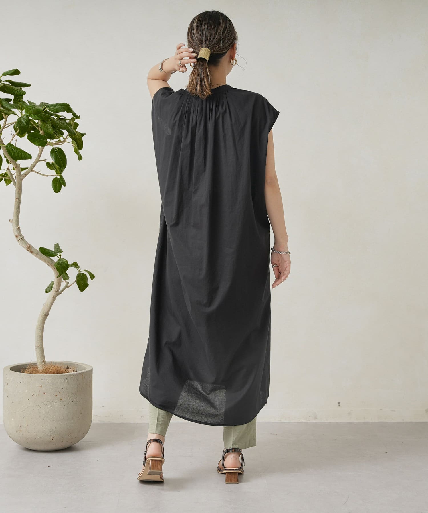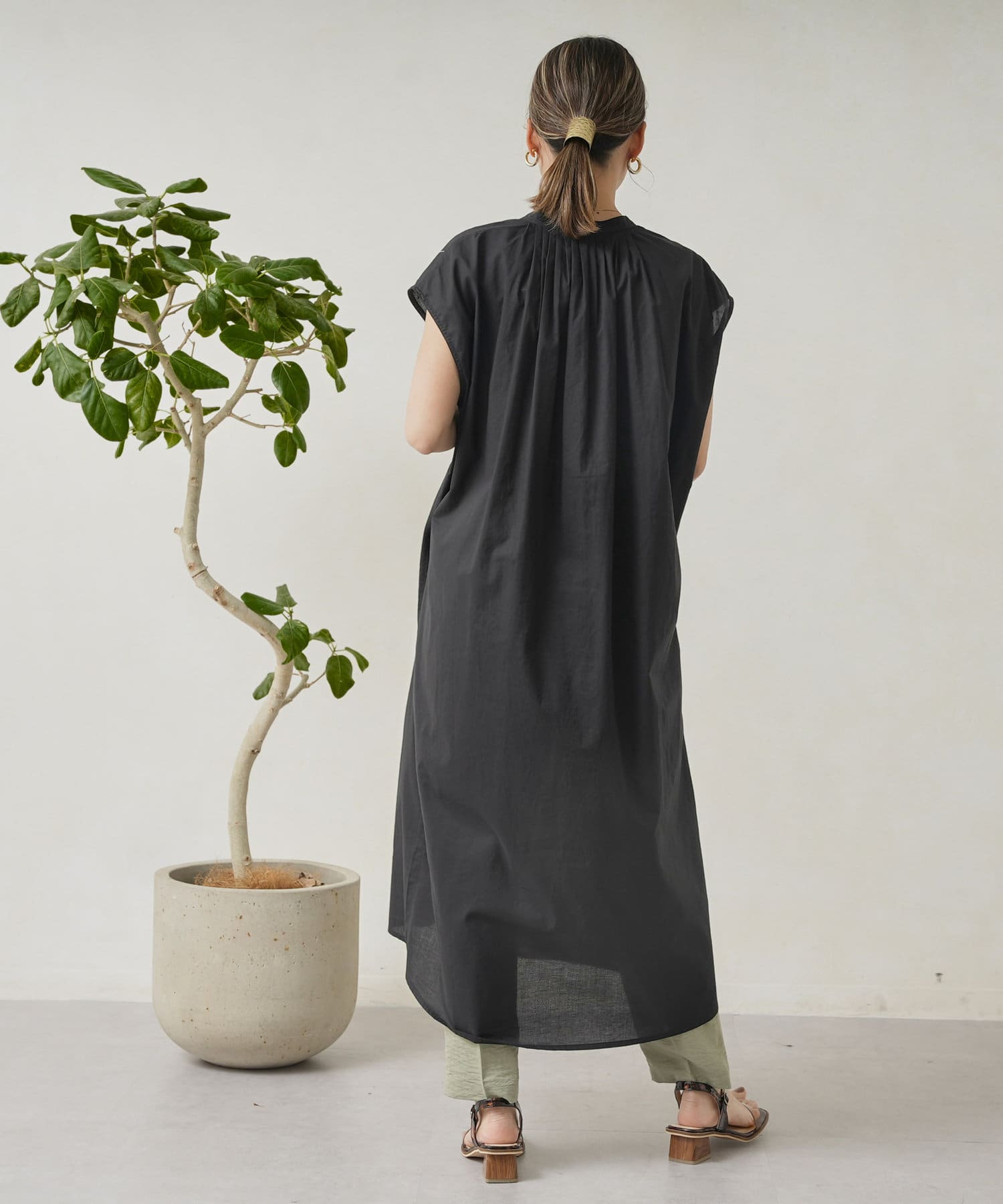 ・後ろ衿ぐりには細かいタックを入れている。