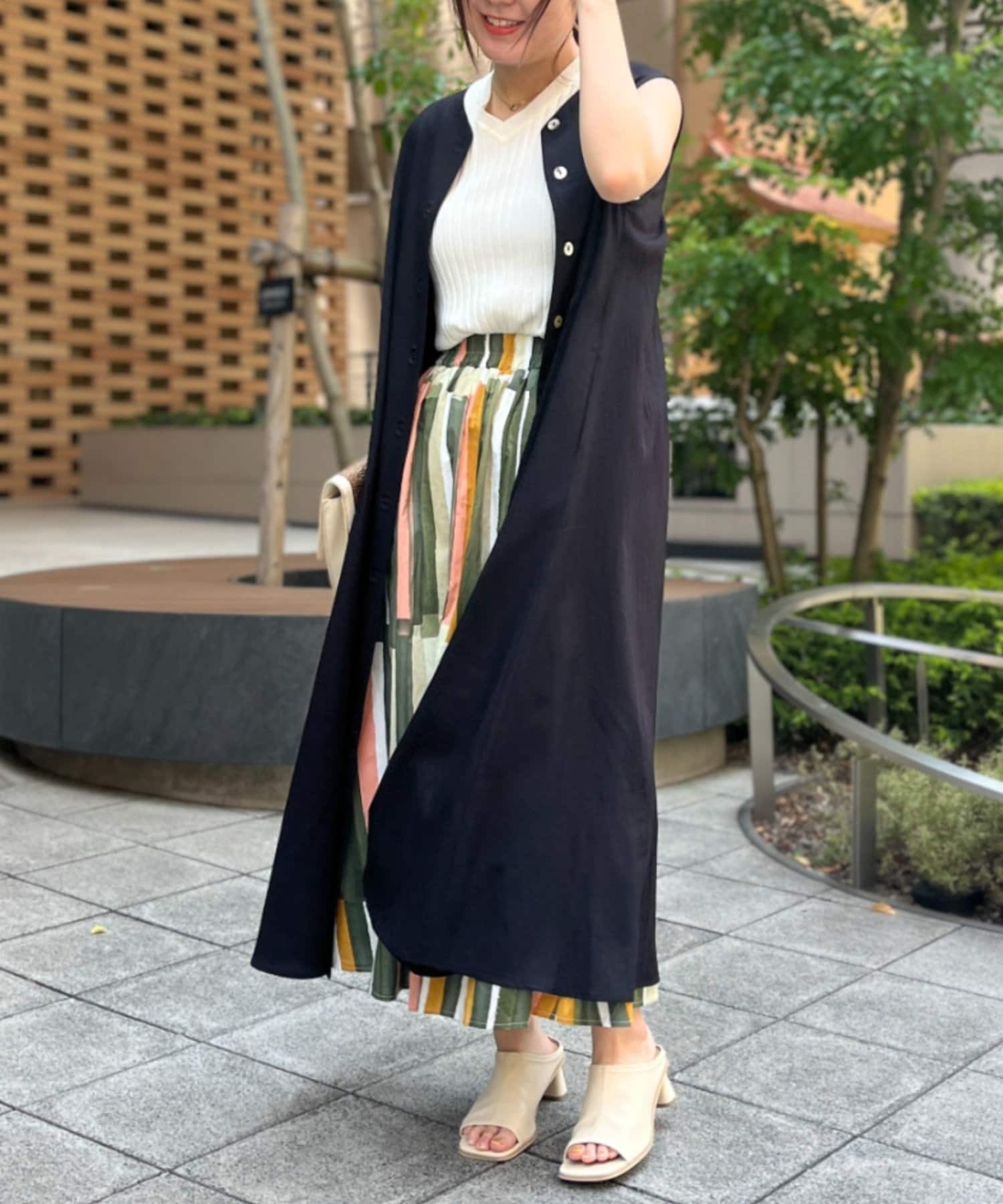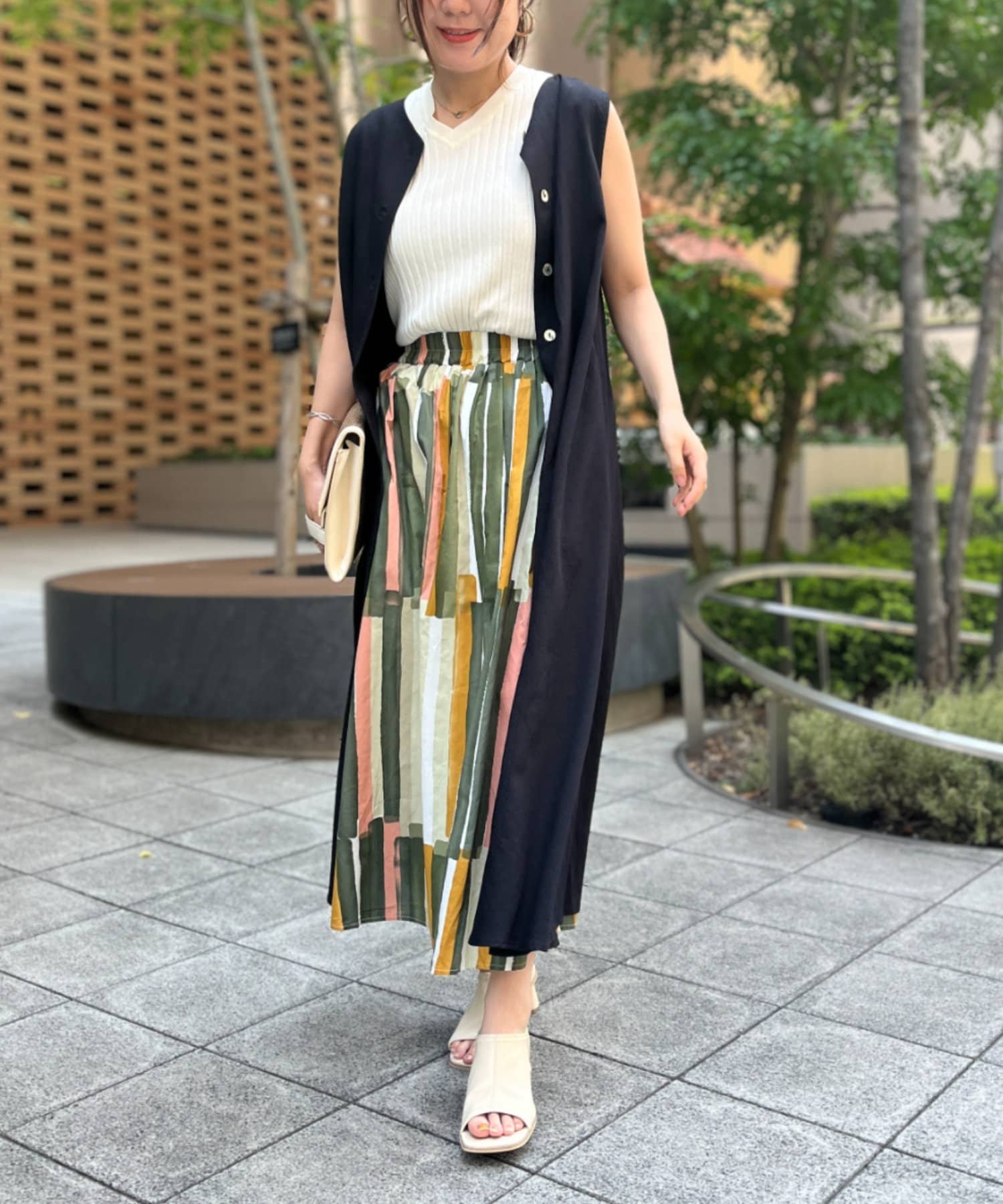 ジレやベストと合わせて頂くと今年らしいトレンドコーデに。