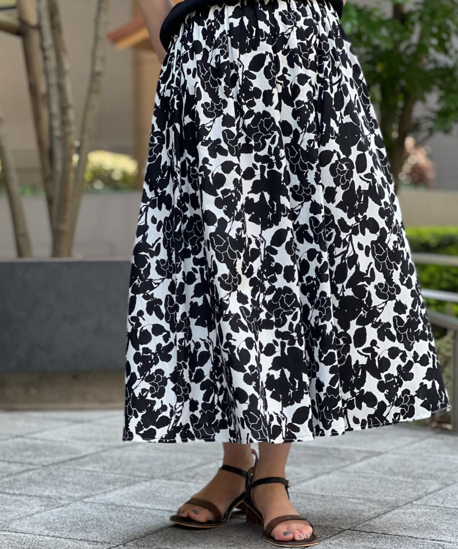 ・フラワープリントでもモノトーンの花柄で子供っぽくならない様にしています。