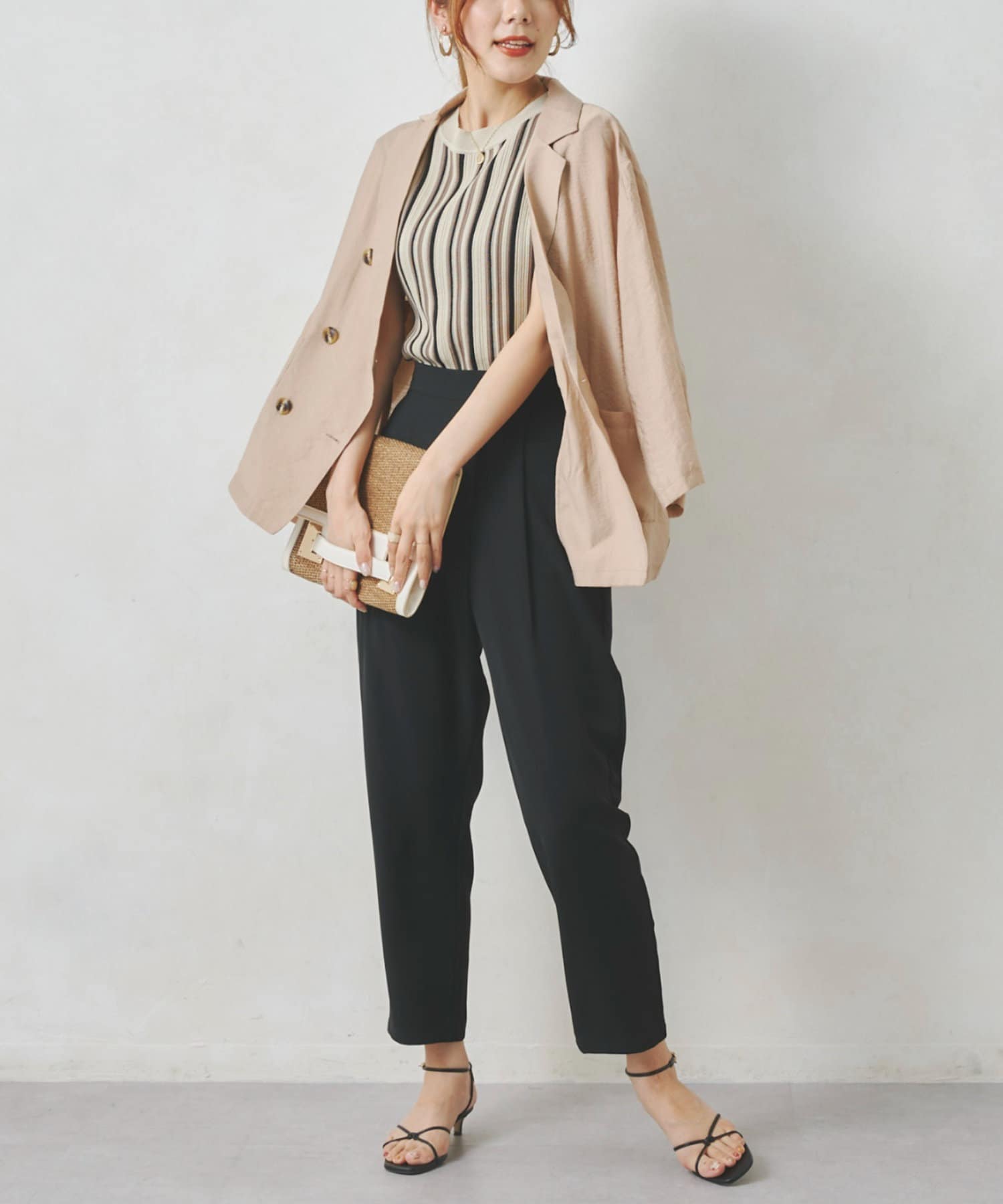ブラウスやシャツで合わせたきちんと感のあるアイテムとも相性◎