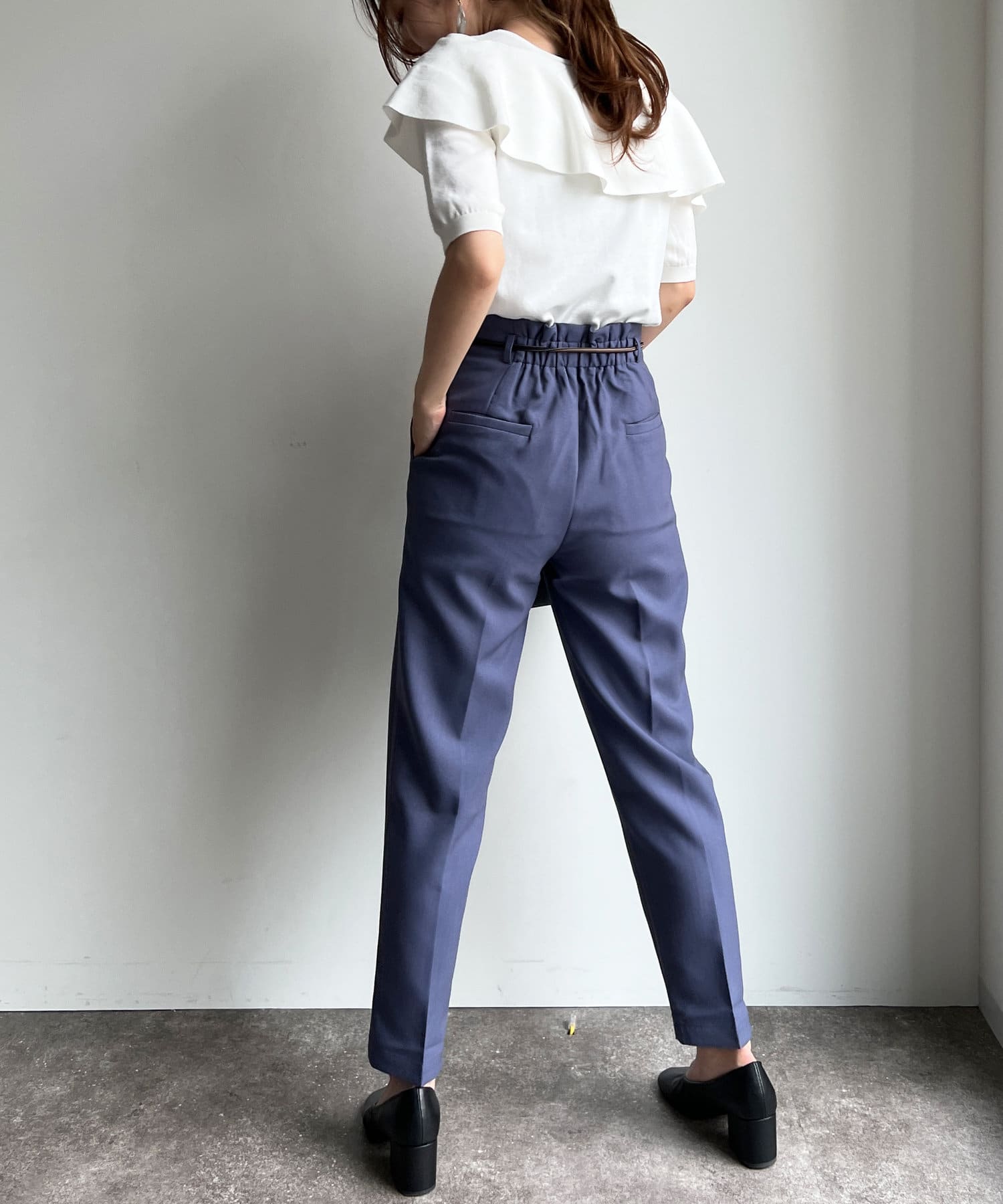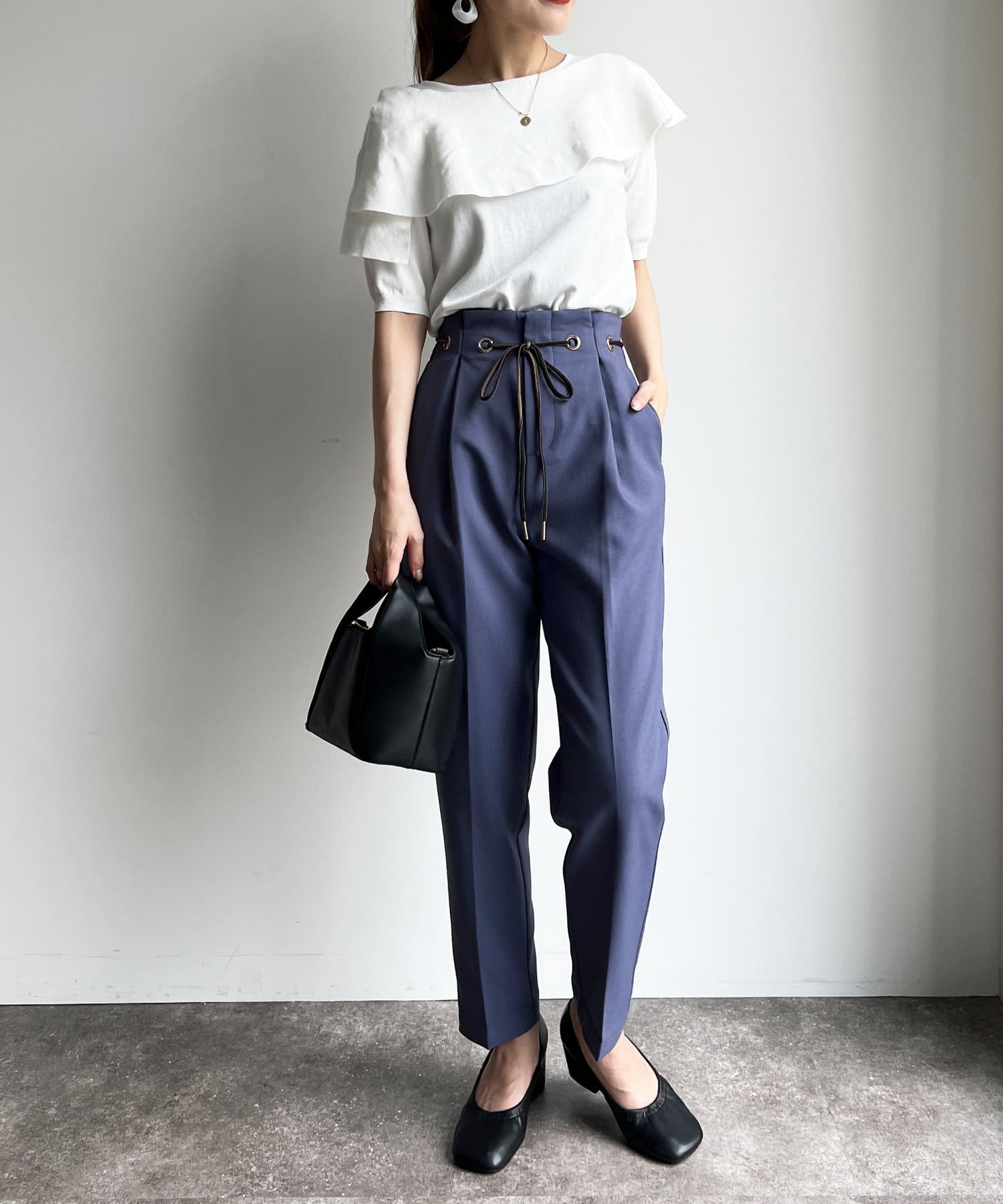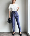デザインがしっかり効いたトップスなので、シンプルパンツやスカートと合わせるだけで
