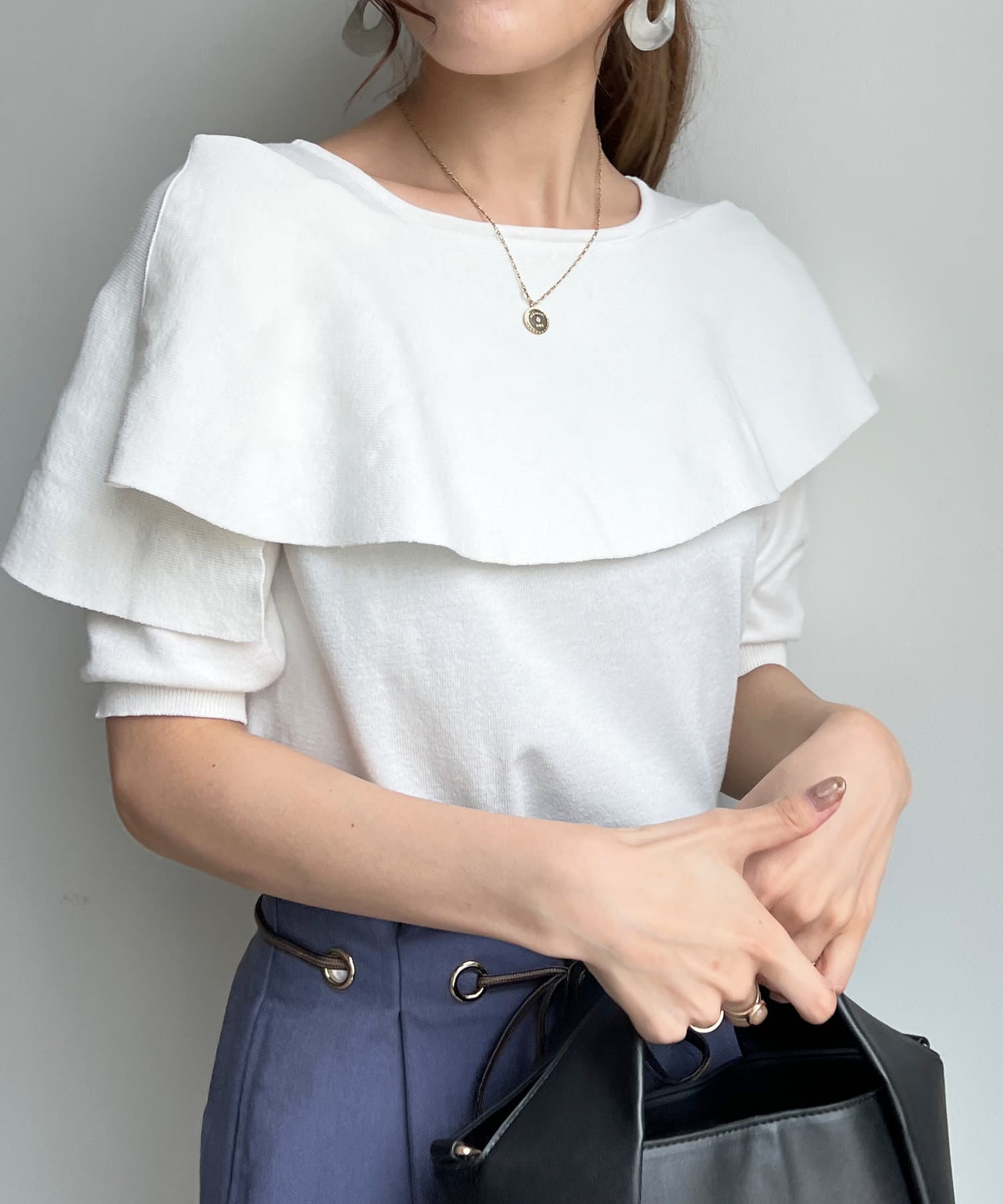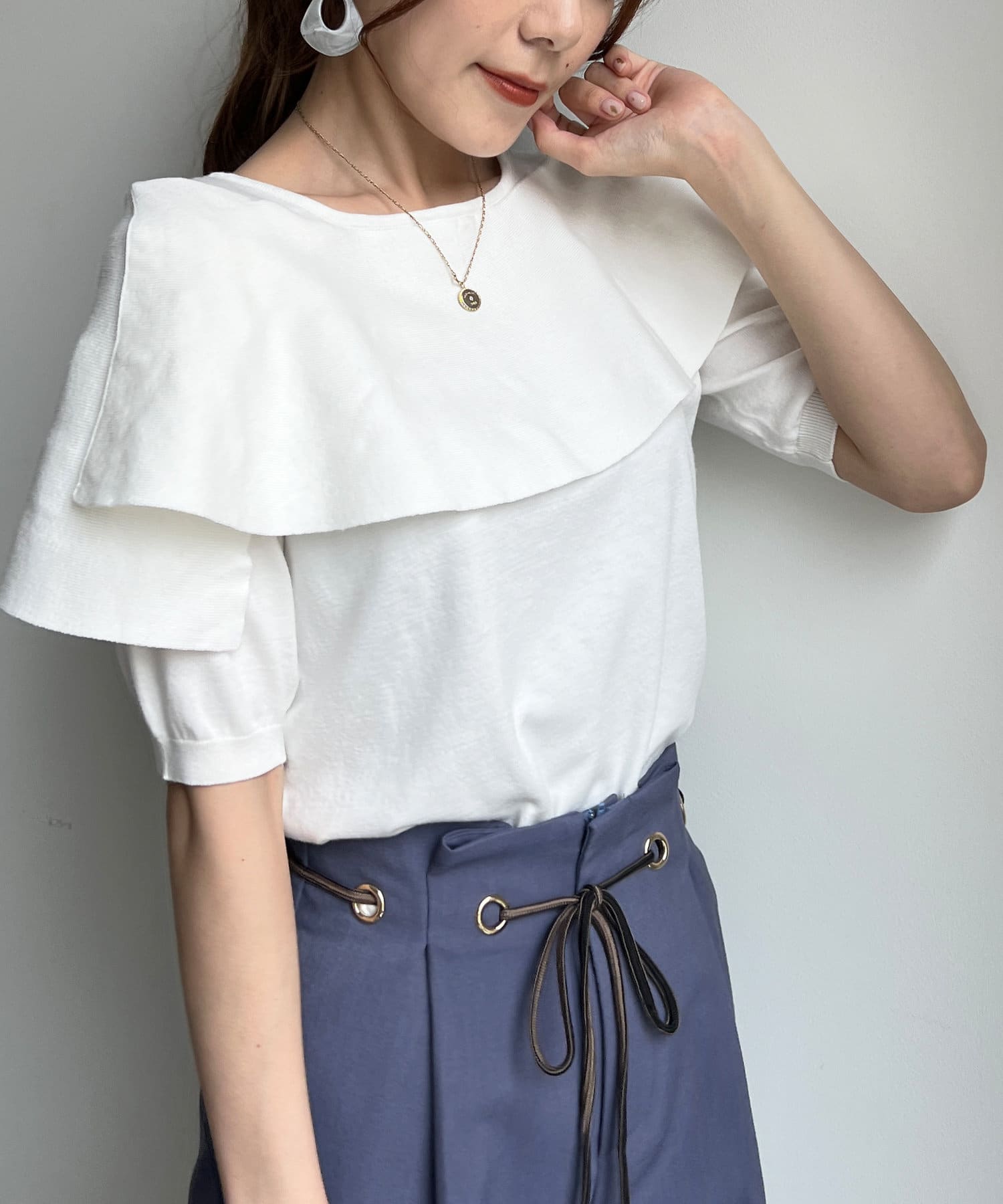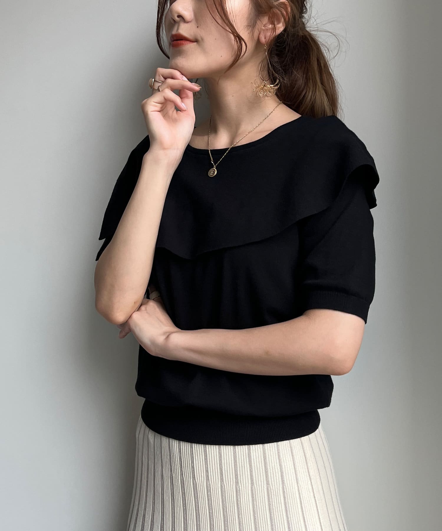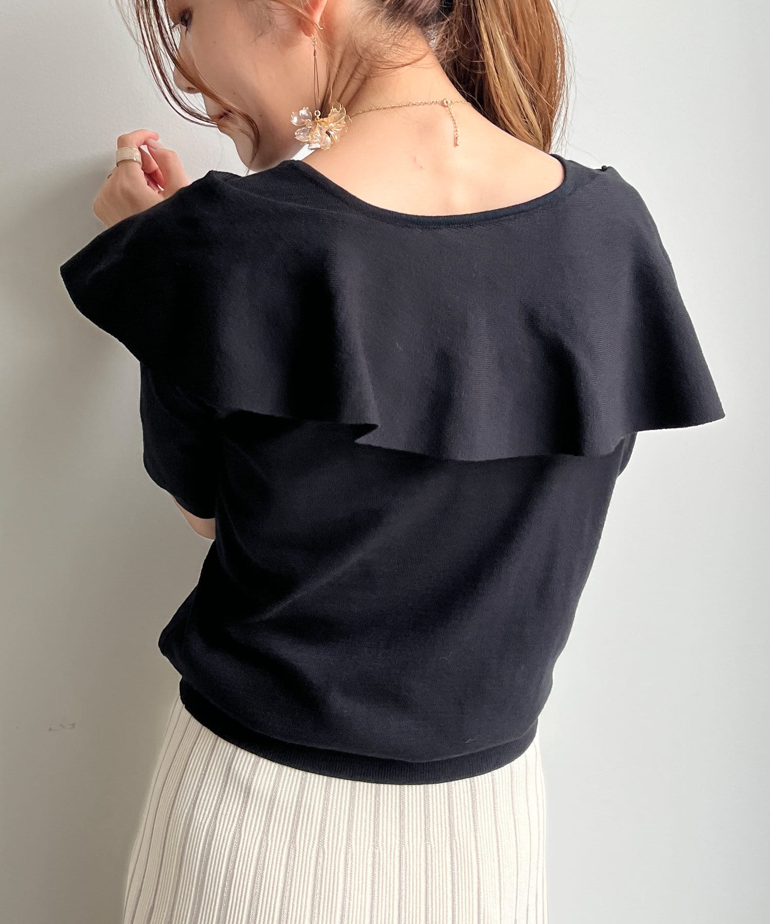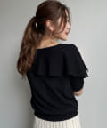 肩回りが華奢見えするニットトップス