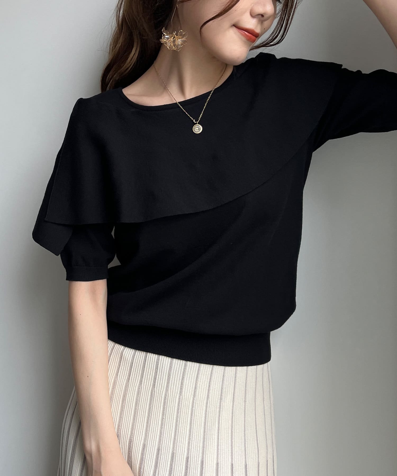 アシメカラー5分袖ニットプルオーバー
