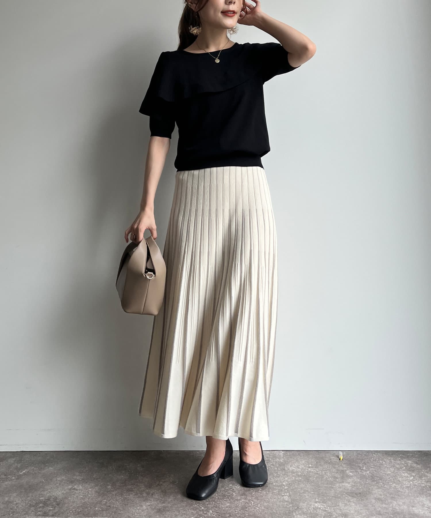ブラウス見えするので、オフィスコーデとしてもバッチリ◎