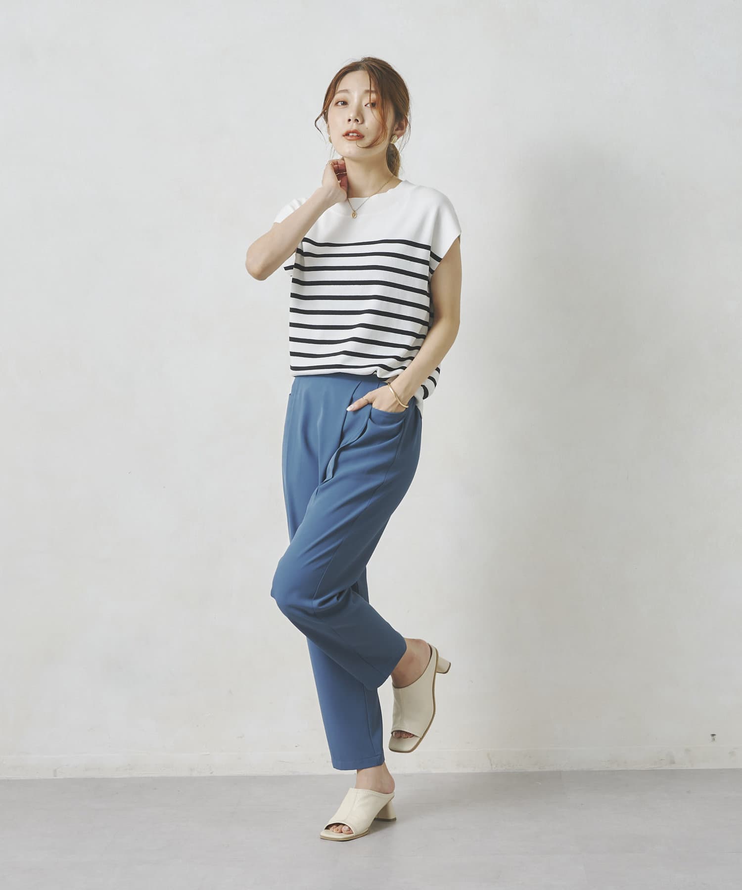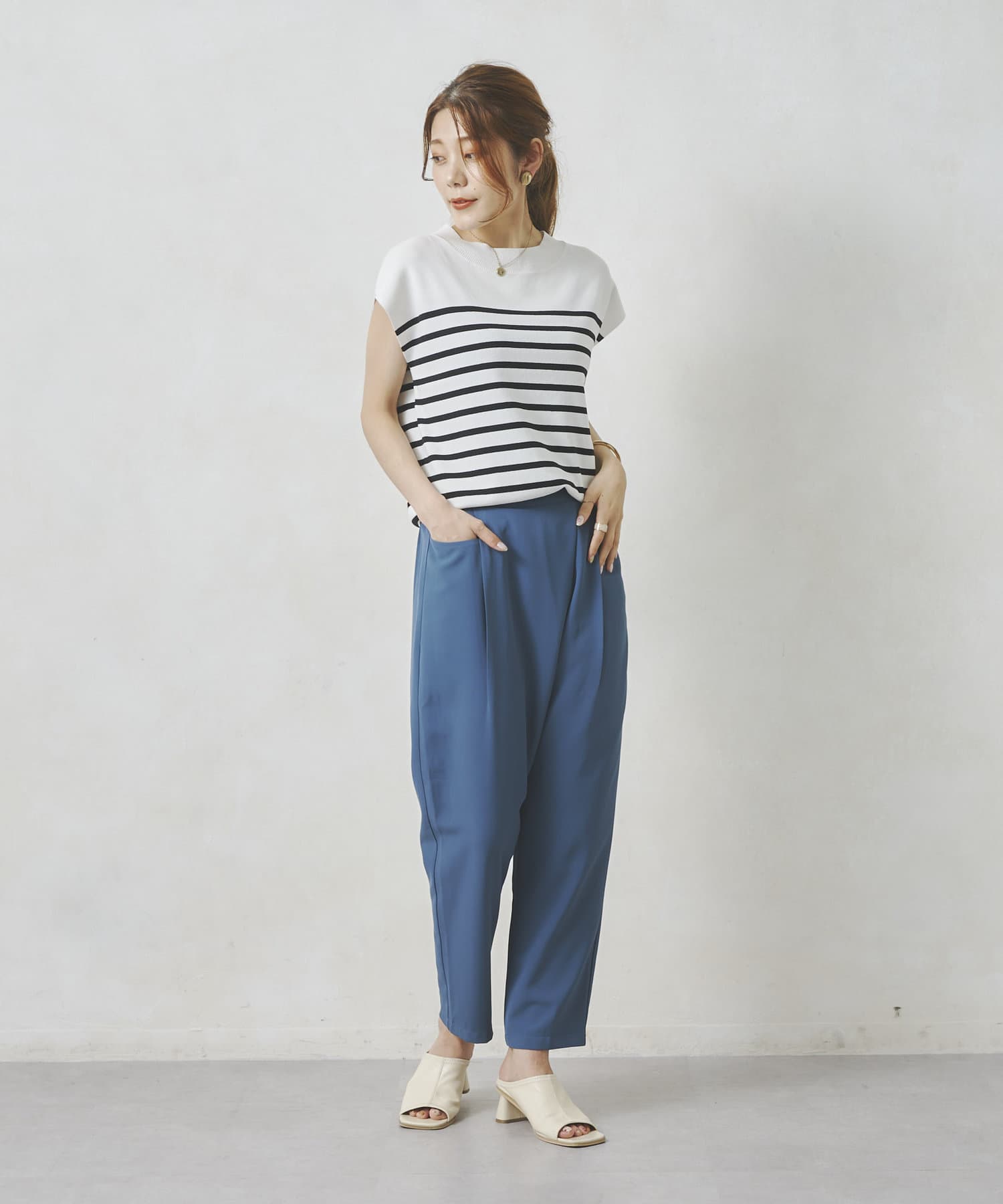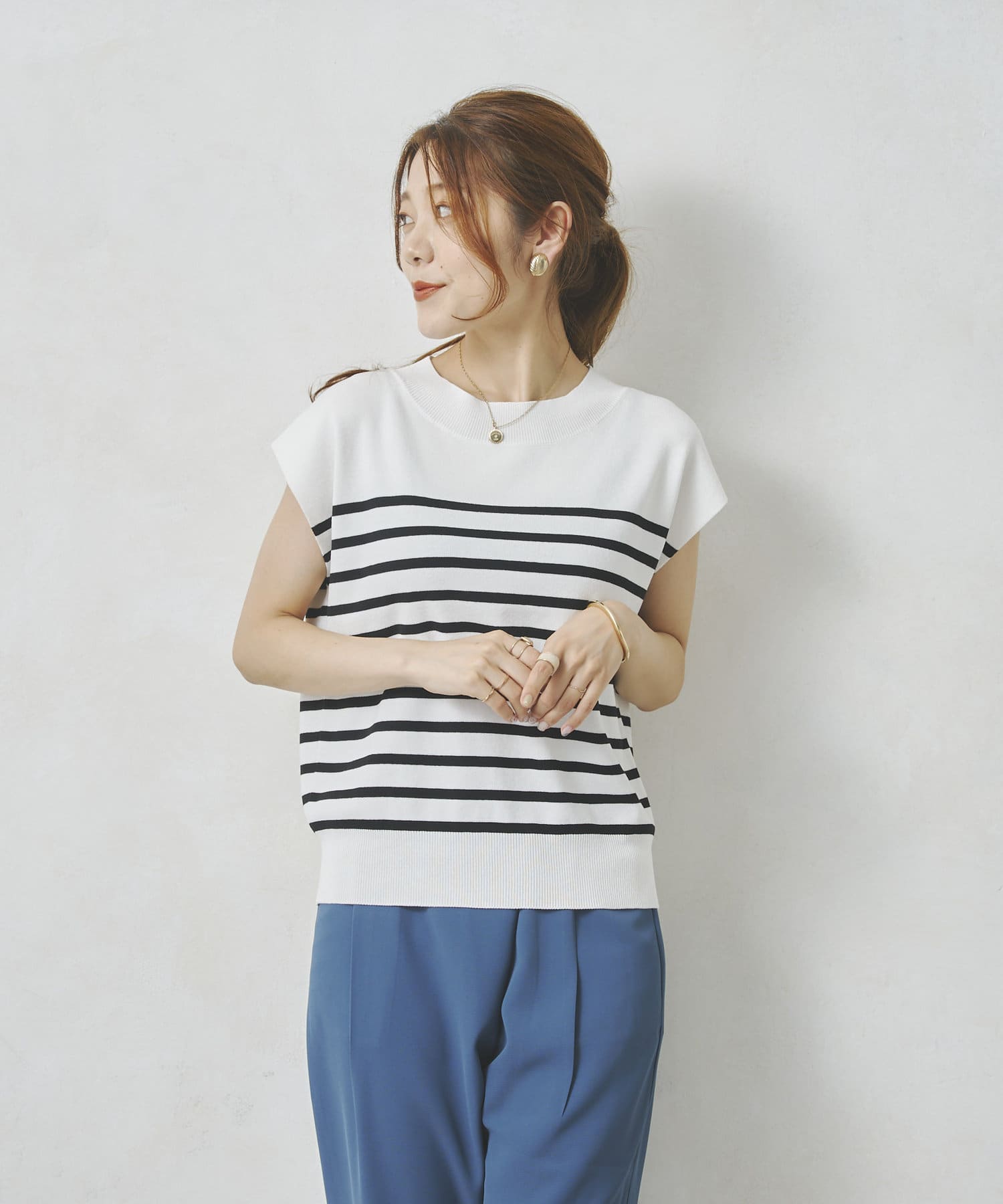 大人っぽくボーダーが着られて、周りの反応も良かったです。ただ襟元は伸びたようなシワが最初からあるので、何度か来ていくうちに襟は寄れていくのだろうなとちょっと心配です。