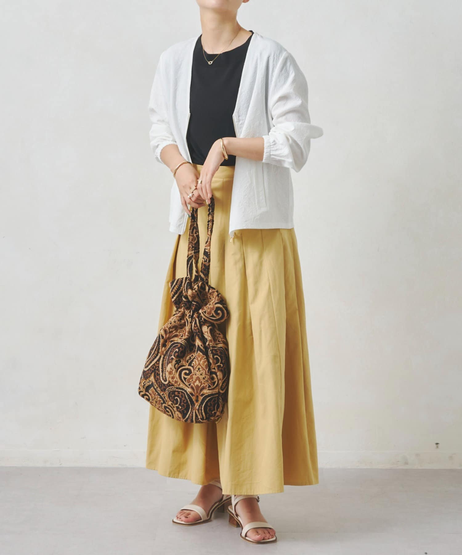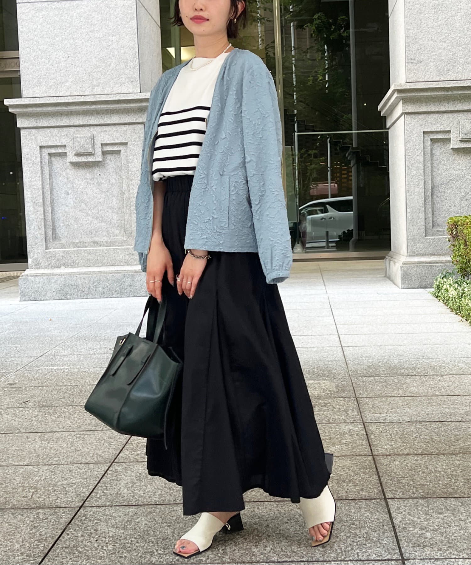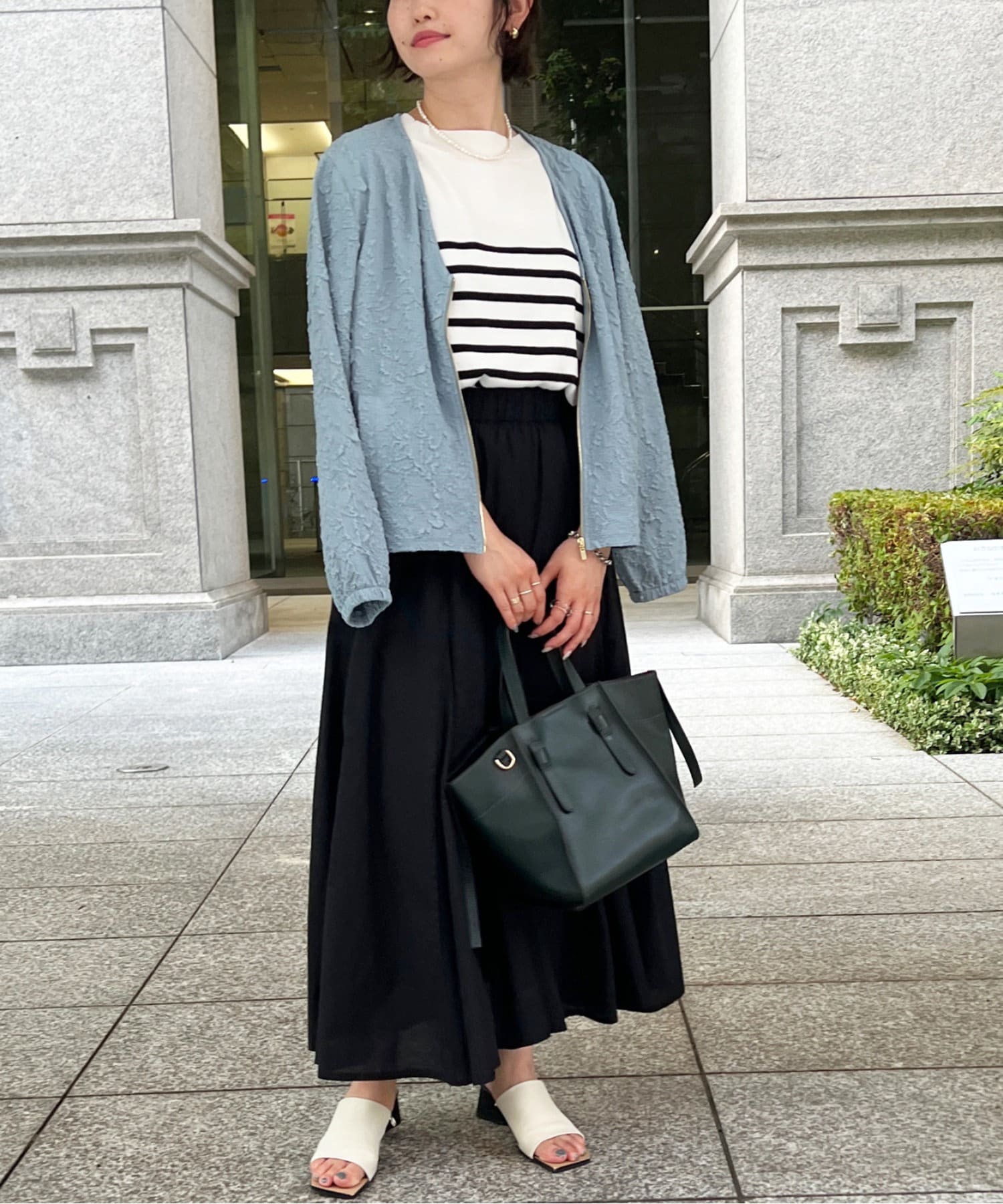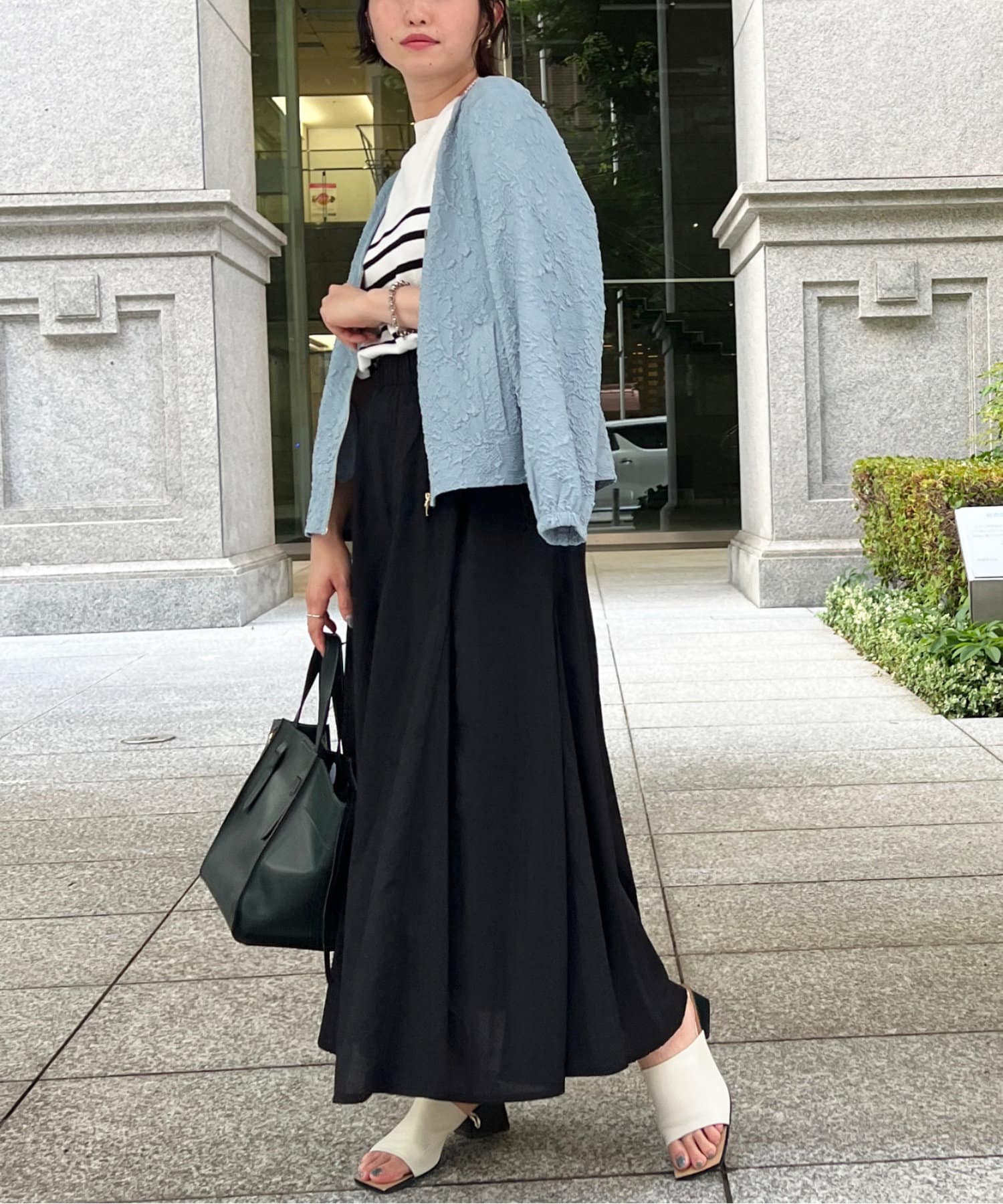 暑い時期は日除けや空調対策として肩掛けスタイルやさらっと羽織るだけでこなれ感のある印象に。