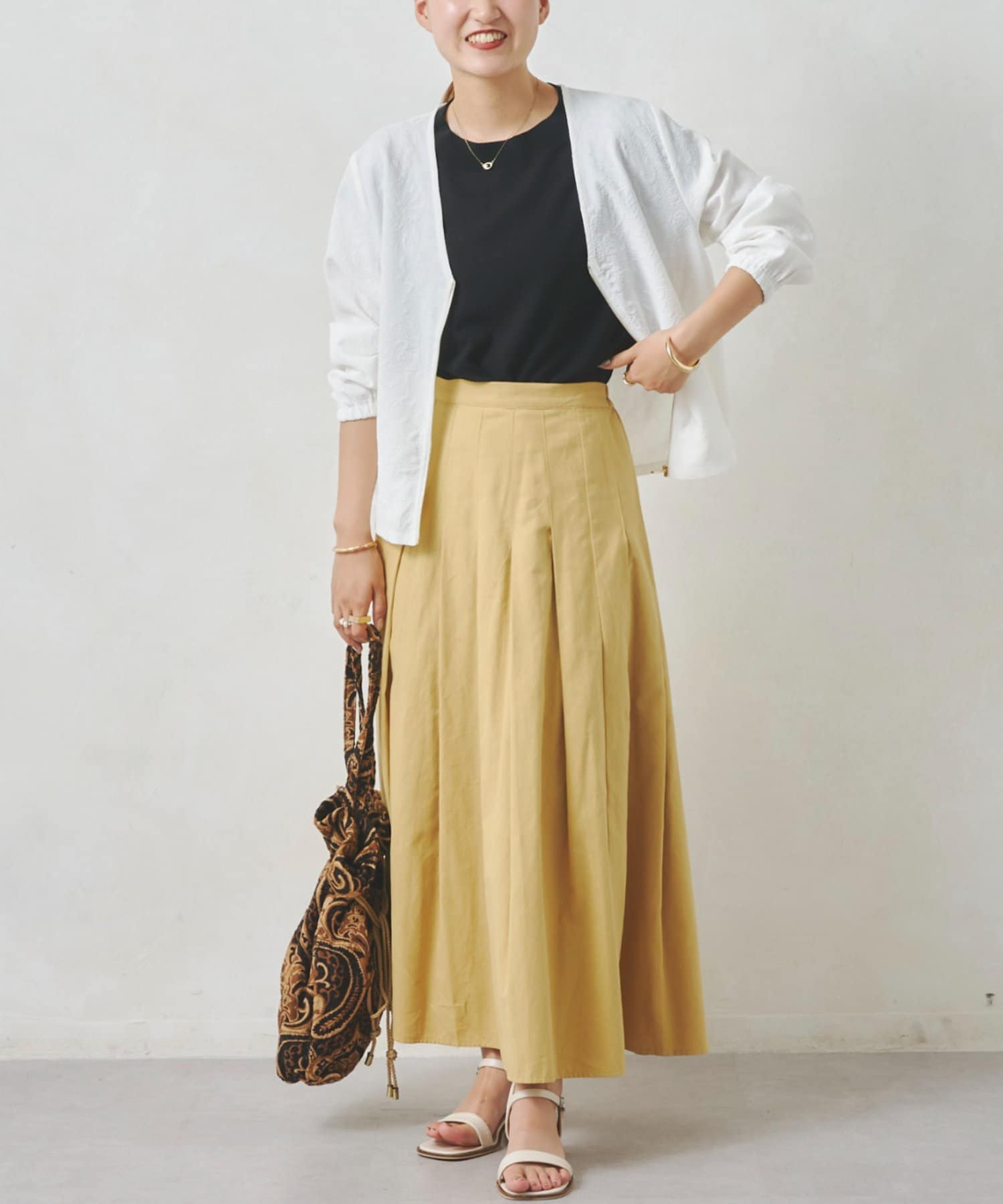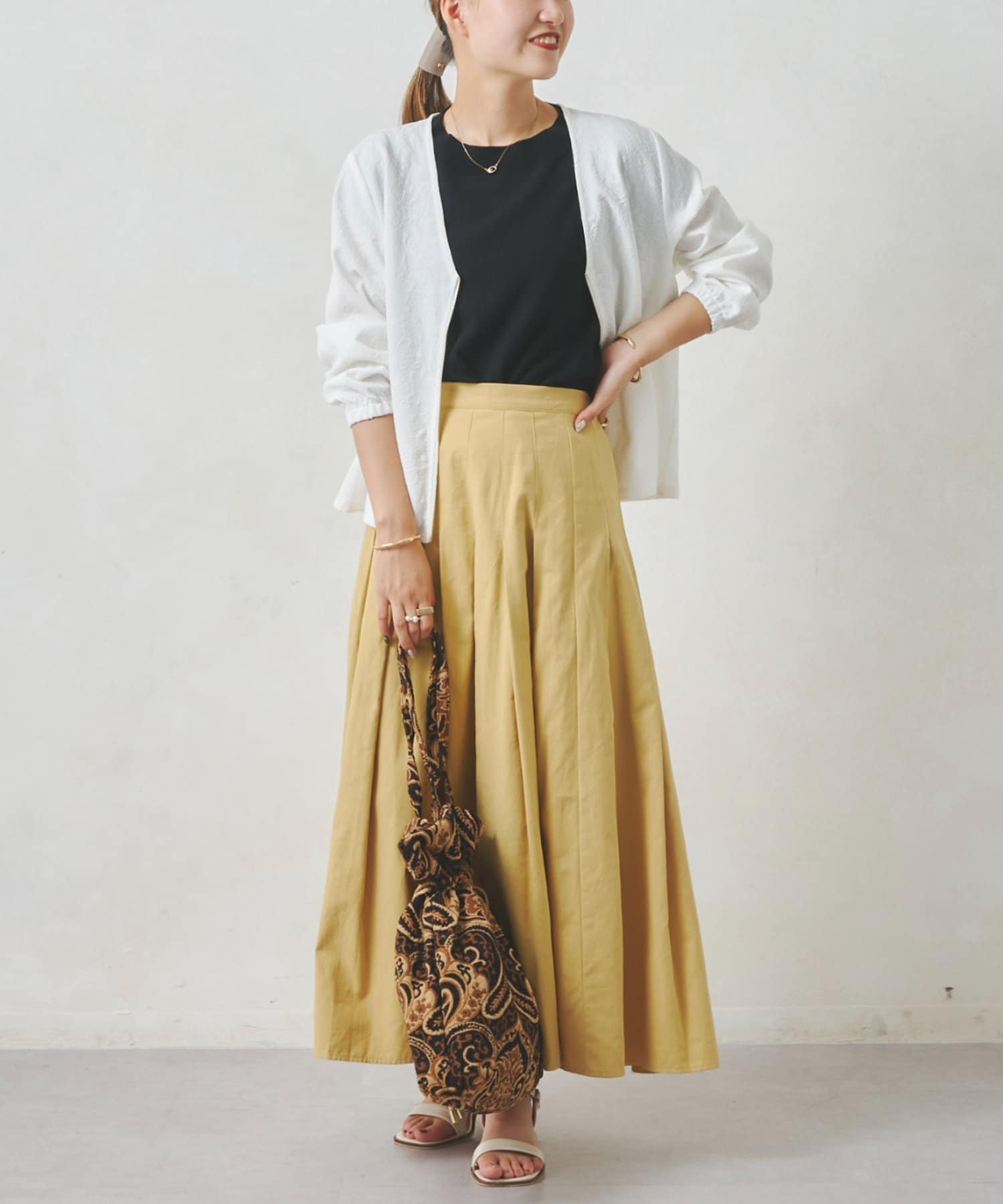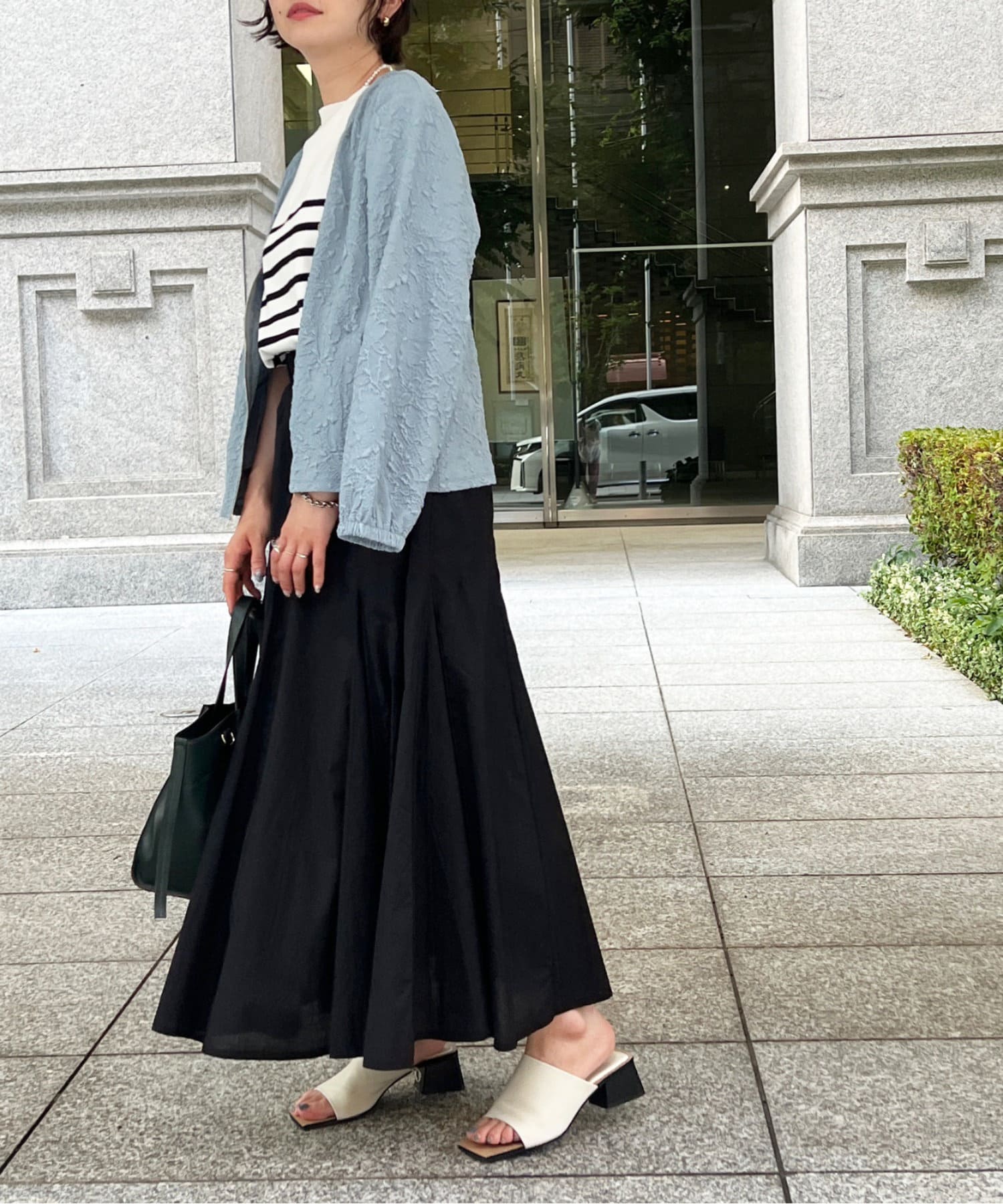 暑い時期は日除けや空調対策として肩掛けスタイルやさらっと羽織るだけでこなれ感のある印象に。
