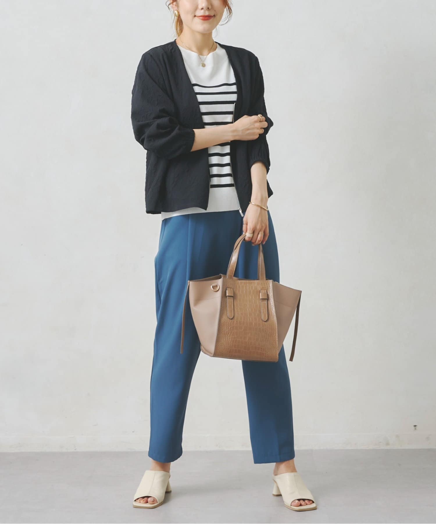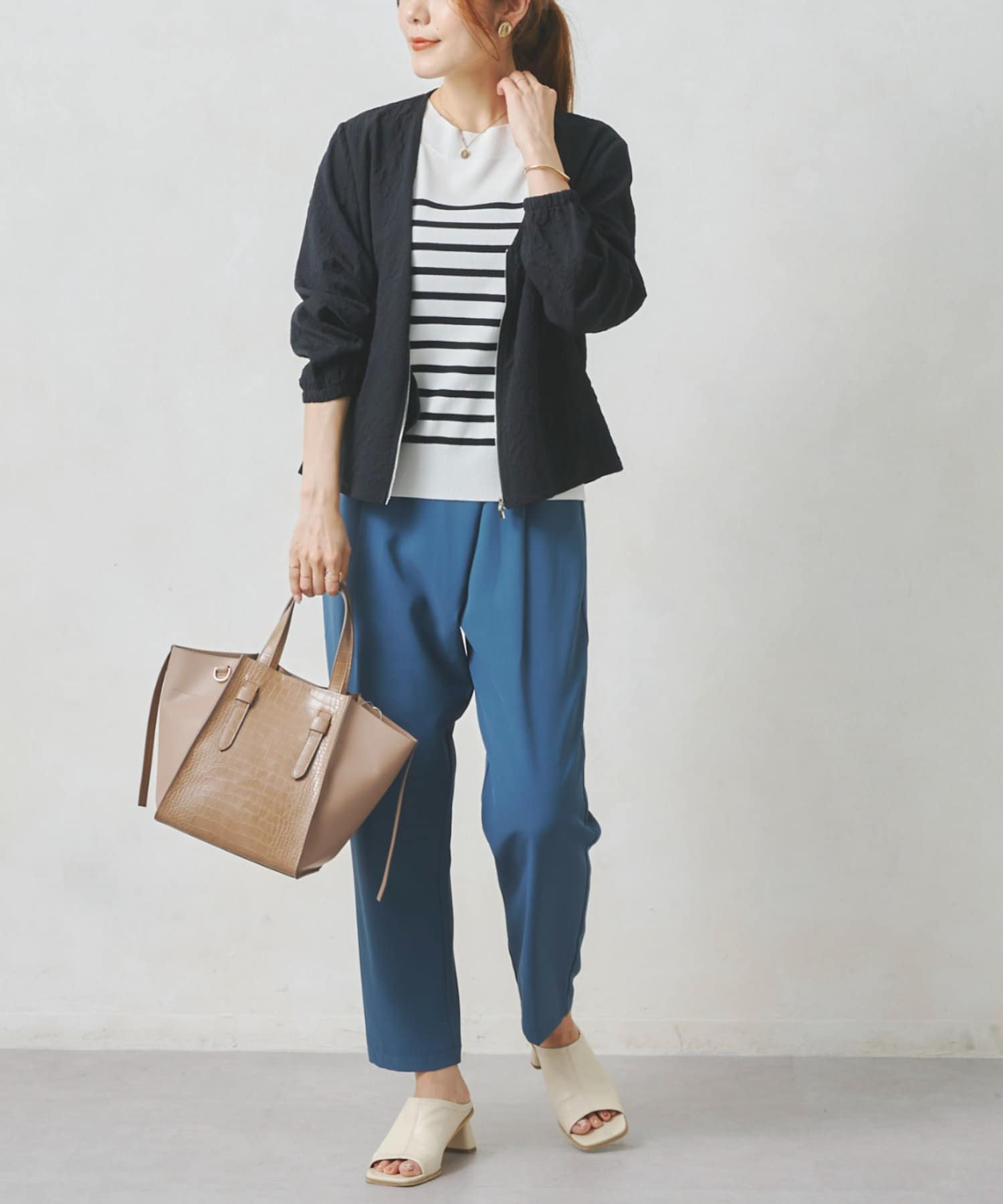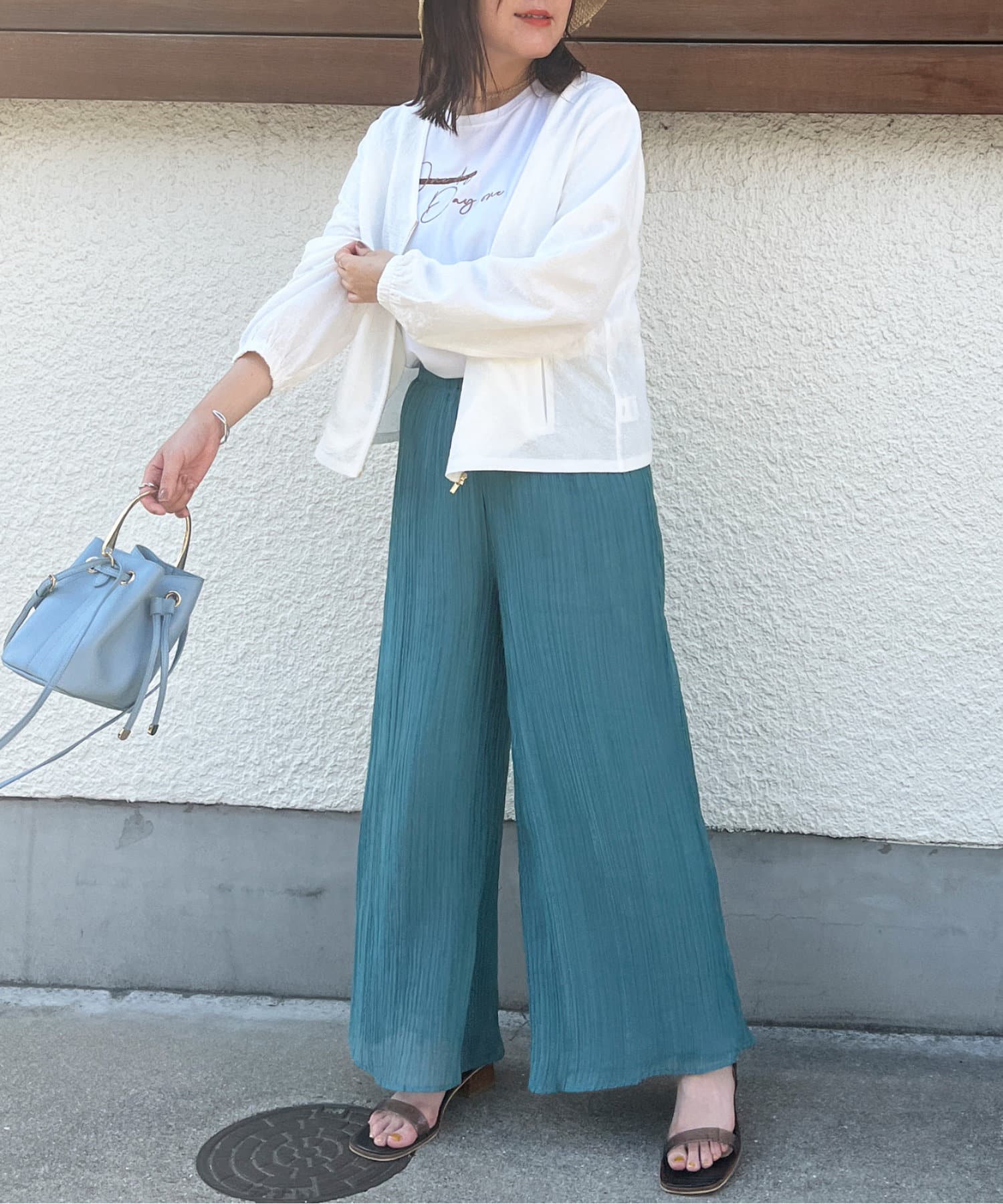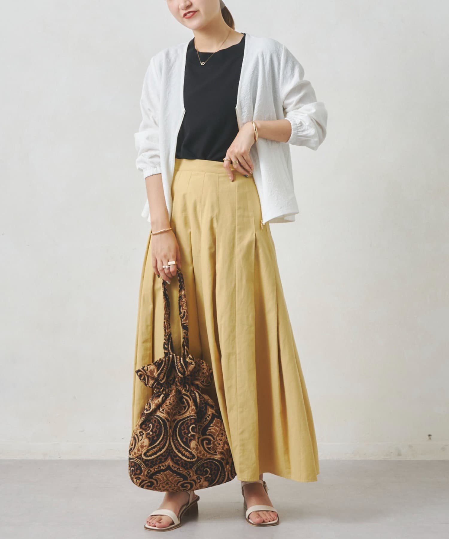 暑い時期は日除けや空調対策として肩掛けスタイルやさらっと羽織るだけでこなれ感のある印象に。