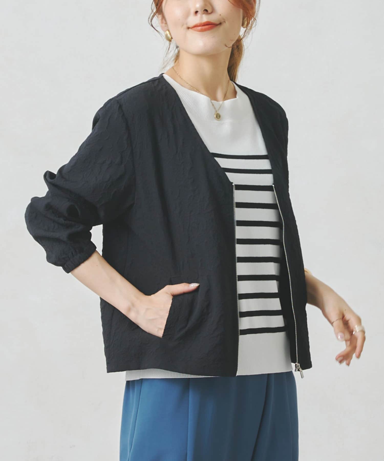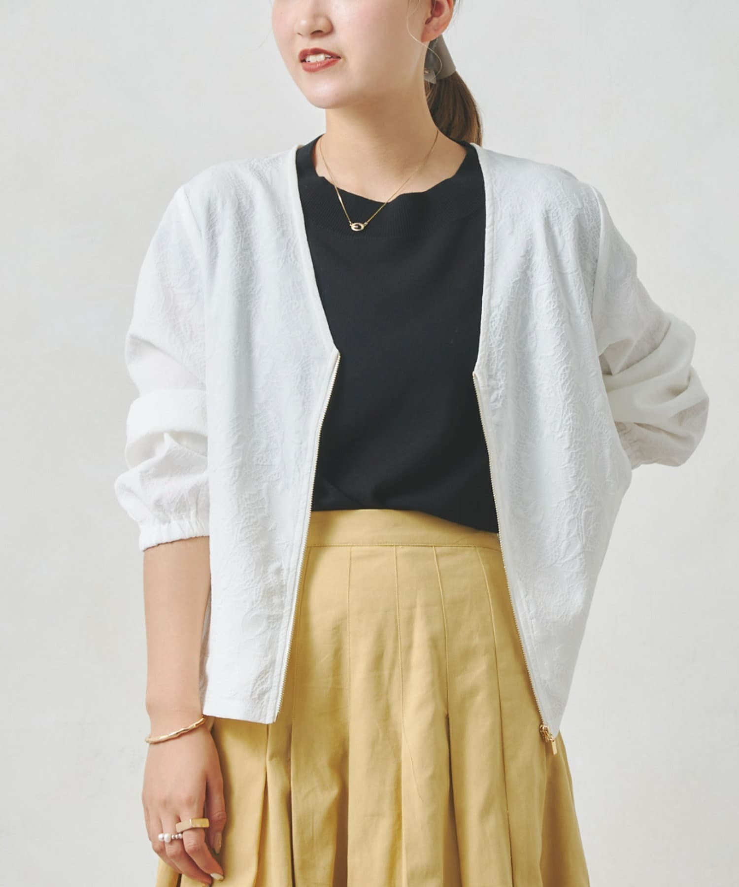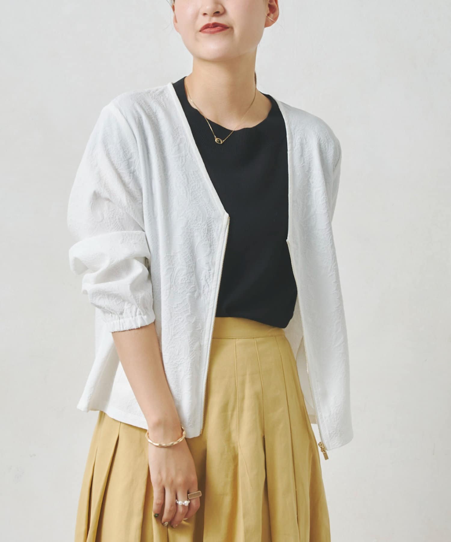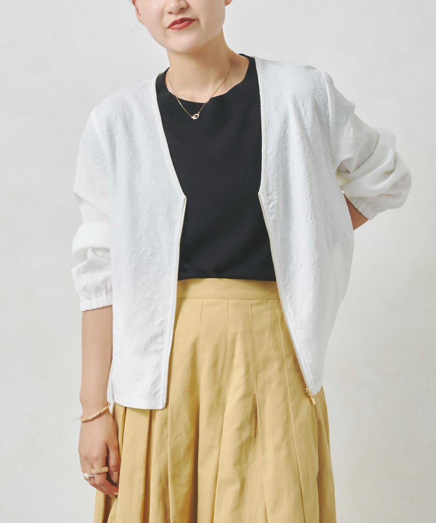 羽織るだけでこなれ見え ジャカード素材の大人カジュアルなジップブルゾン
