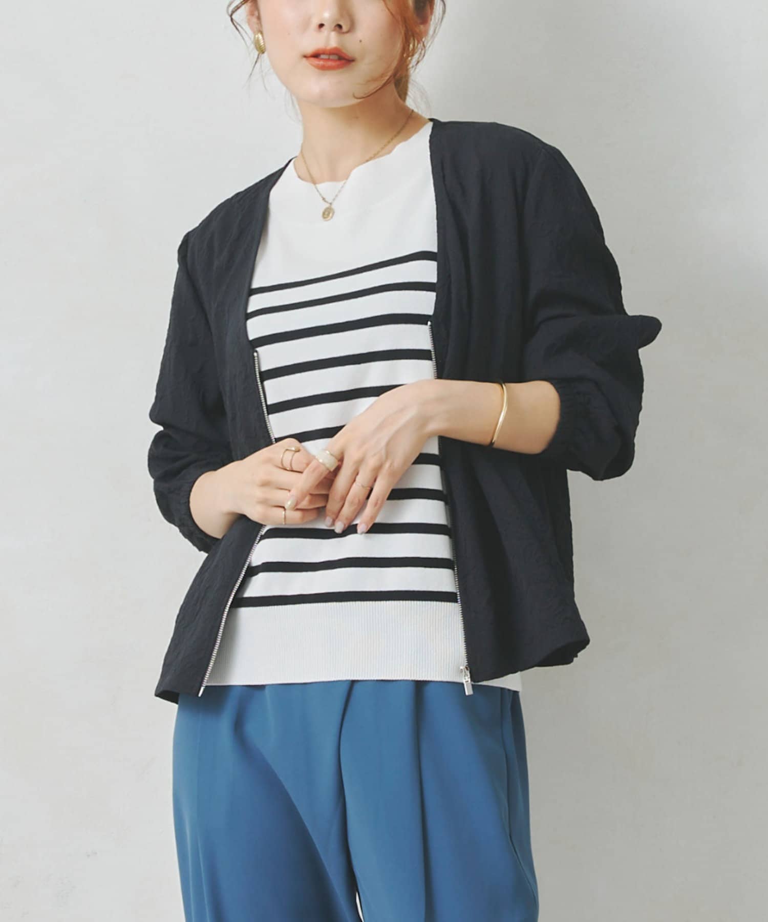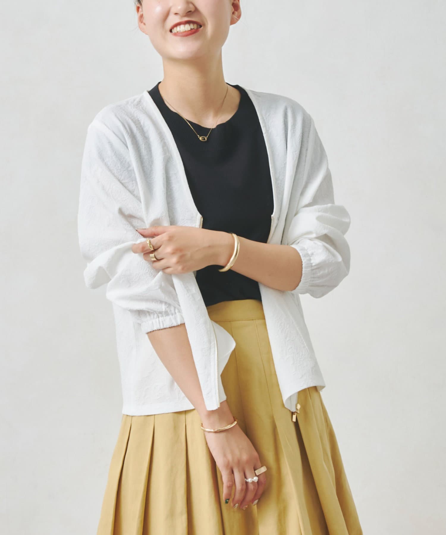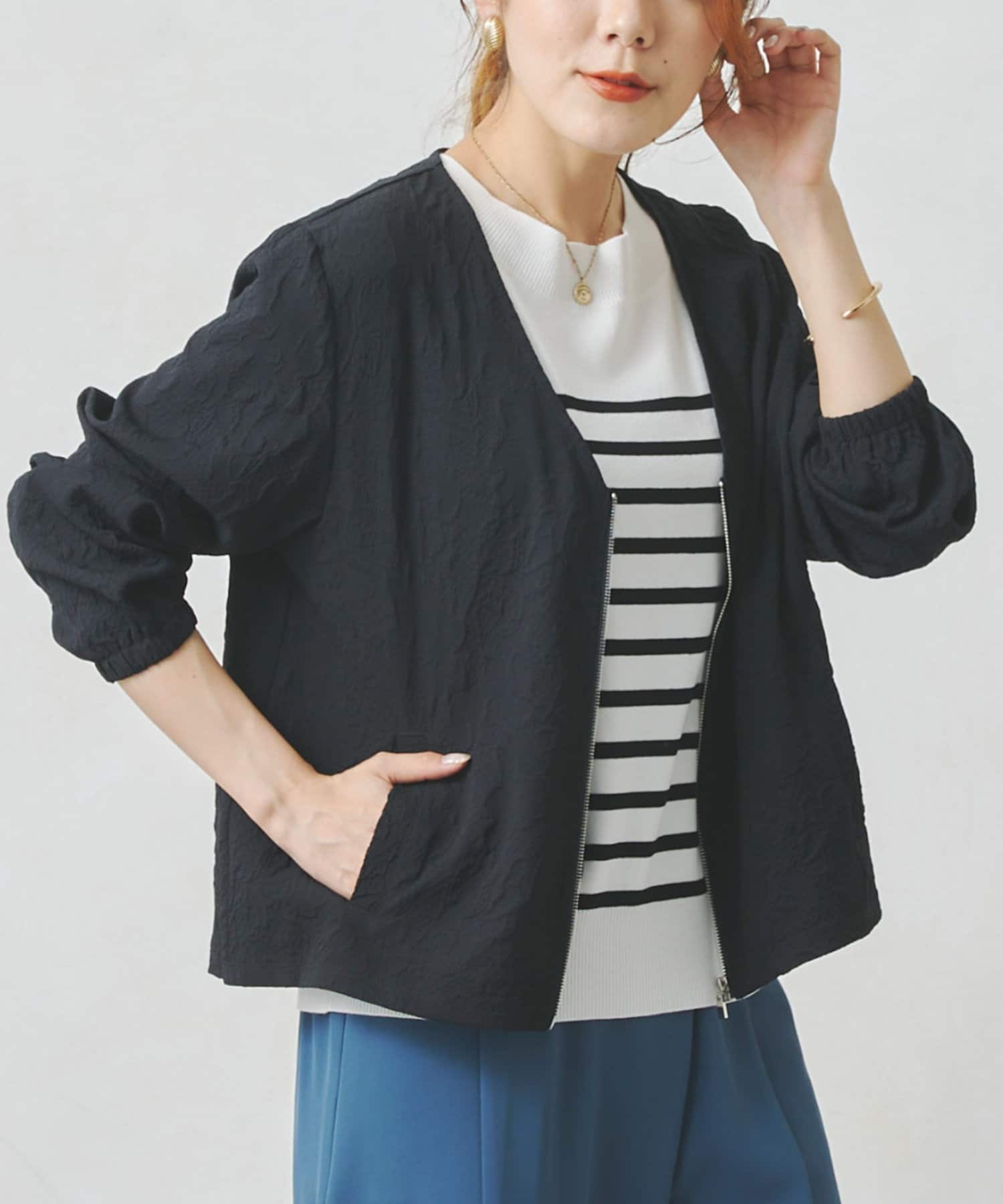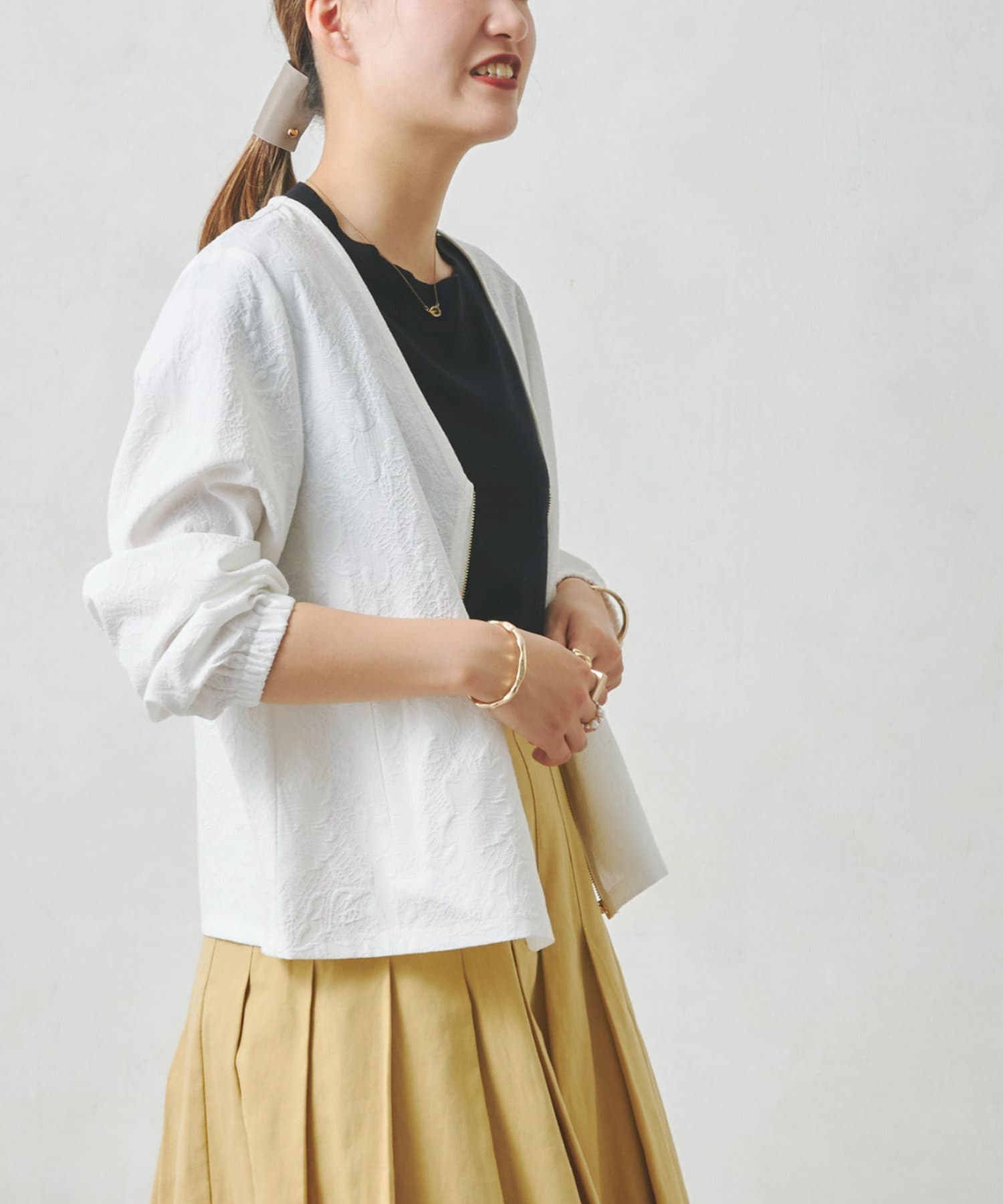 羽織るだけでこなれ見え ジャカード素材の大人カジュアルなジップブルゾン