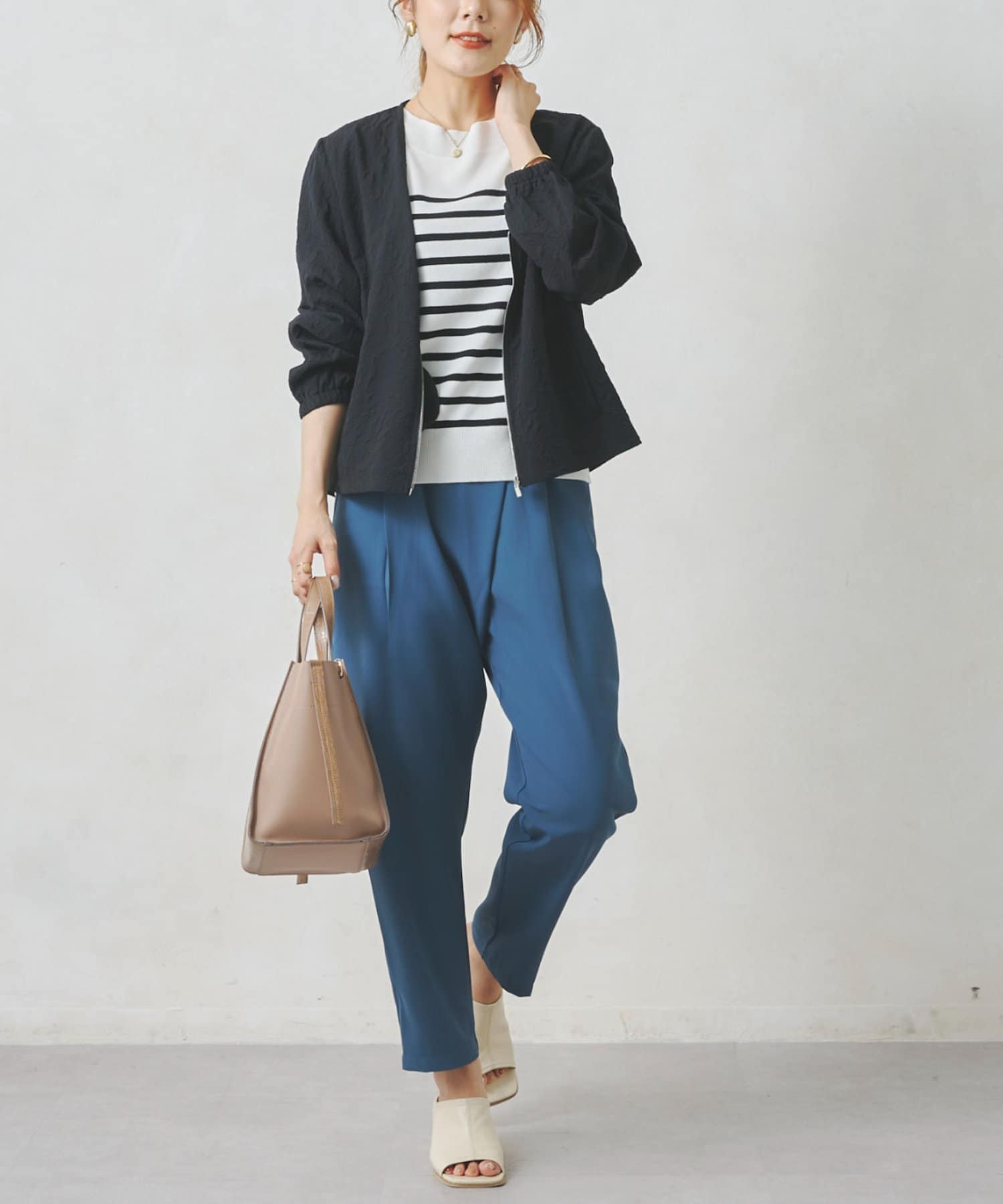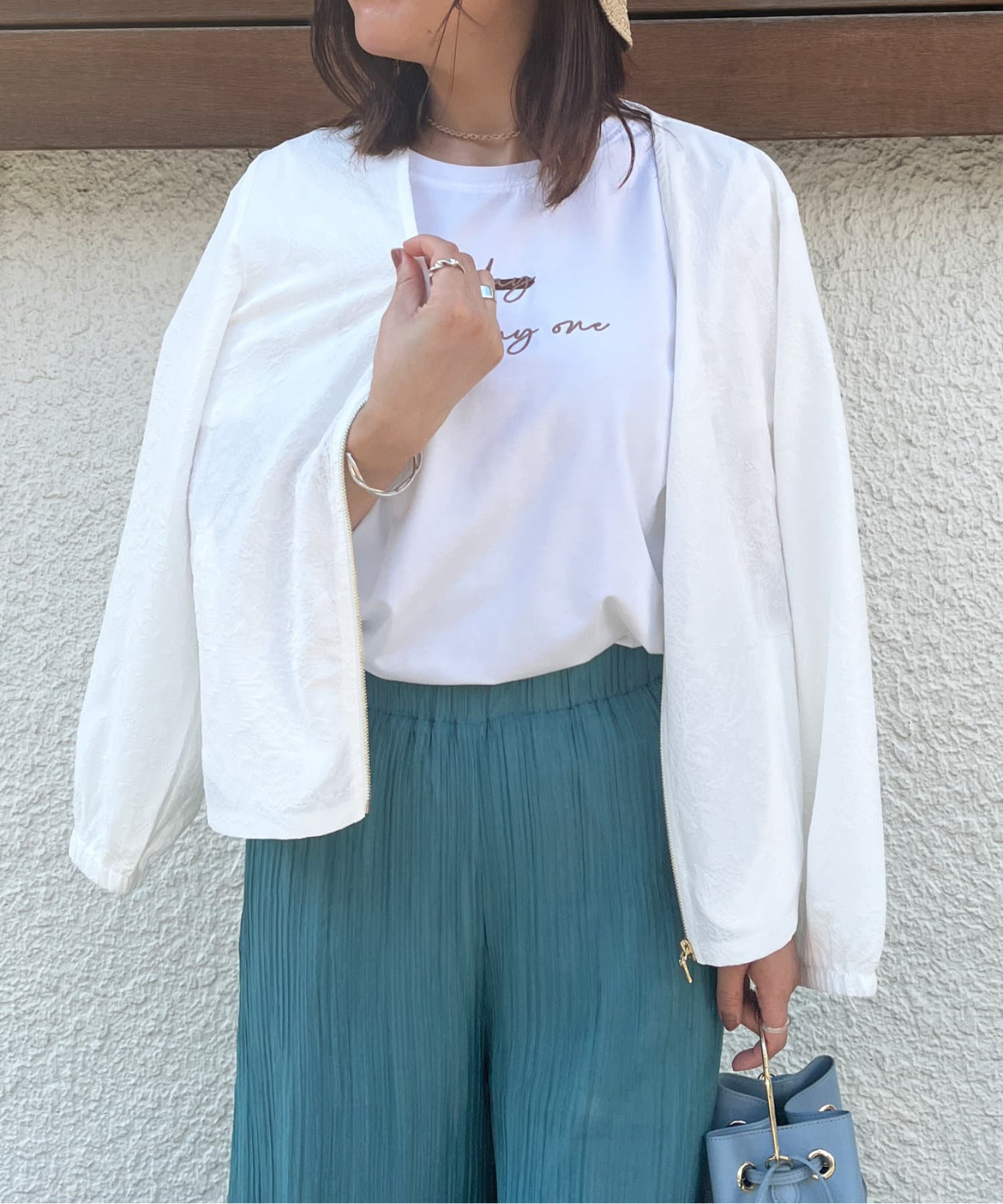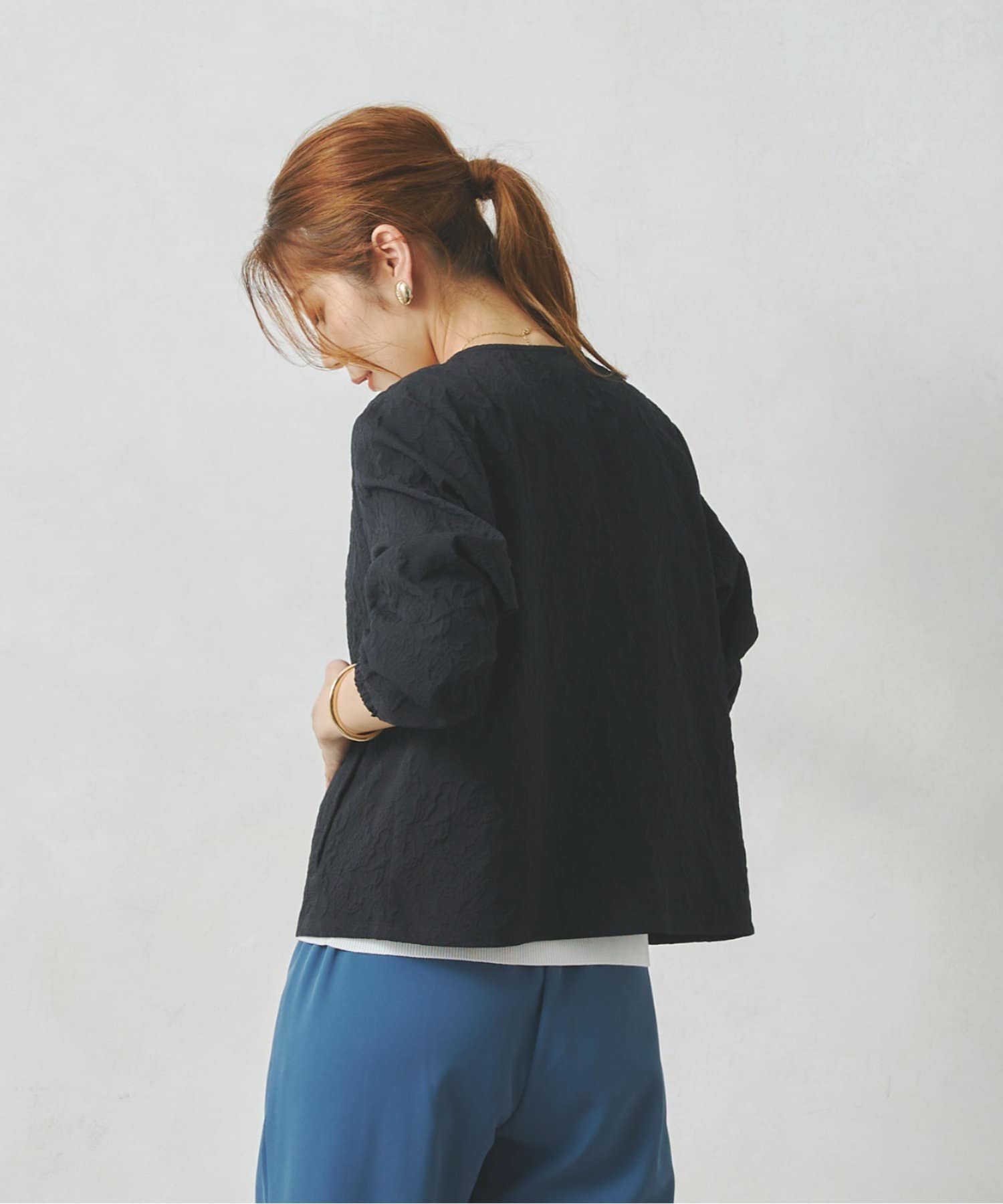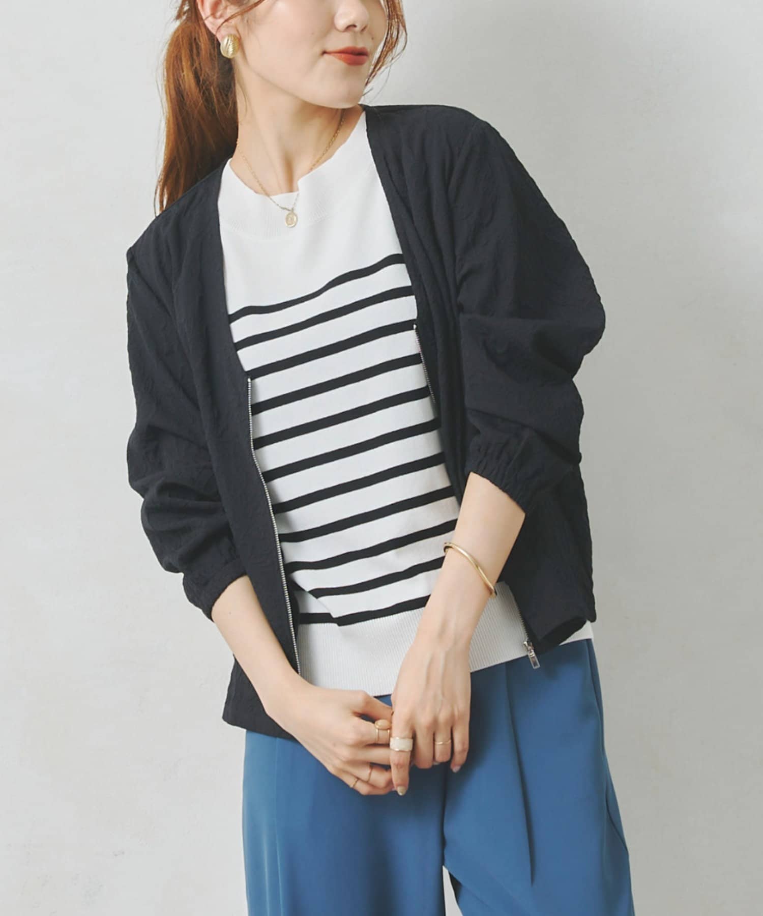 羽織るだけでこなれ見え ジャカード素材の大人カジュアルなジップブルゾン