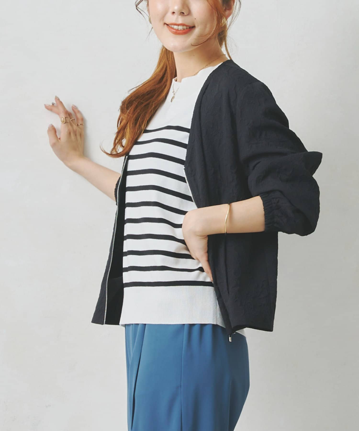 • Chez toi(シェトワ) JQ織柄ZIPブルゾン