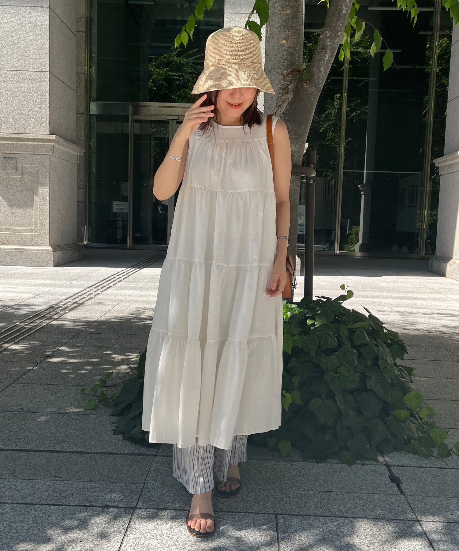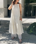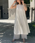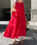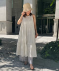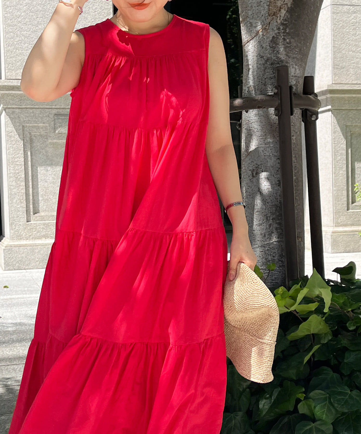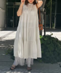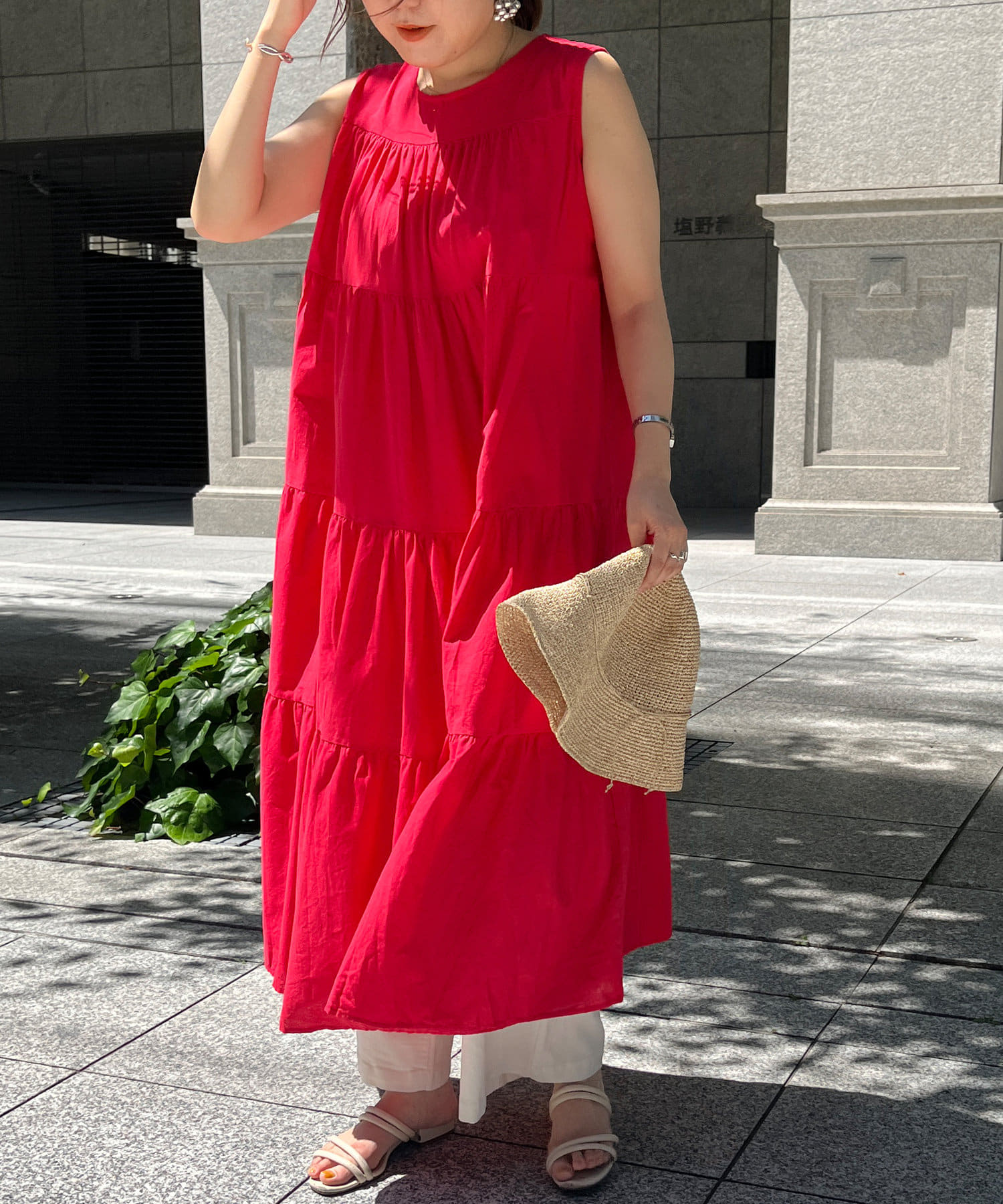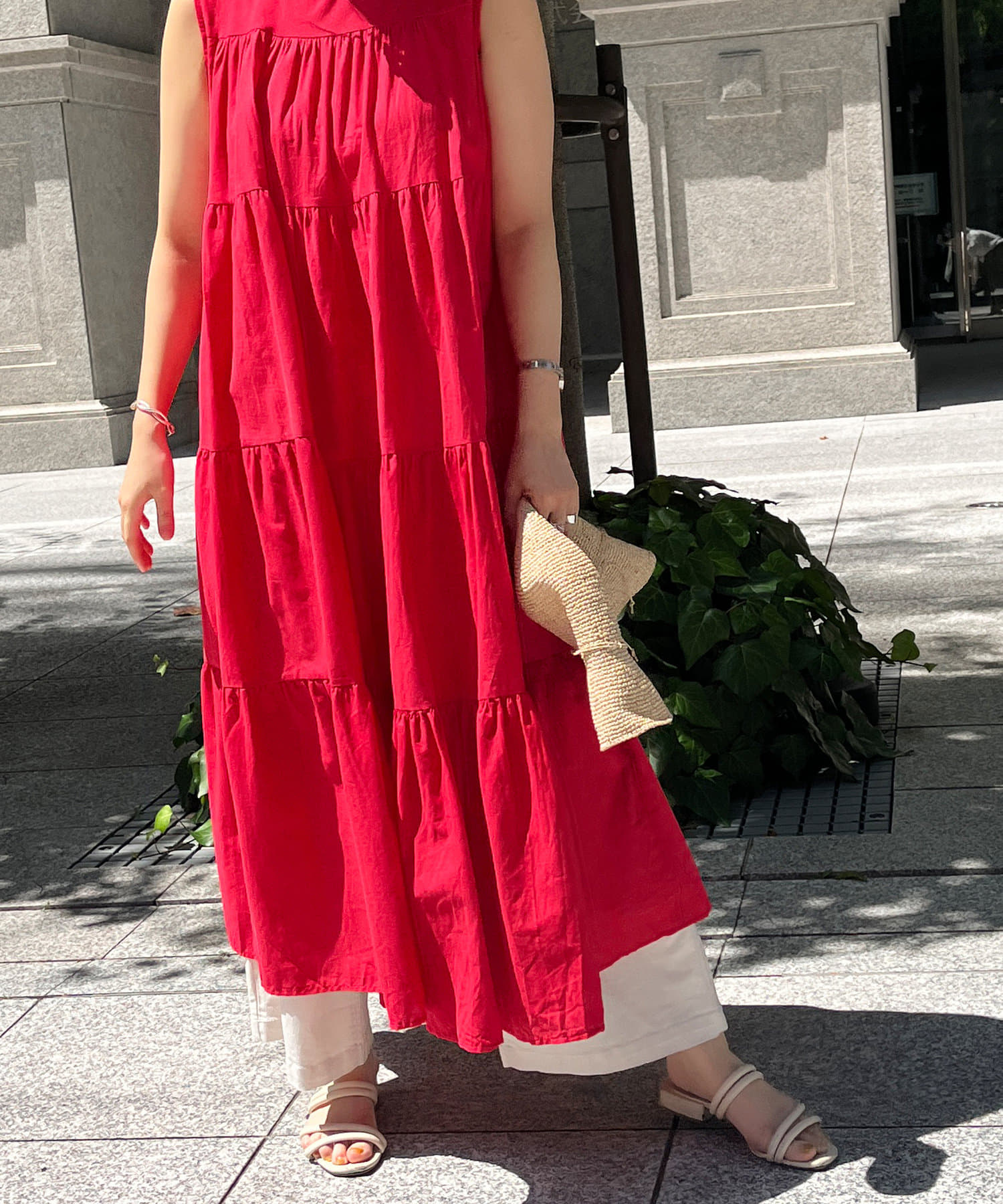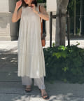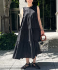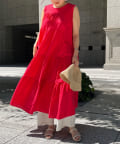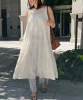 ・ノースリーブなのでレースカーデやカーディガンも羽織りやすい◎。