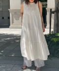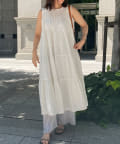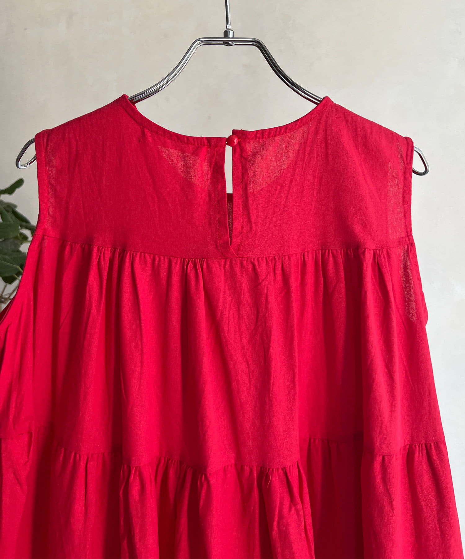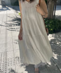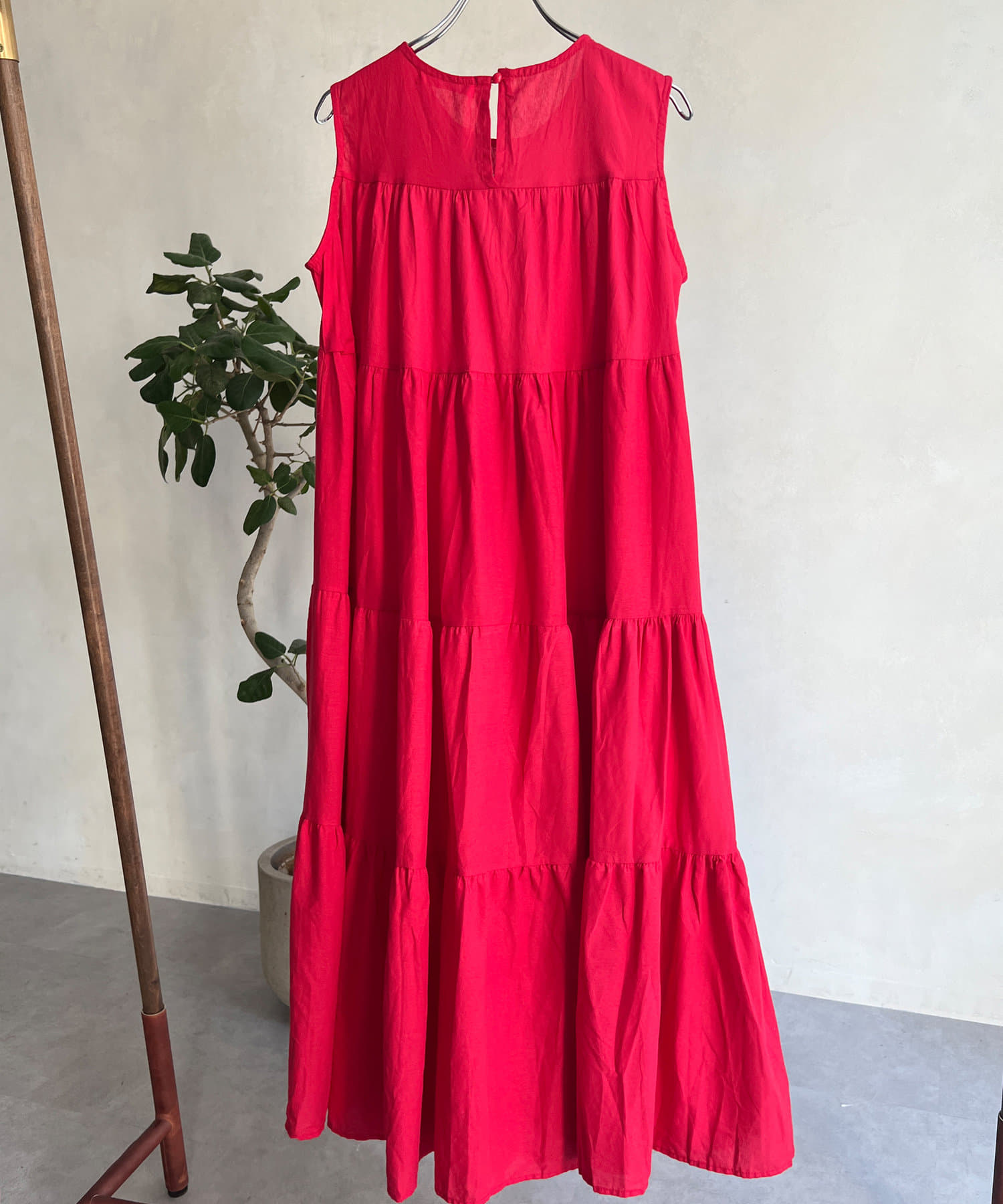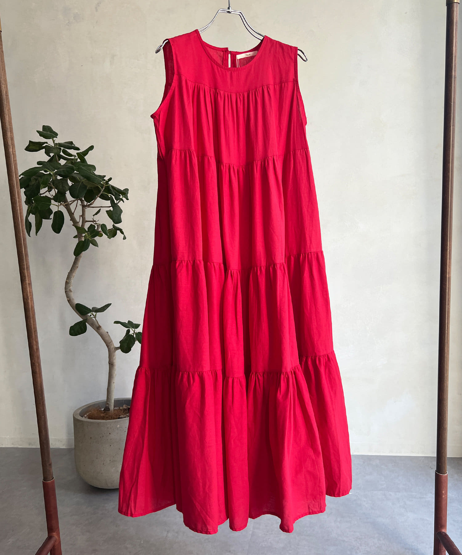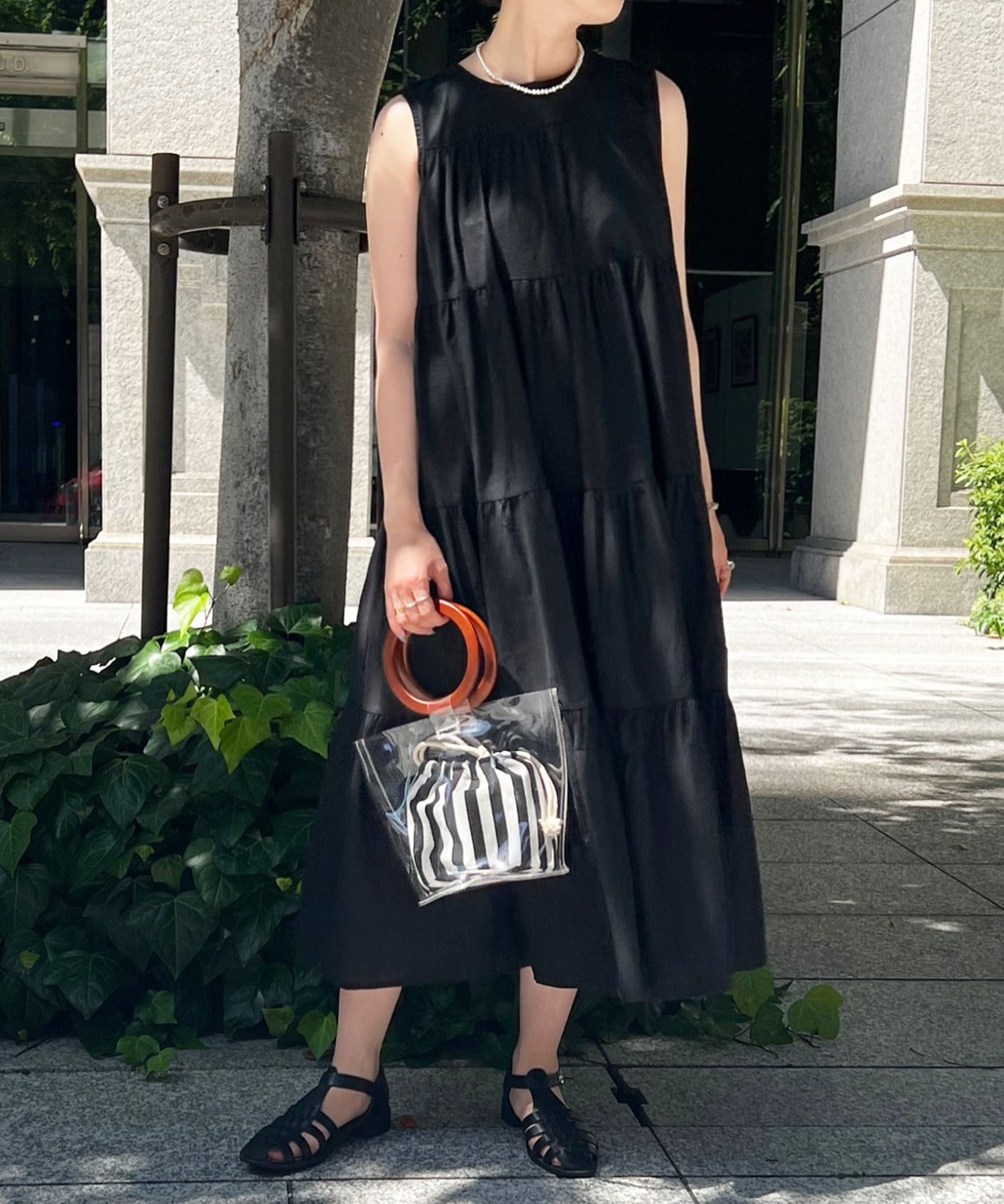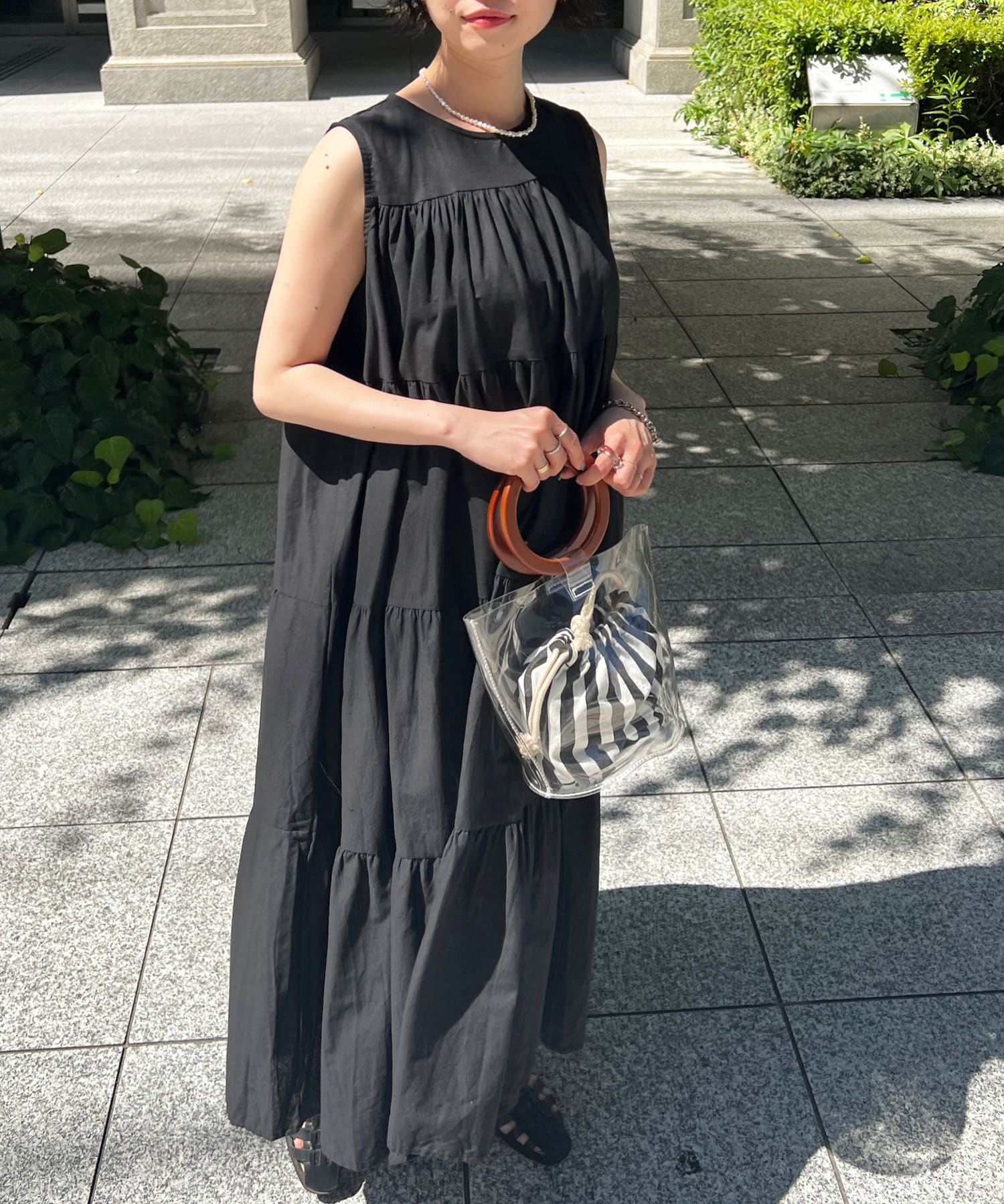 ・ノースリーブなのでレースカーデやカーディガンも羽織りやすい◎。