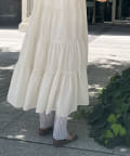 たっぷりと生地を使ったボリューム感のあるティアードデザインが