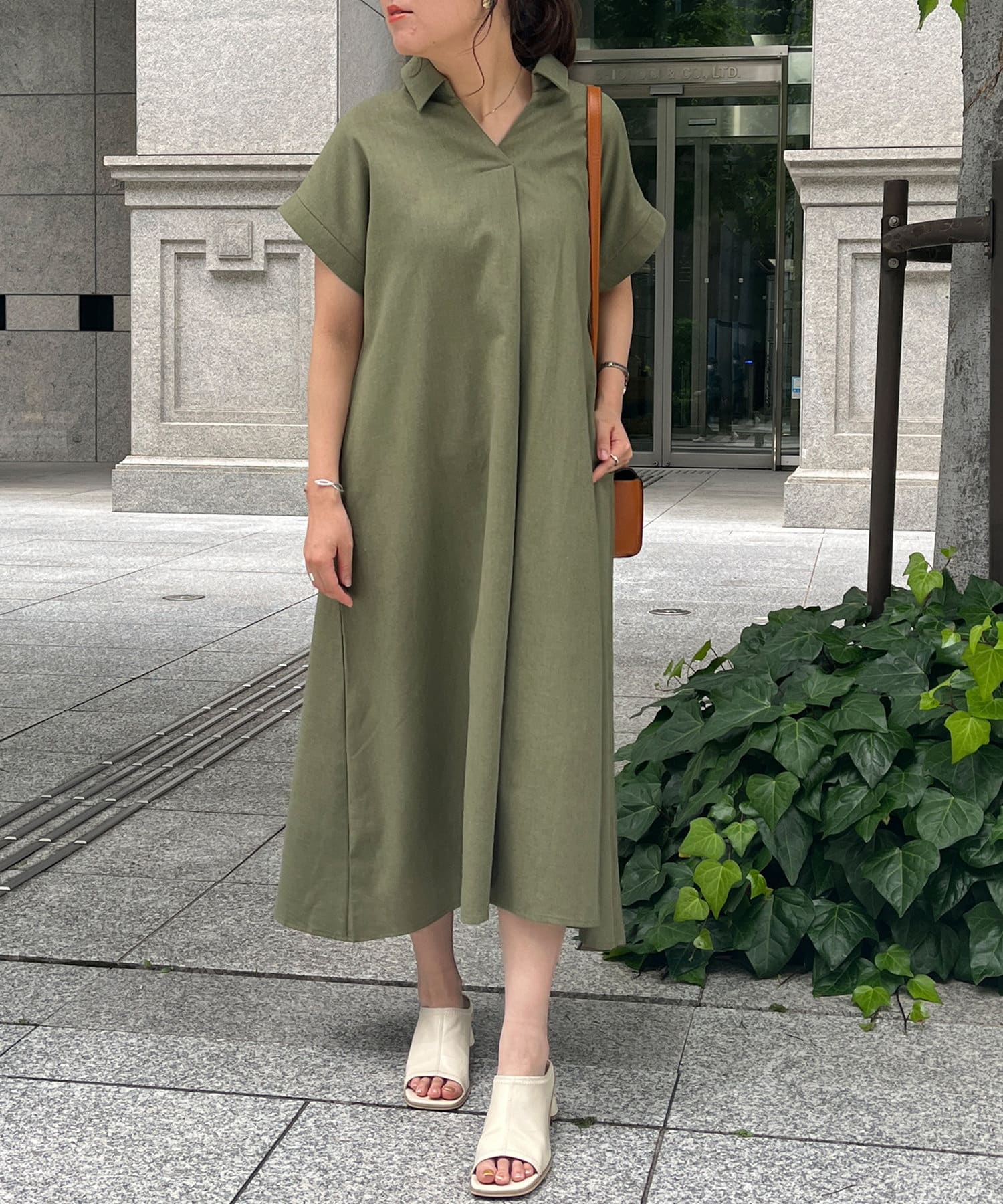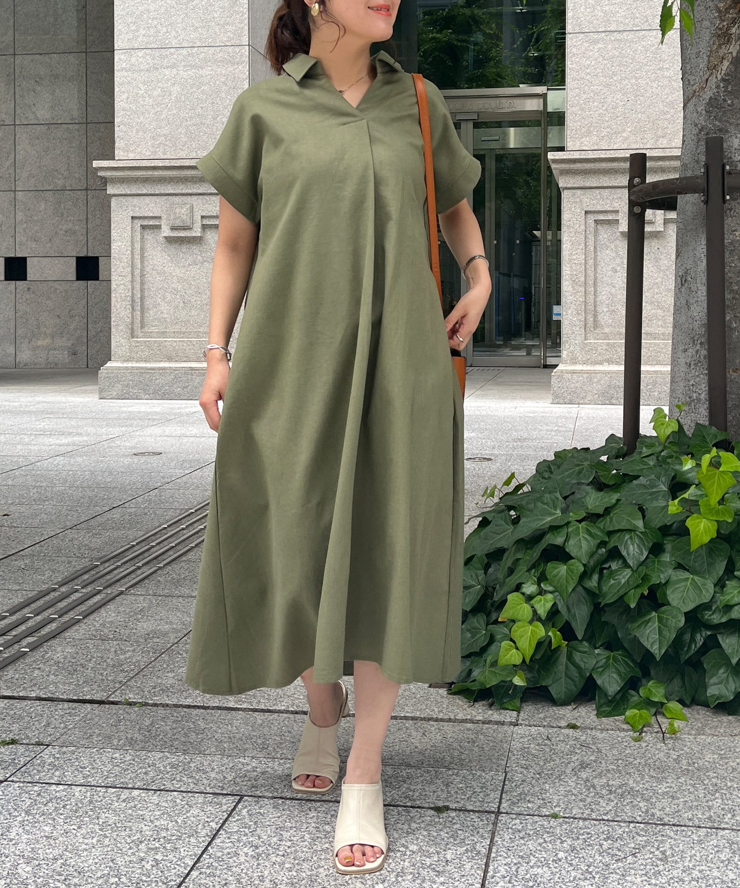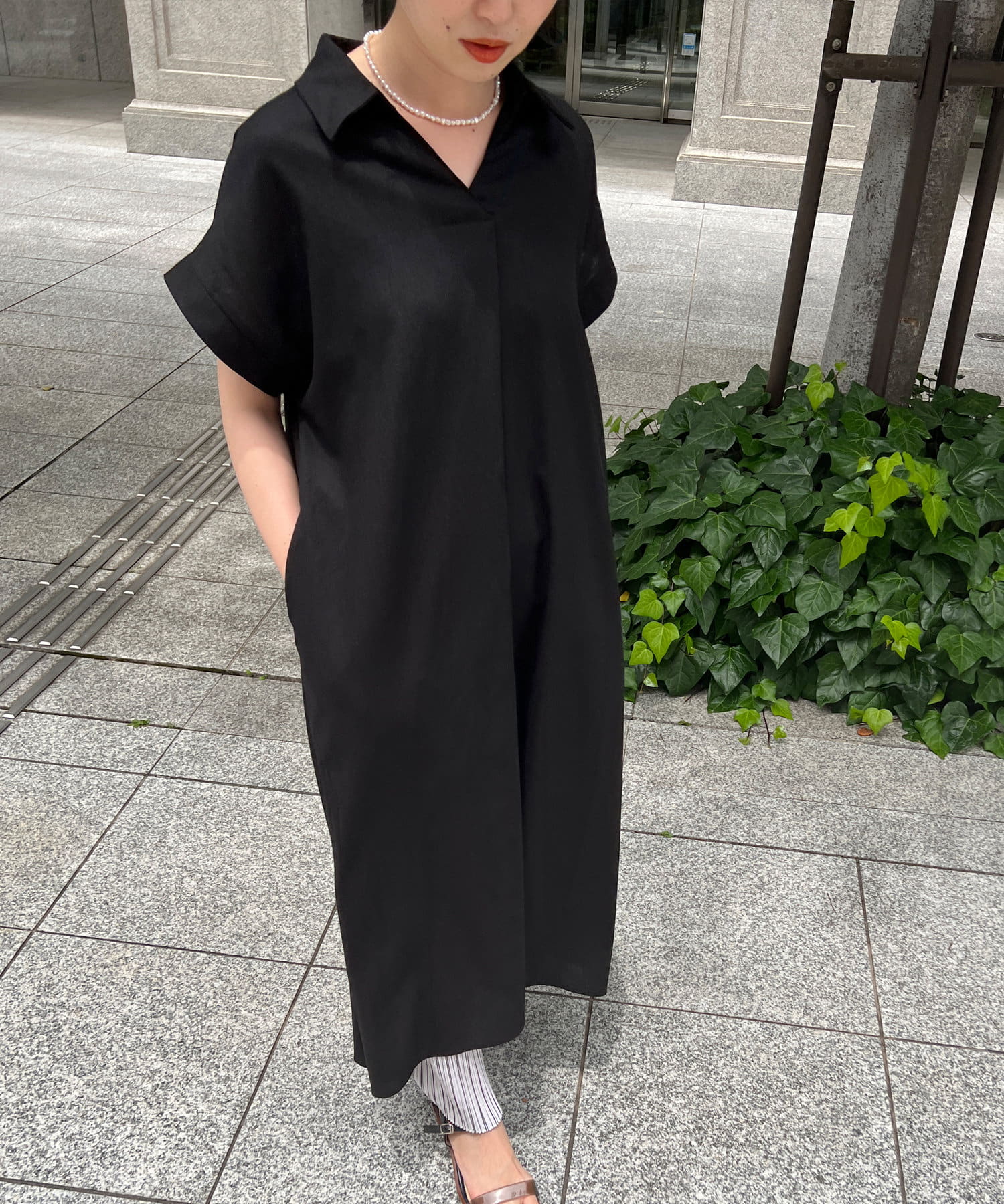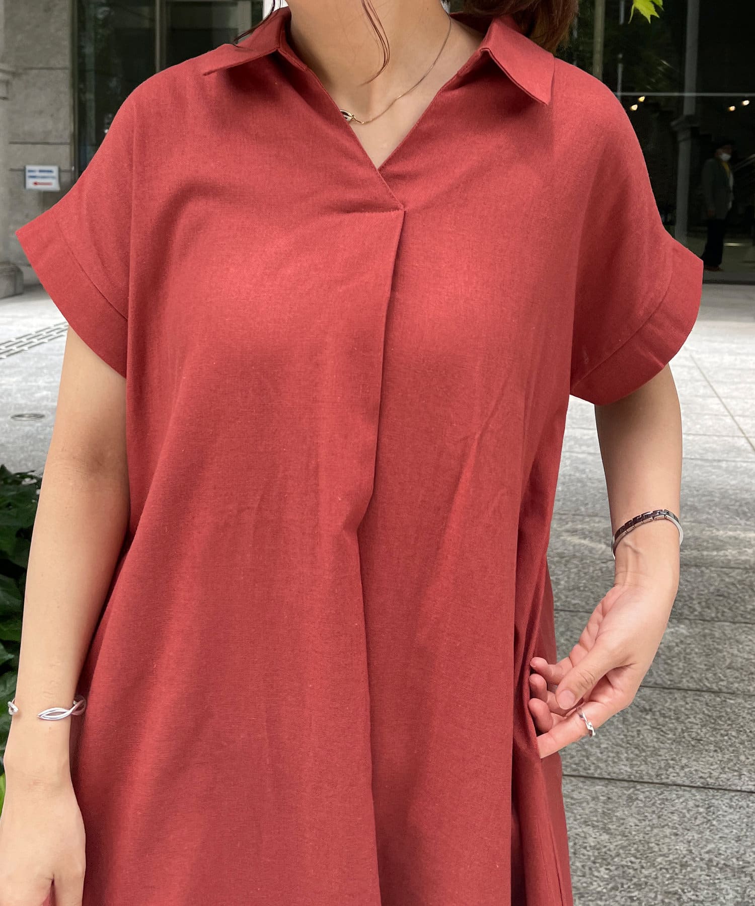 リネンのラフな雰囲気をスタイリッシュに見せてくれるスキッパーシャツワンピース