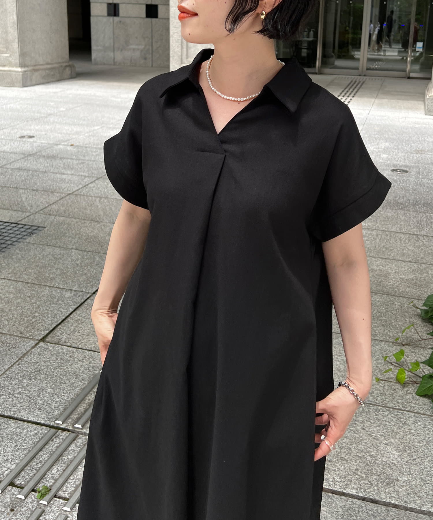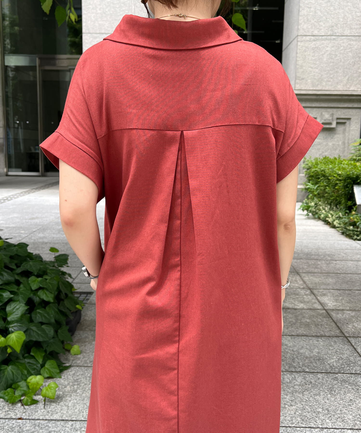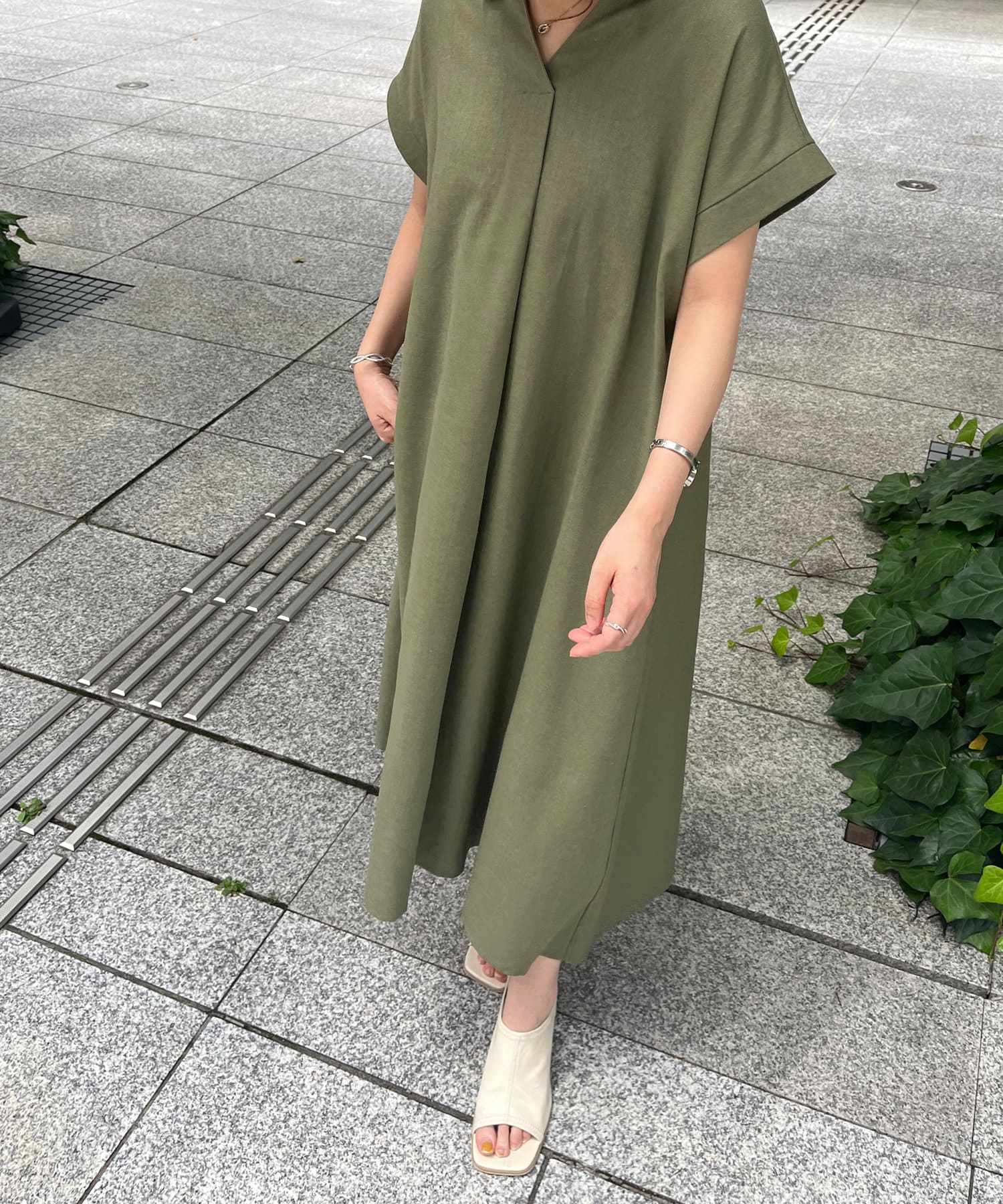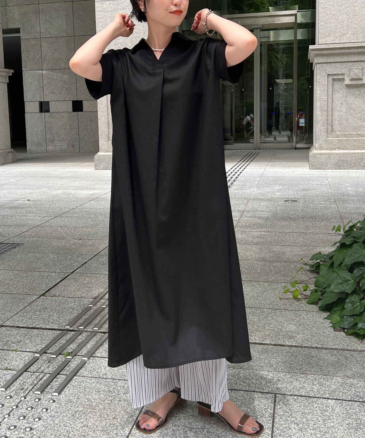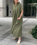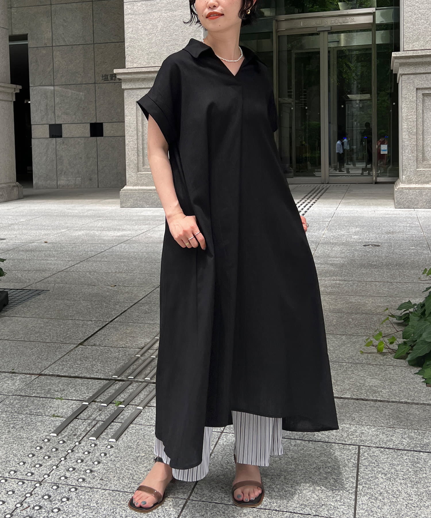 リネンのラフな雰囲気をスタイリッシュに見せてくれるスキッパーシャツワンピース