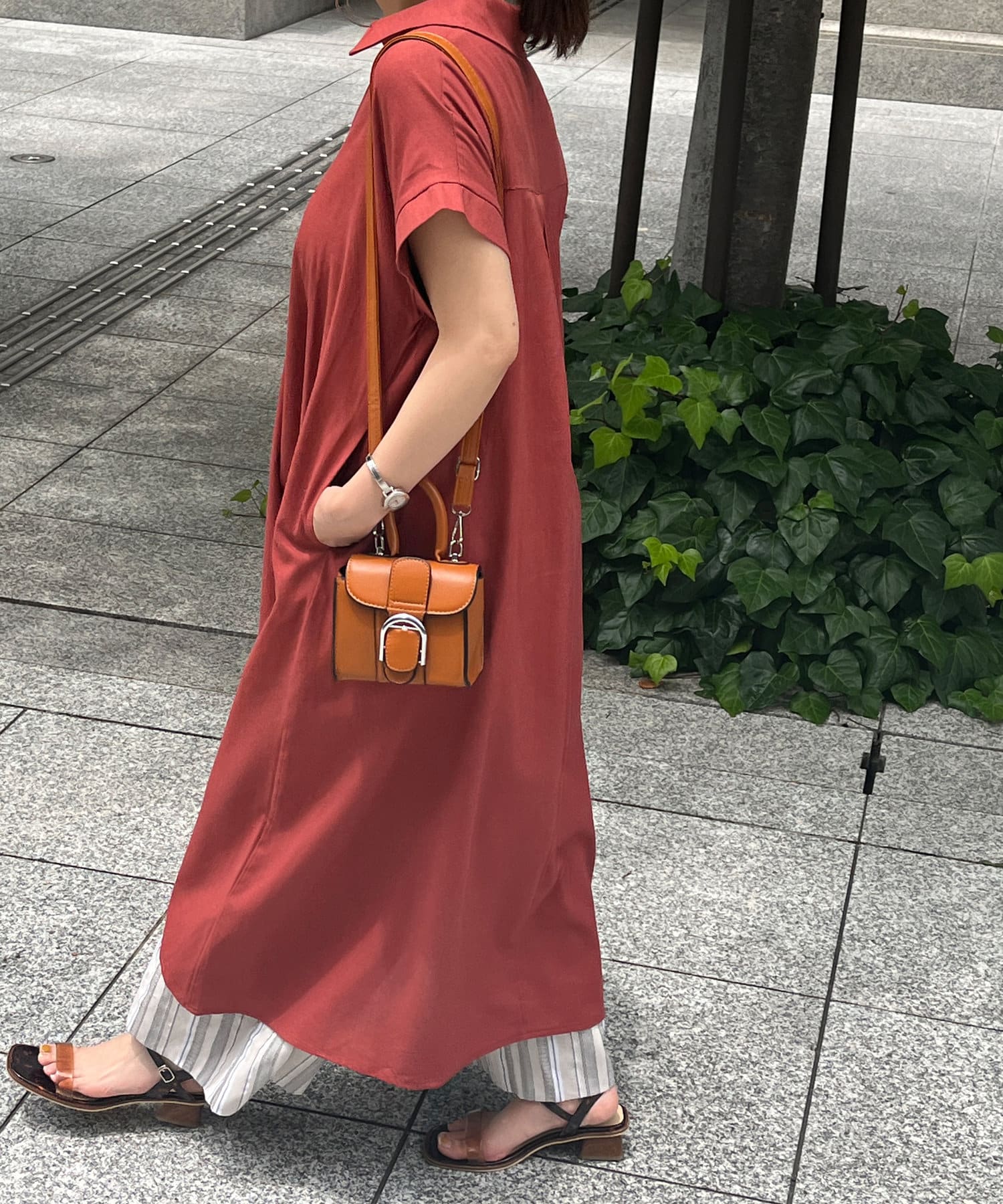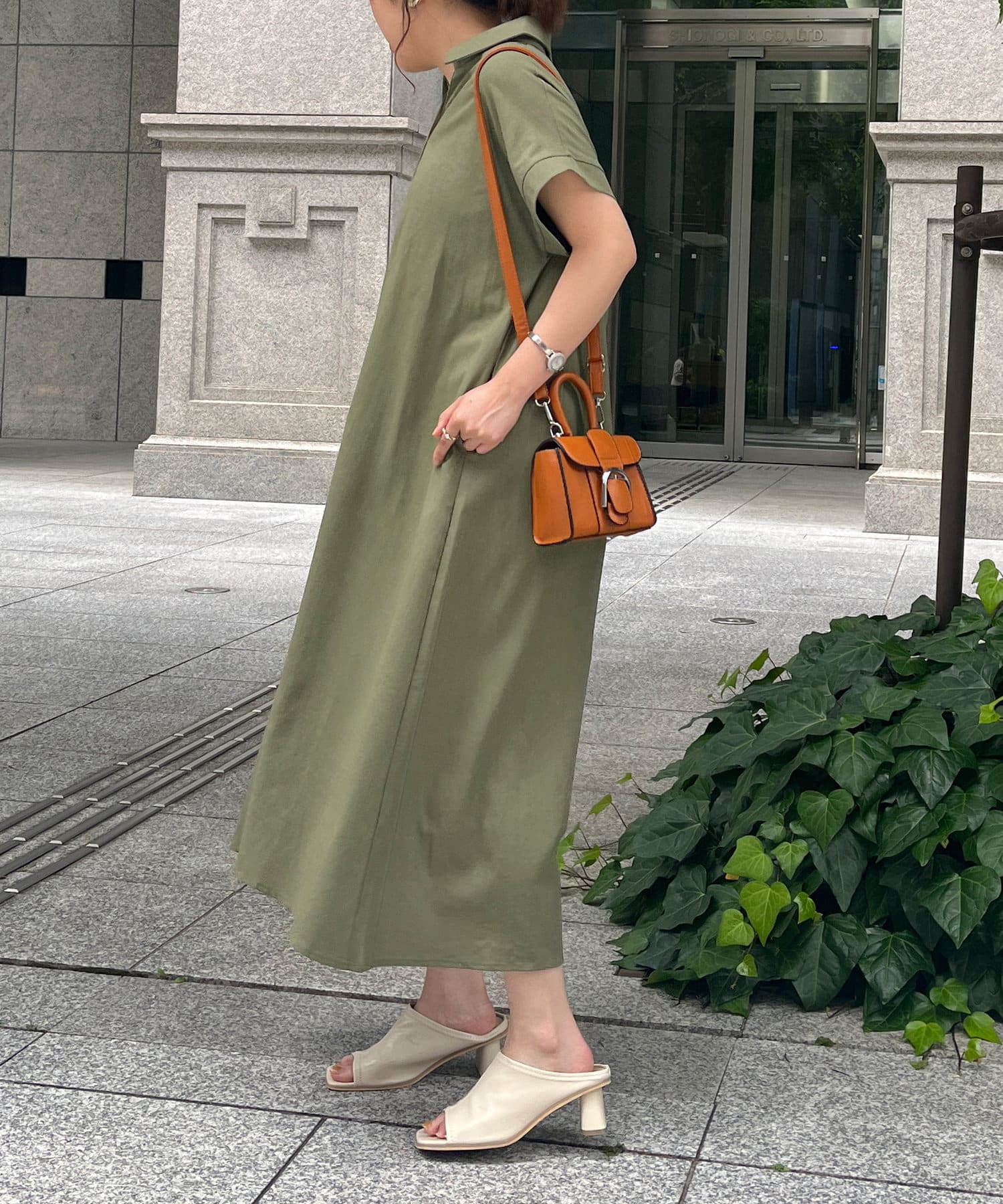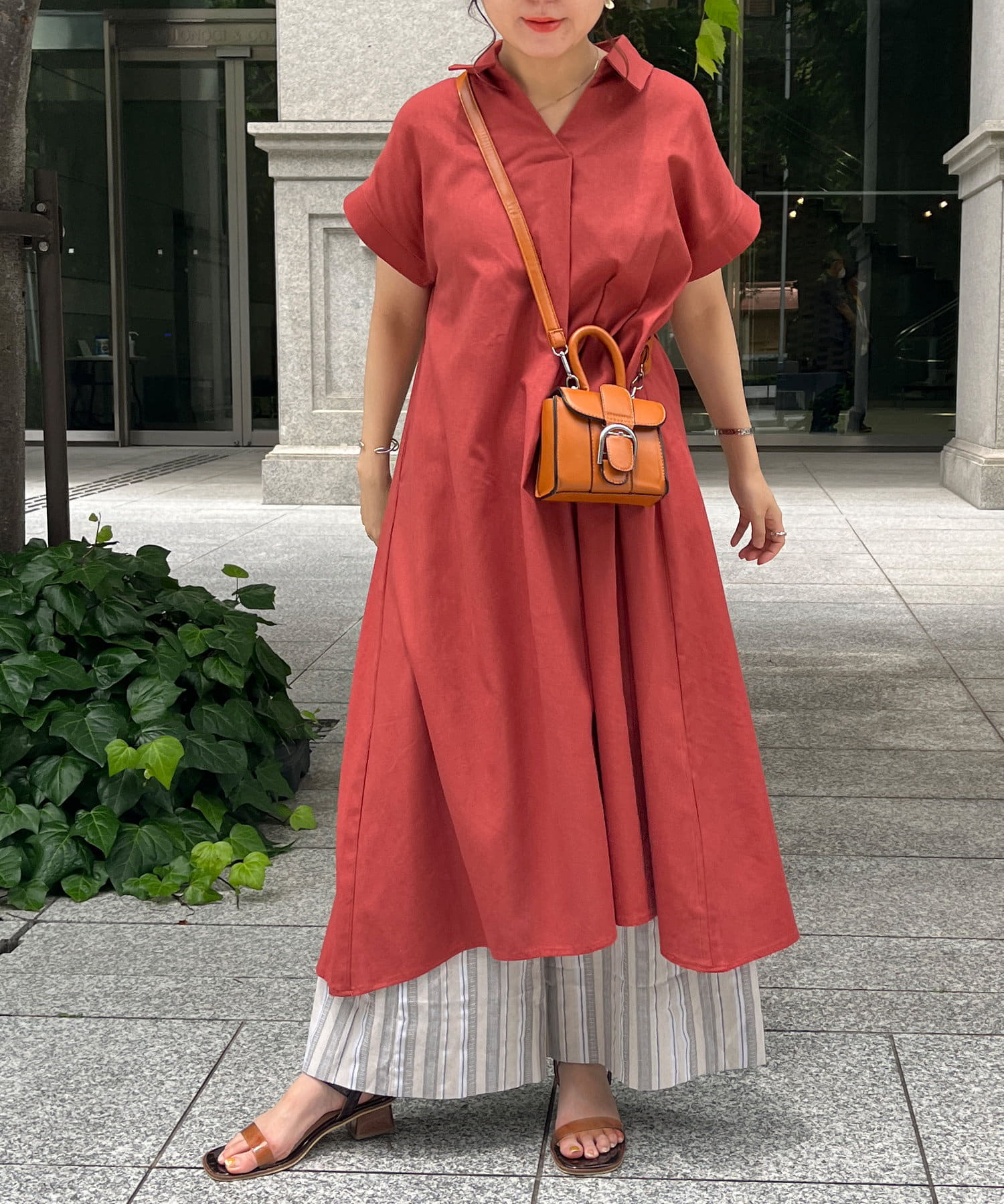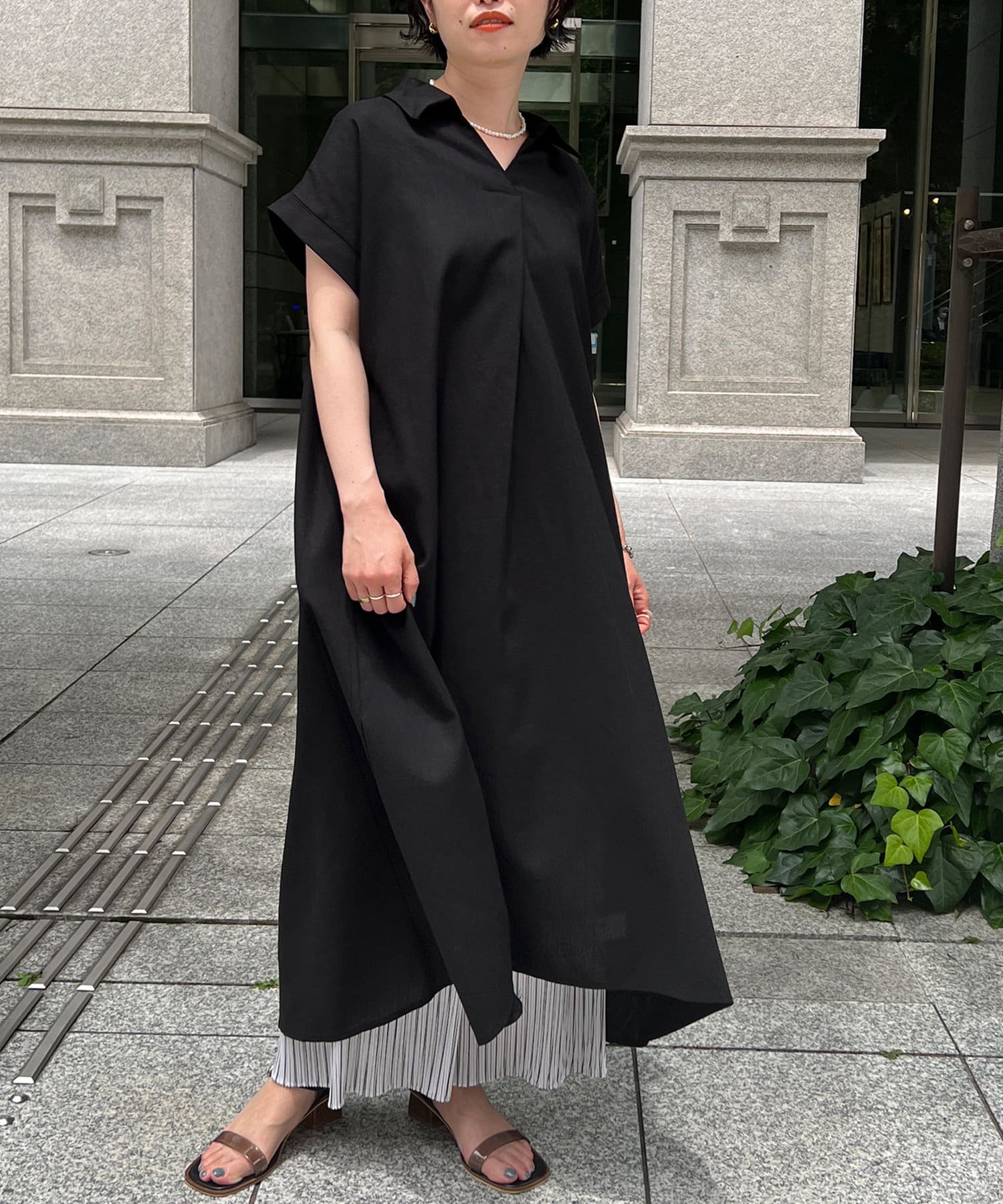 リネンのラフな雰囲気をスタイリッシュに見せてくれるスキッパーシャツワンピース