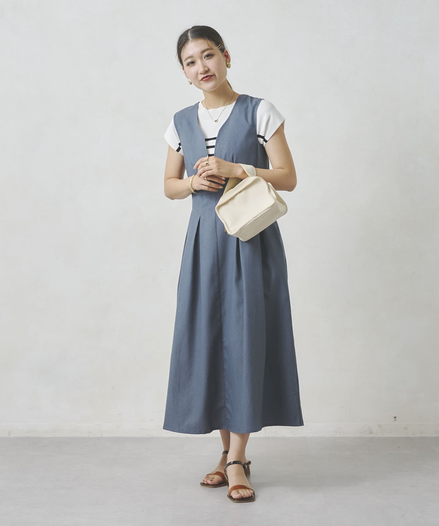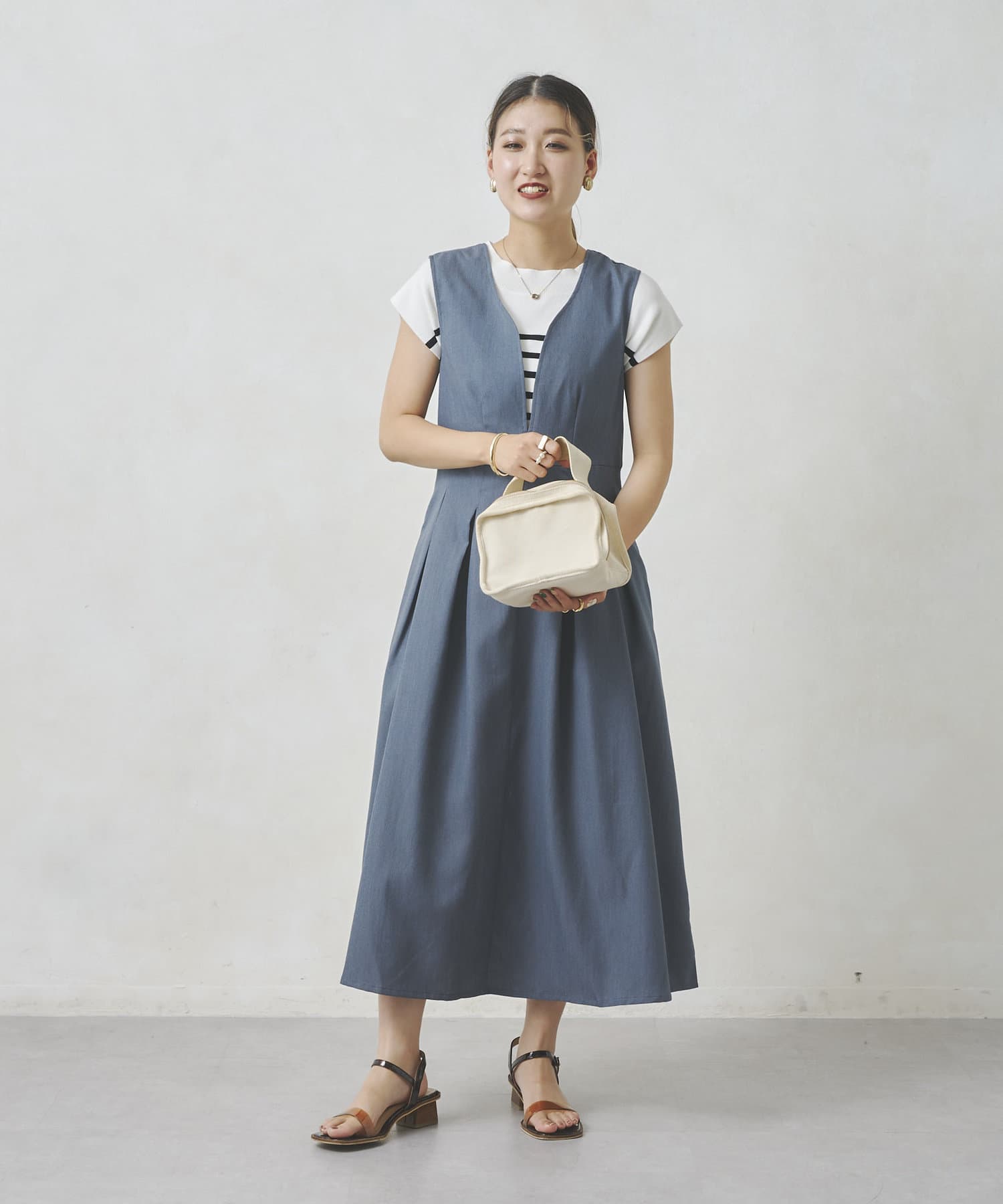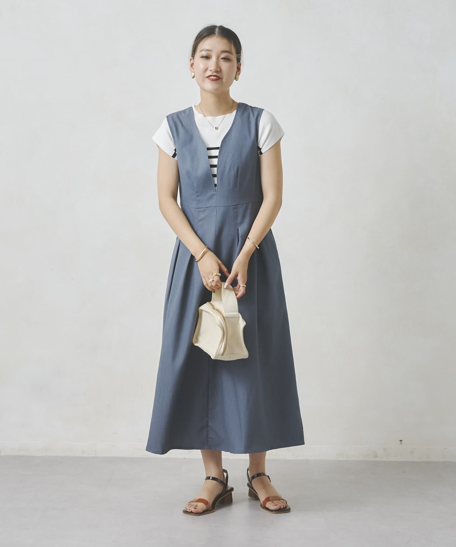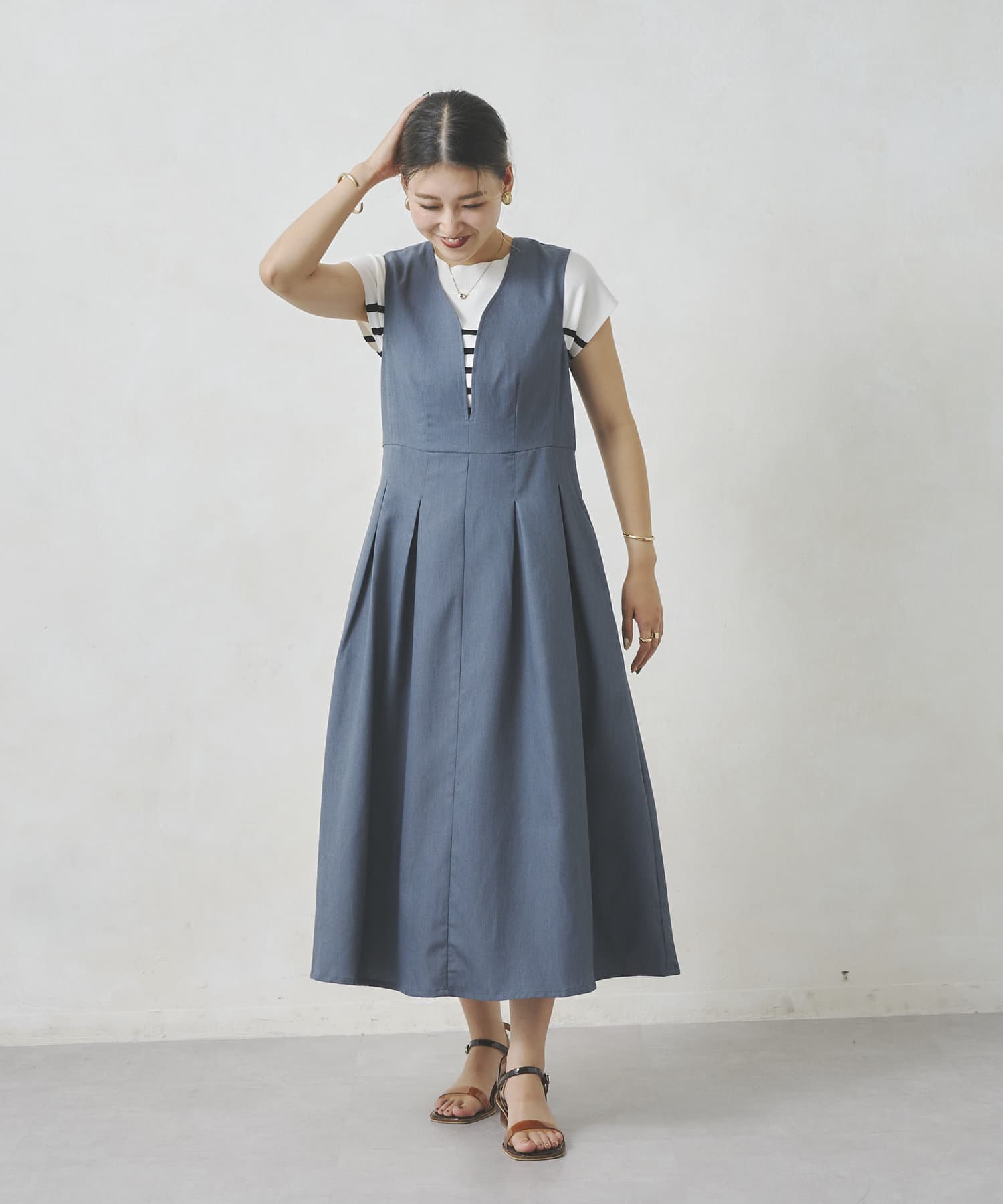 低身長さんも楽しめる ウエストマークできる大人のジャンスカワンピース