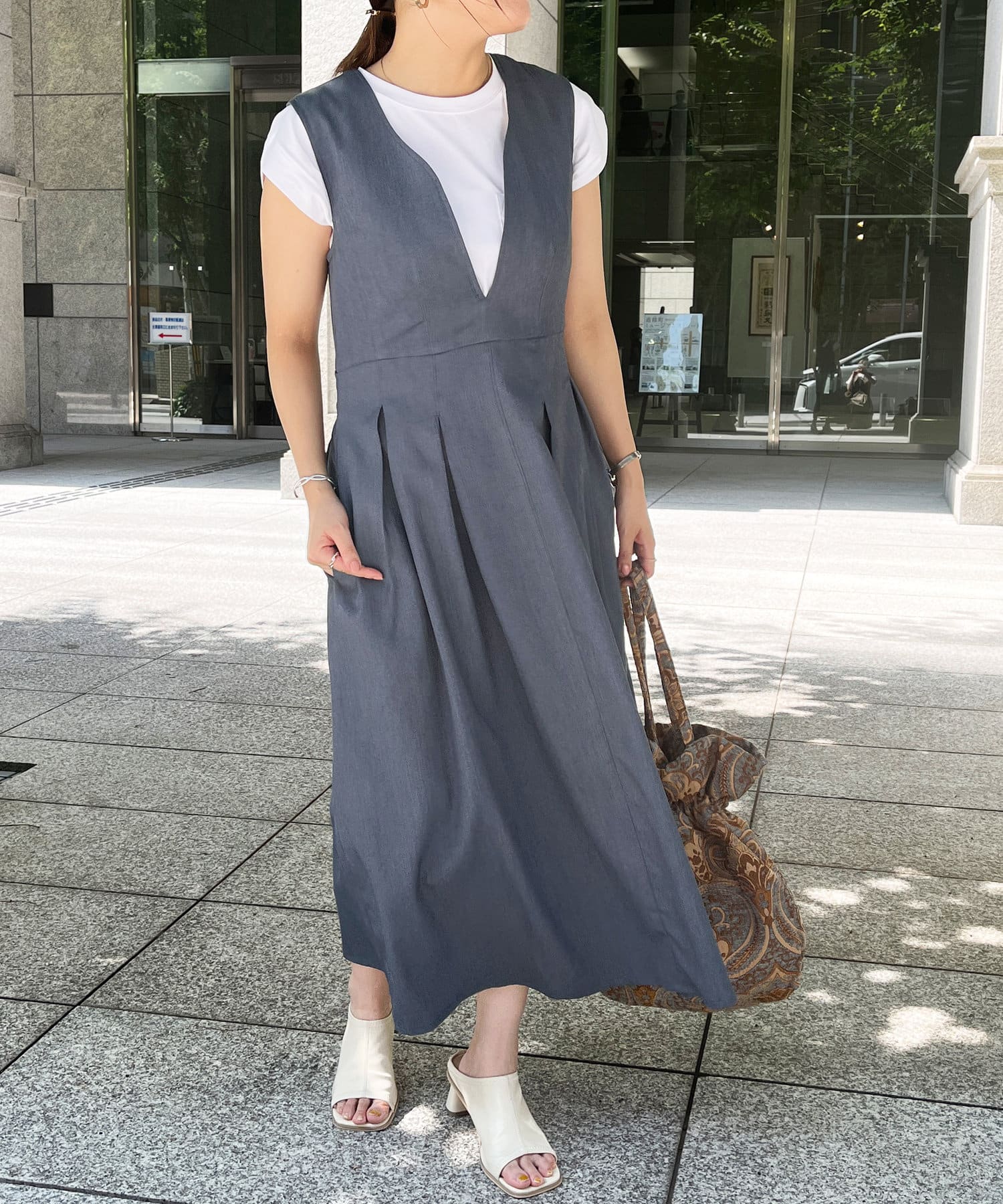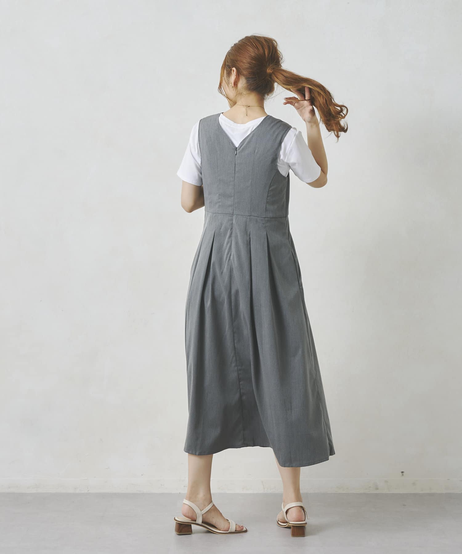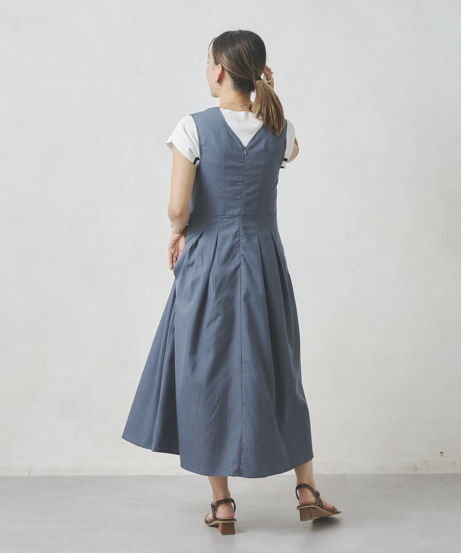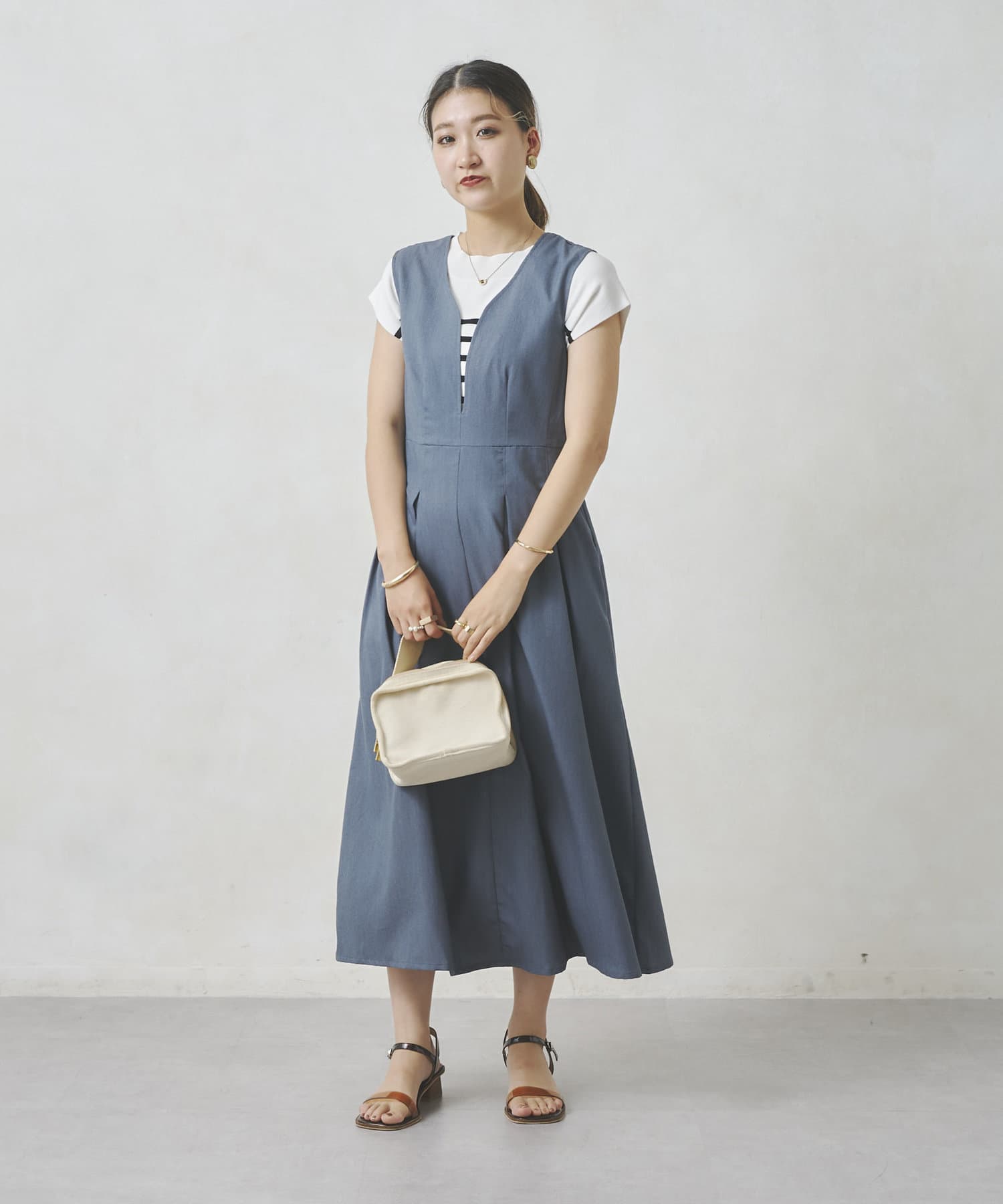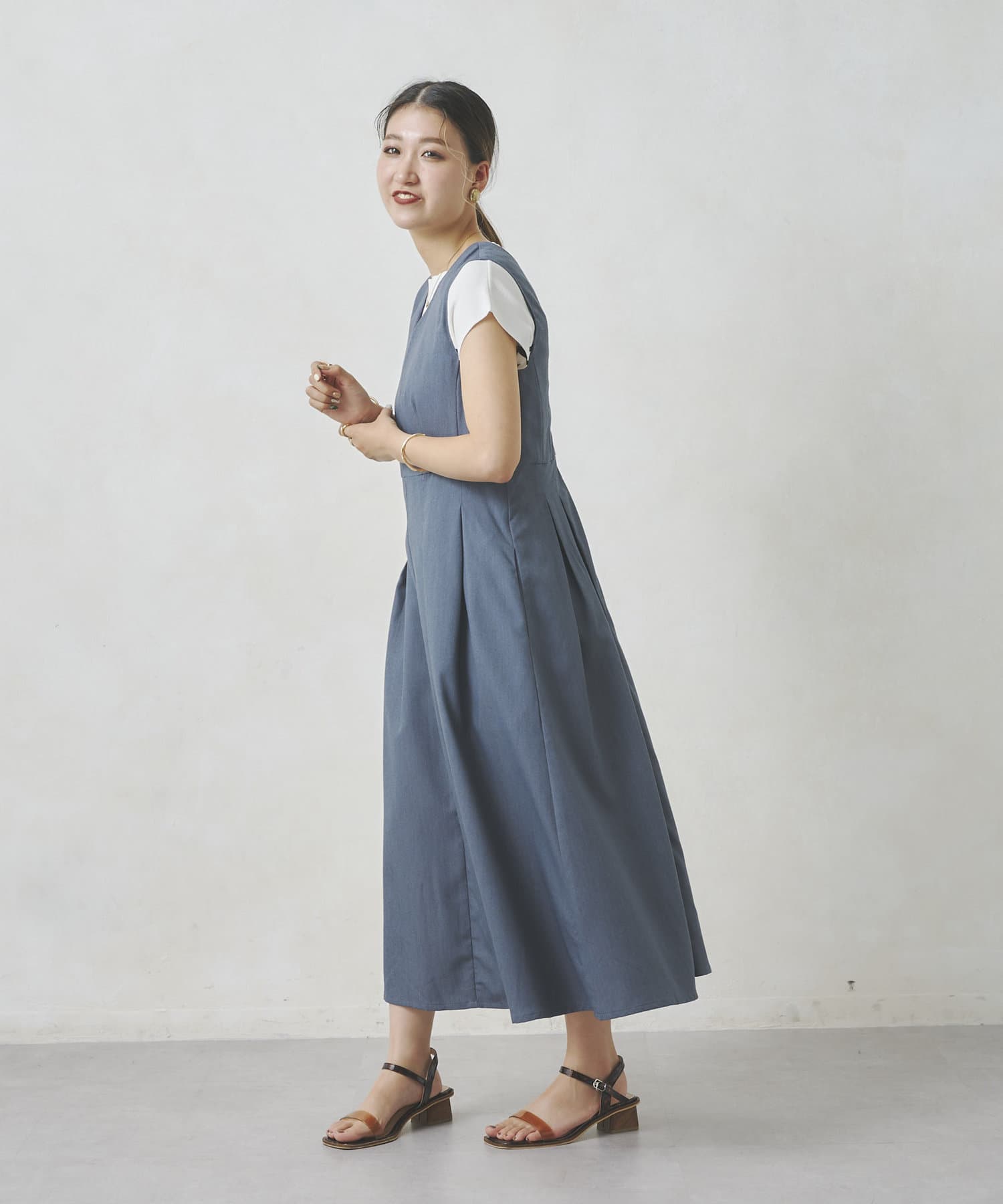 低身長さんも楽しめる ウエストマークできる大人のジャンスカワンピース