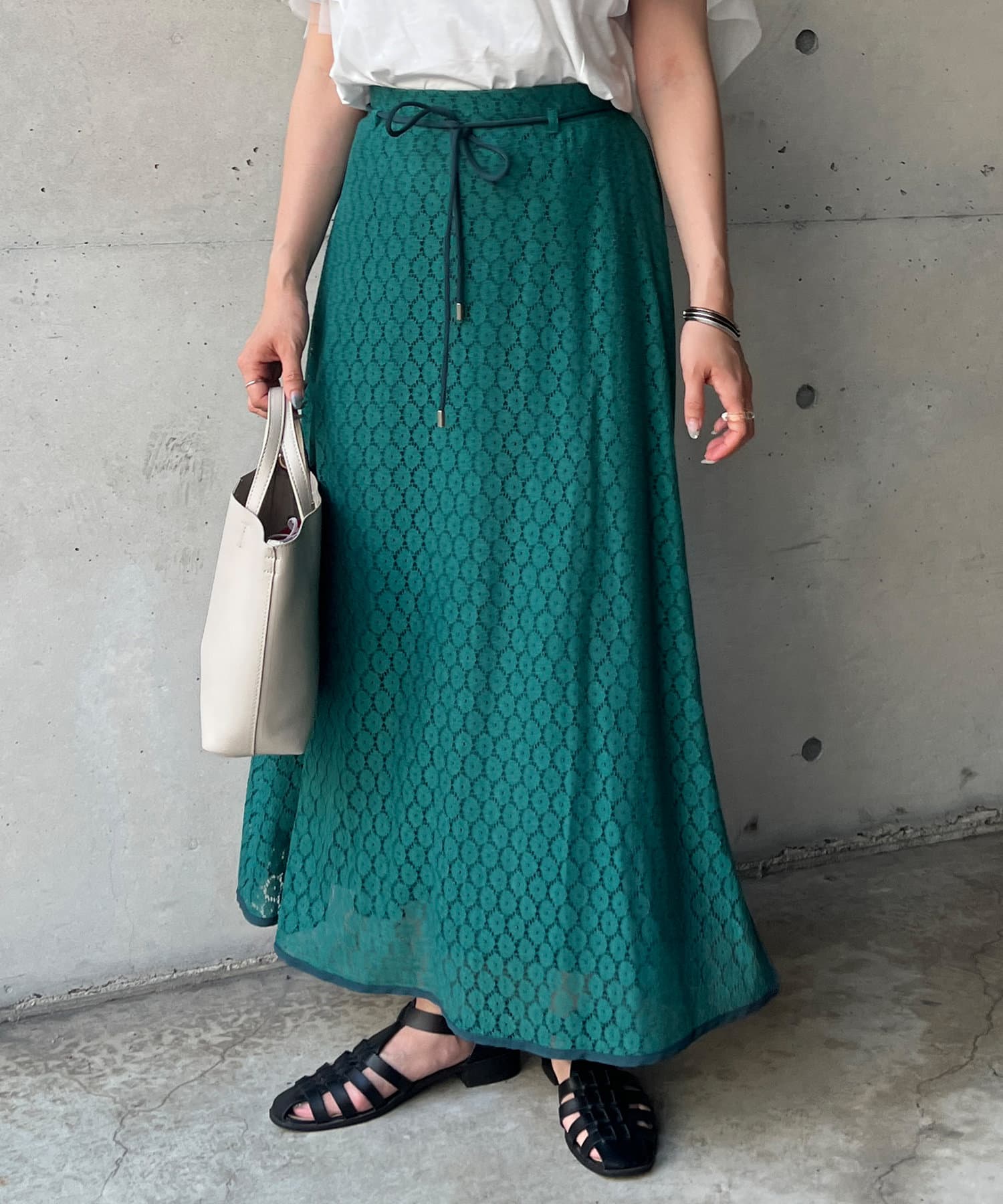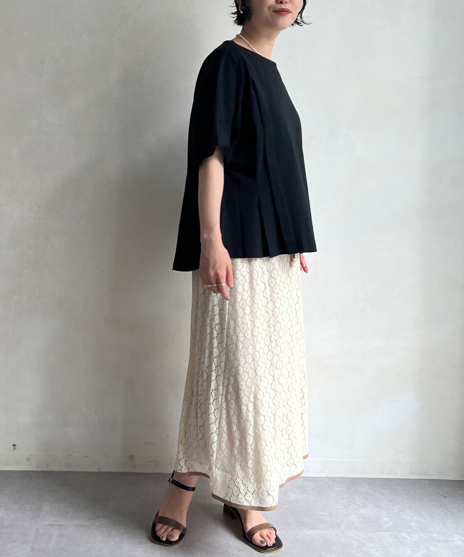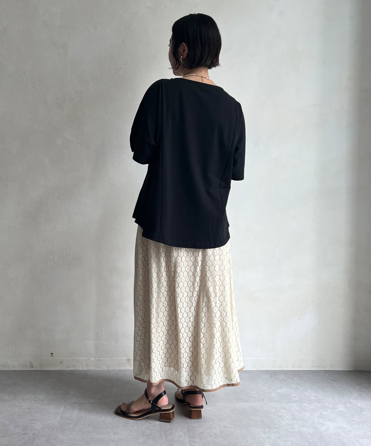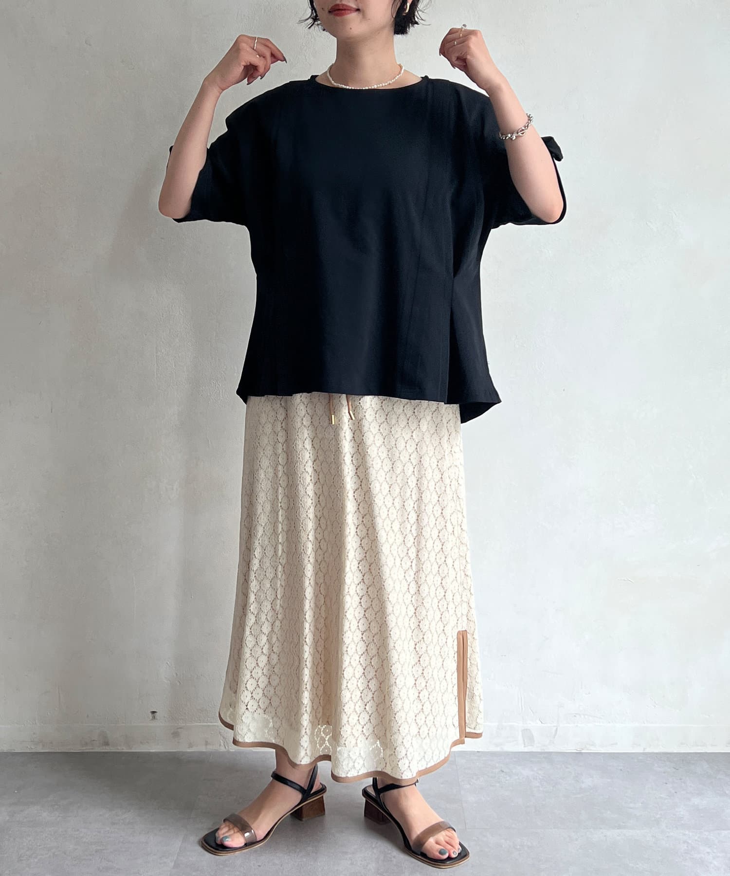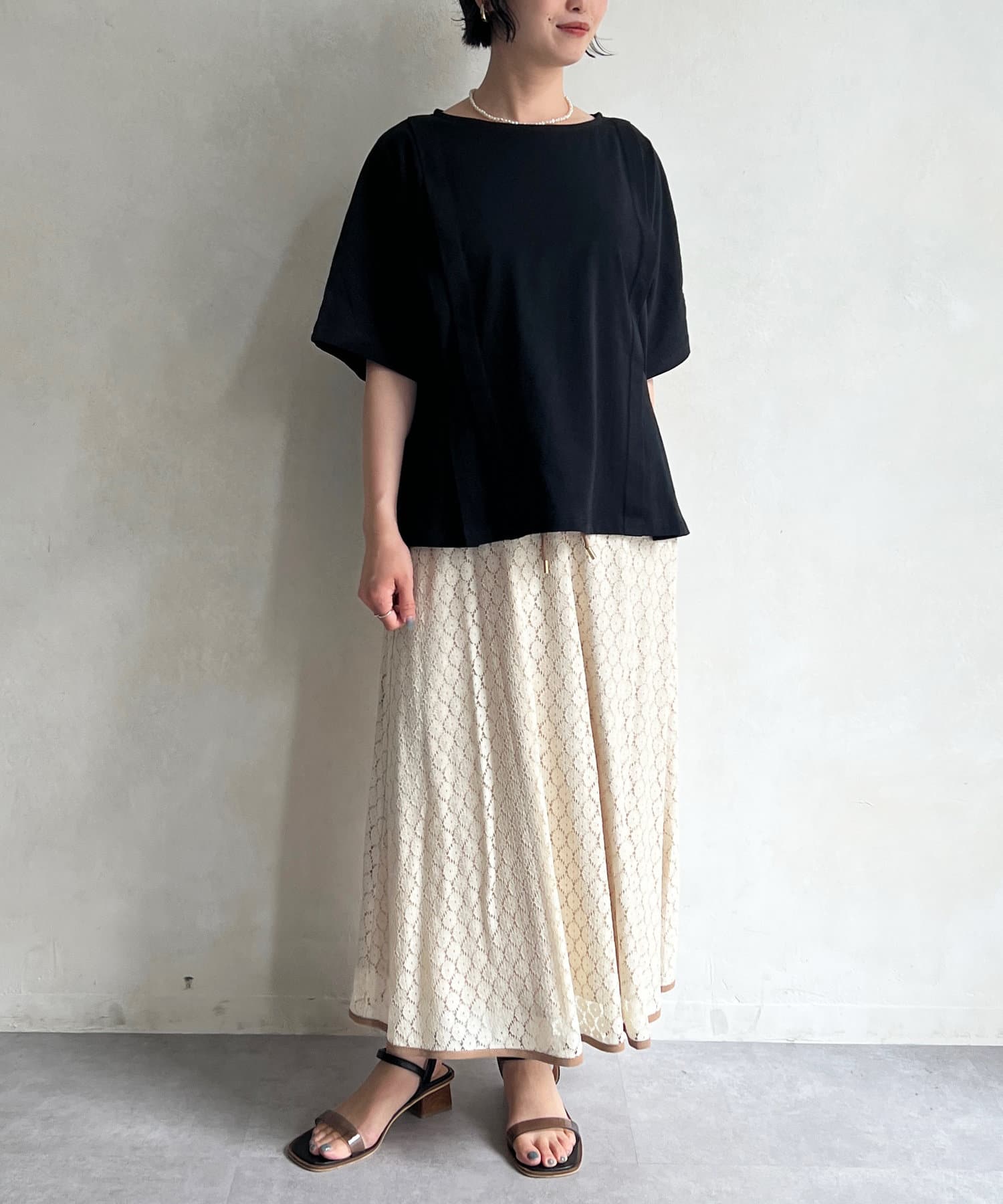 ・総レースなのでTシャツ合わせ、カジュアルダウンさせるスタイリングもおすすめです。