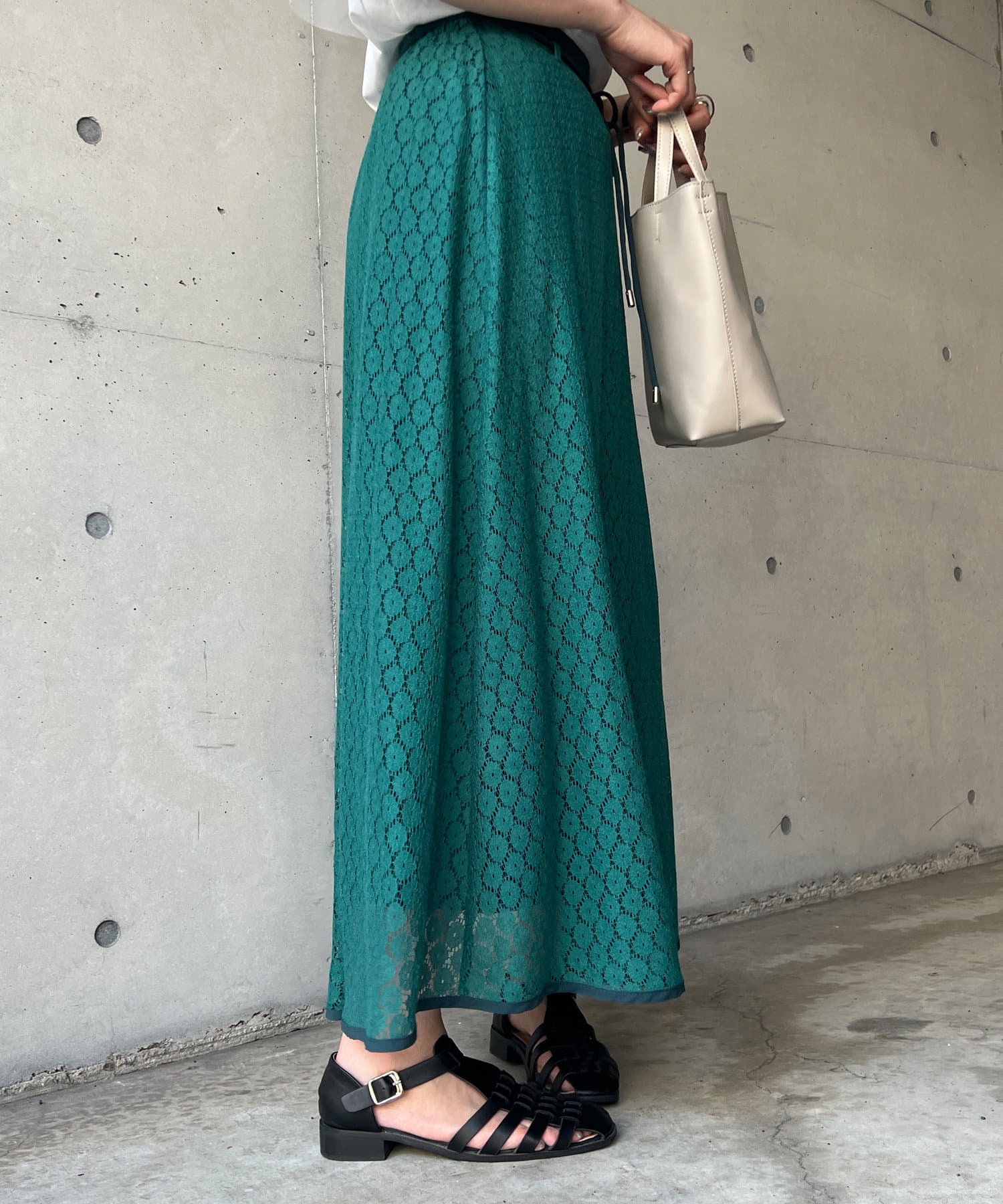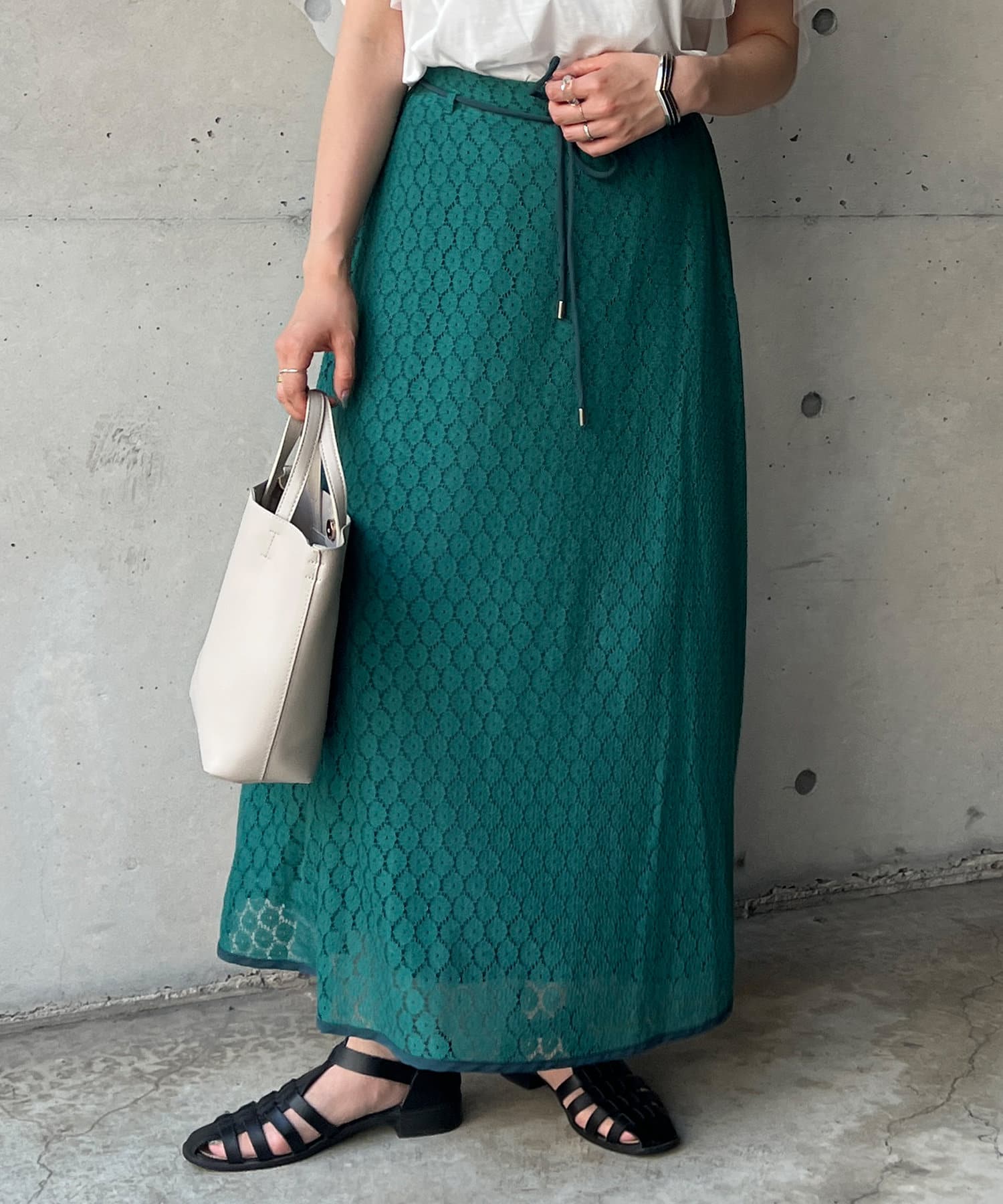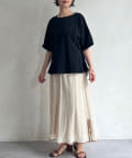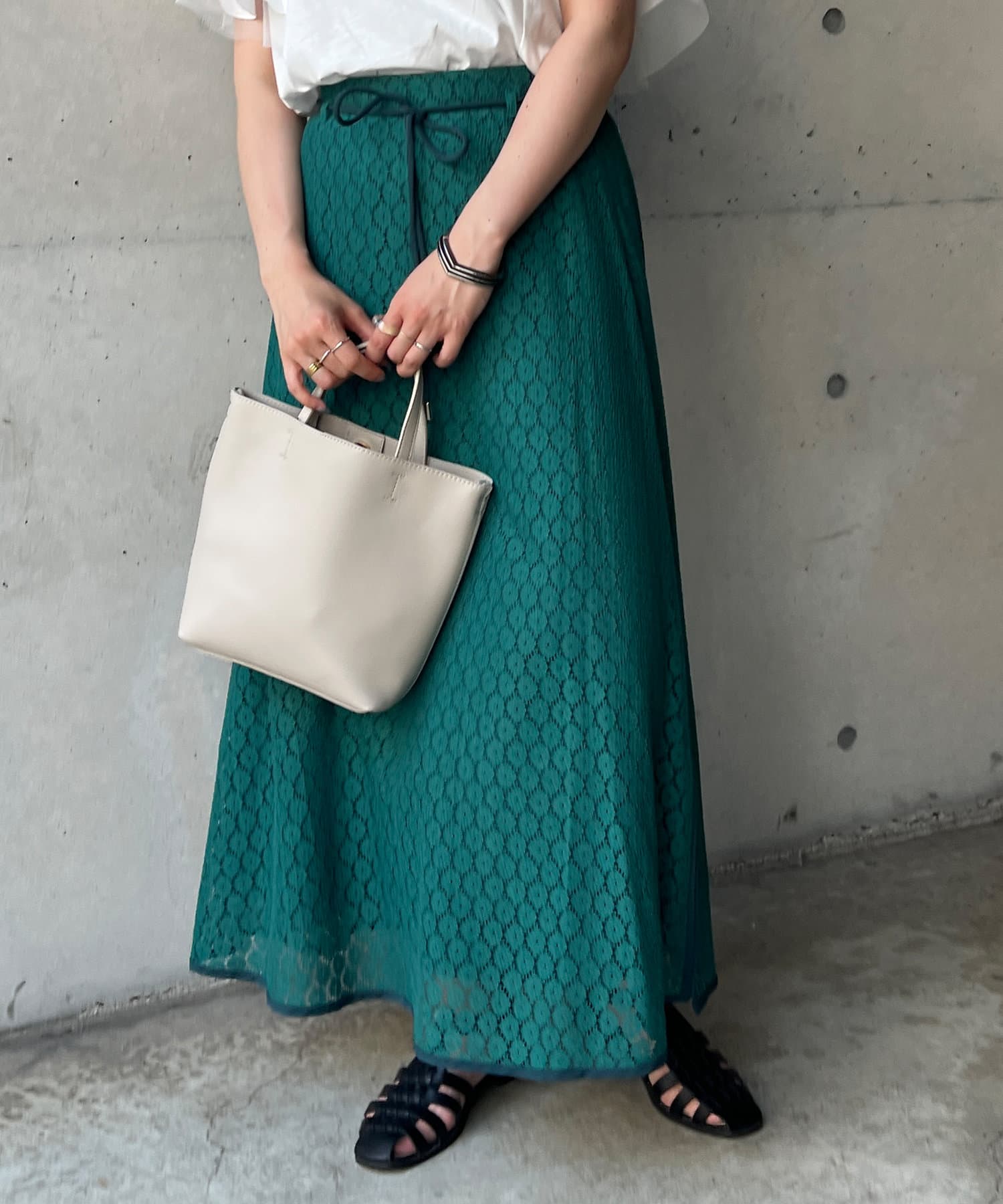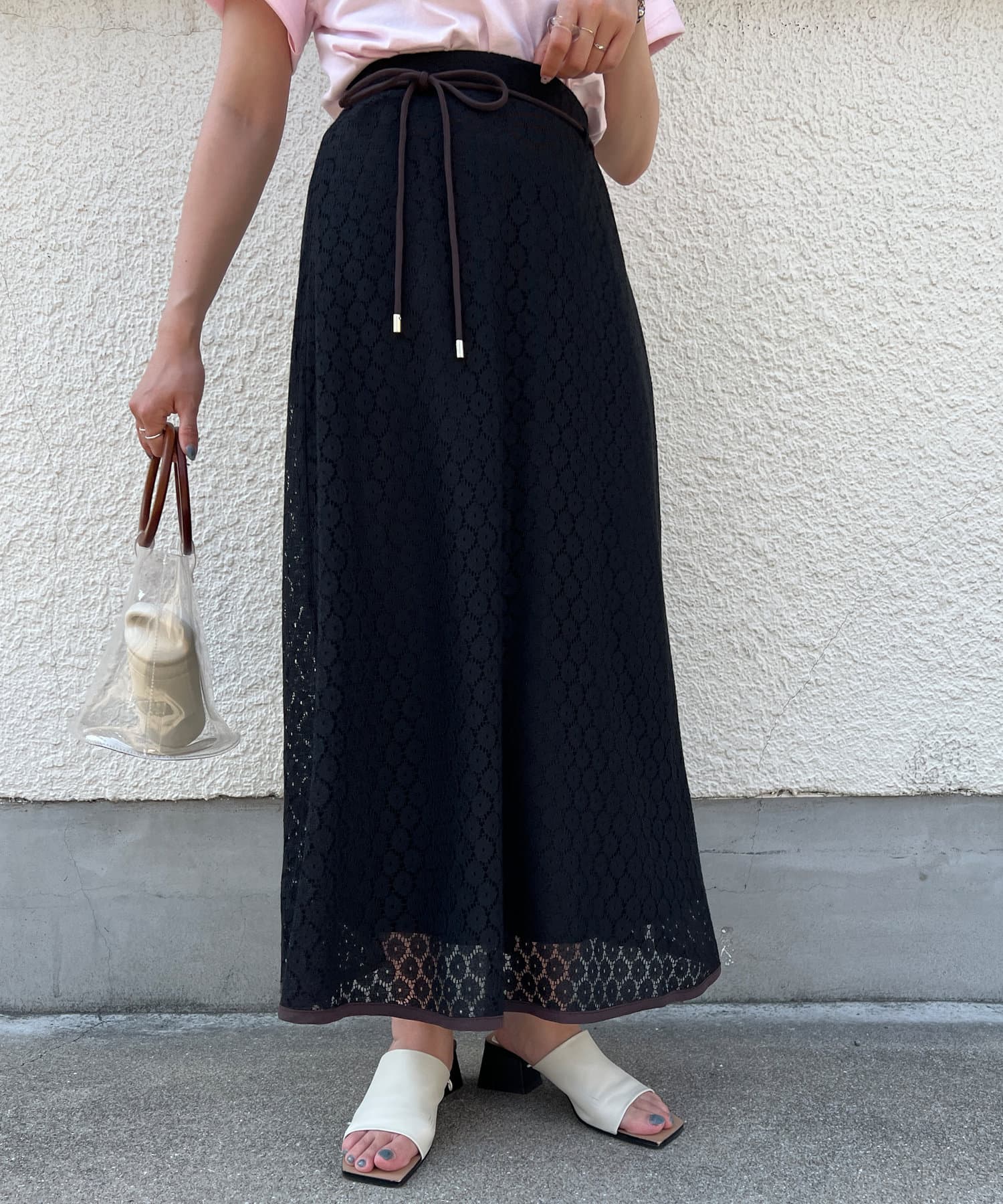 ・総レースなのでTシャツ合わせ、カジュアルダウンさせるスタイリングもおすすめです。