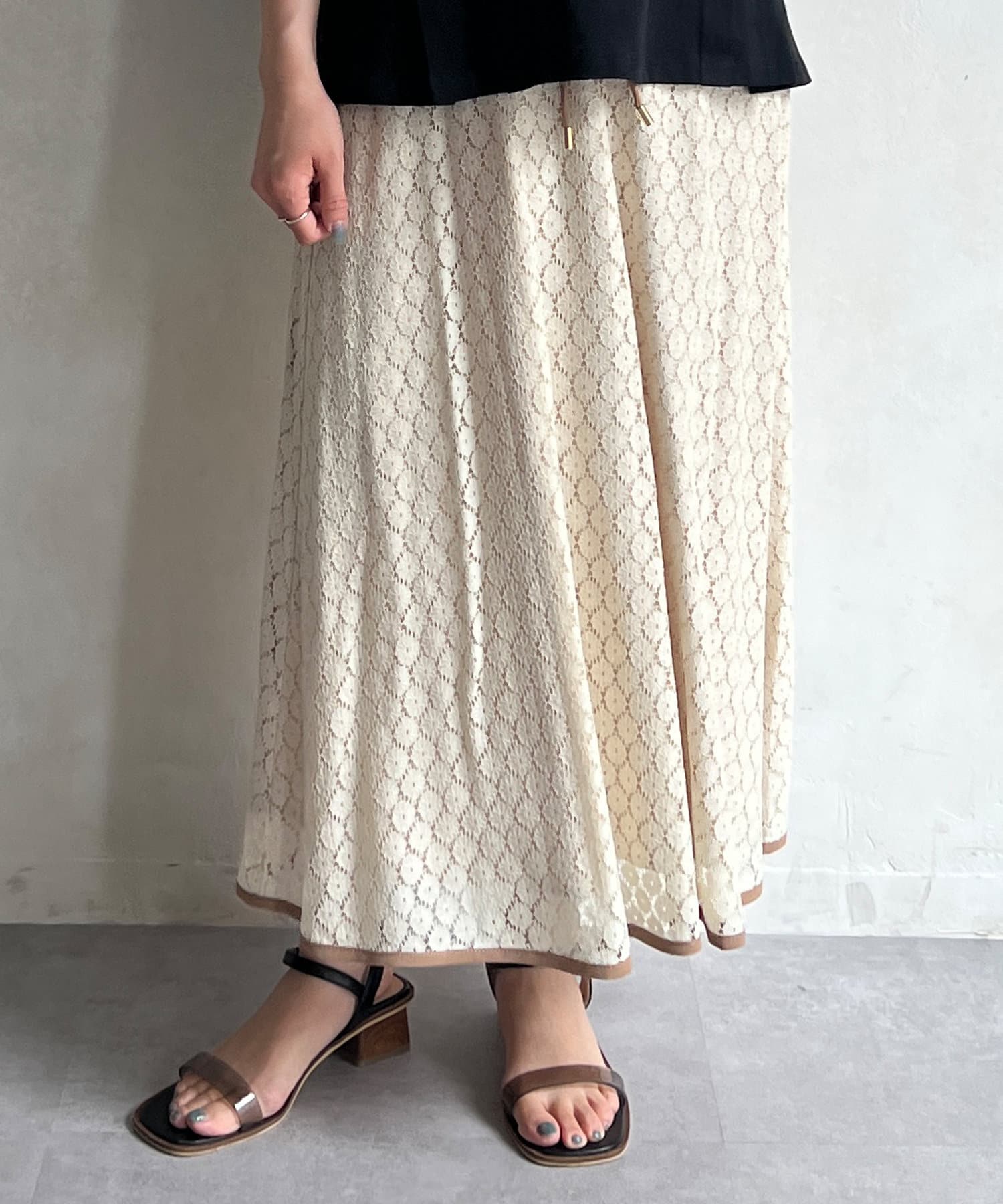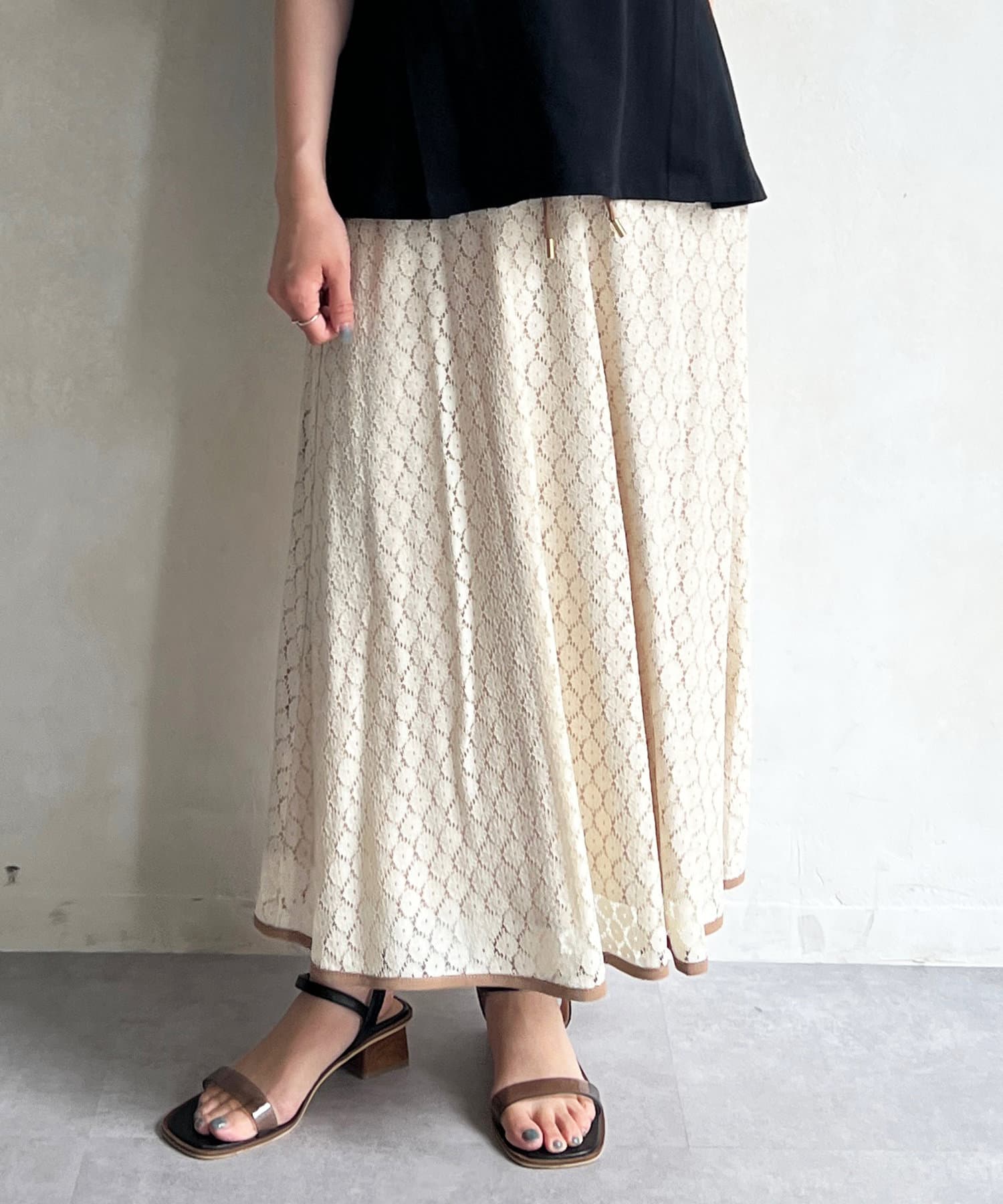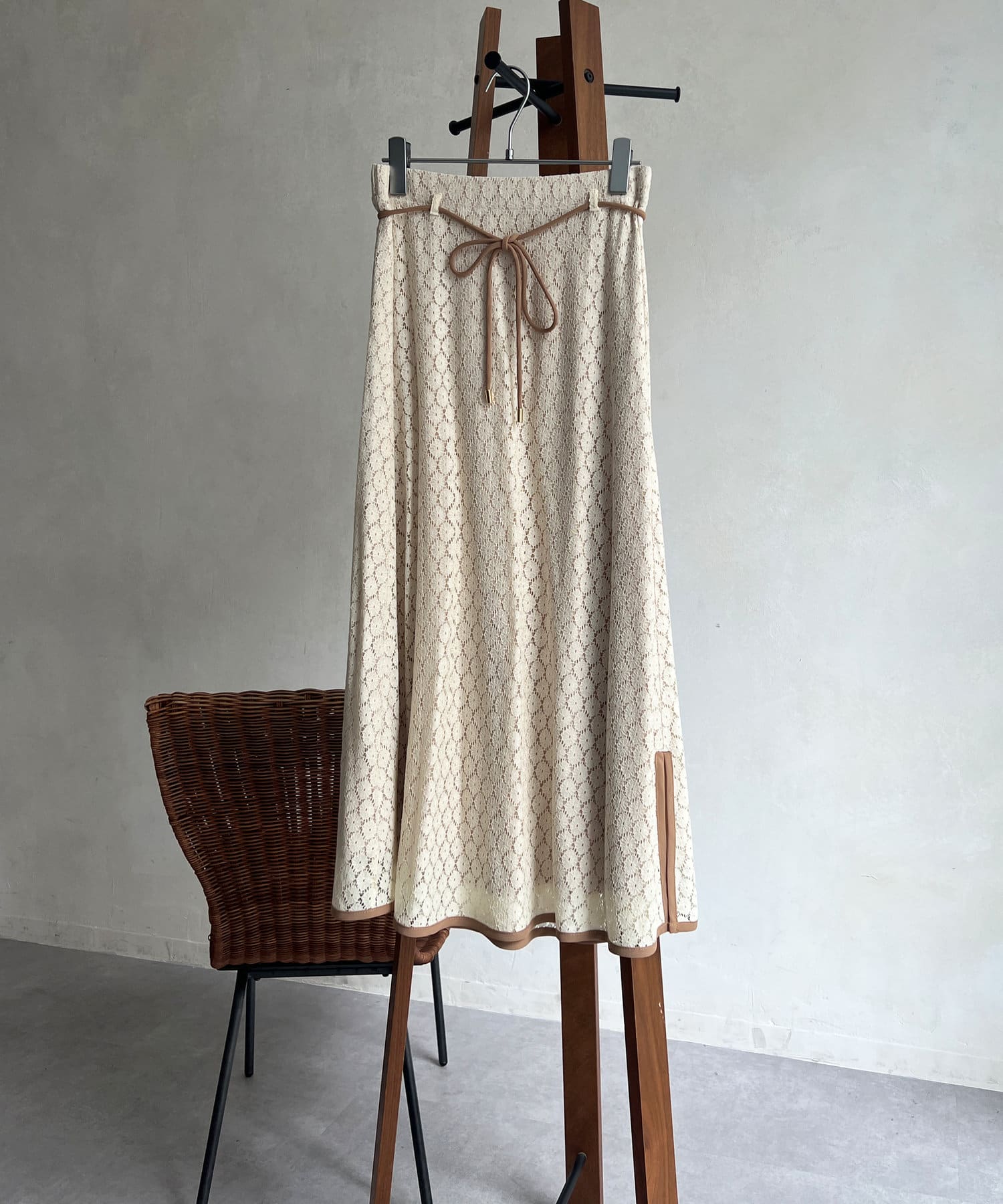 甘すぎないデザイン!!パイピングが施された上品レーススカート