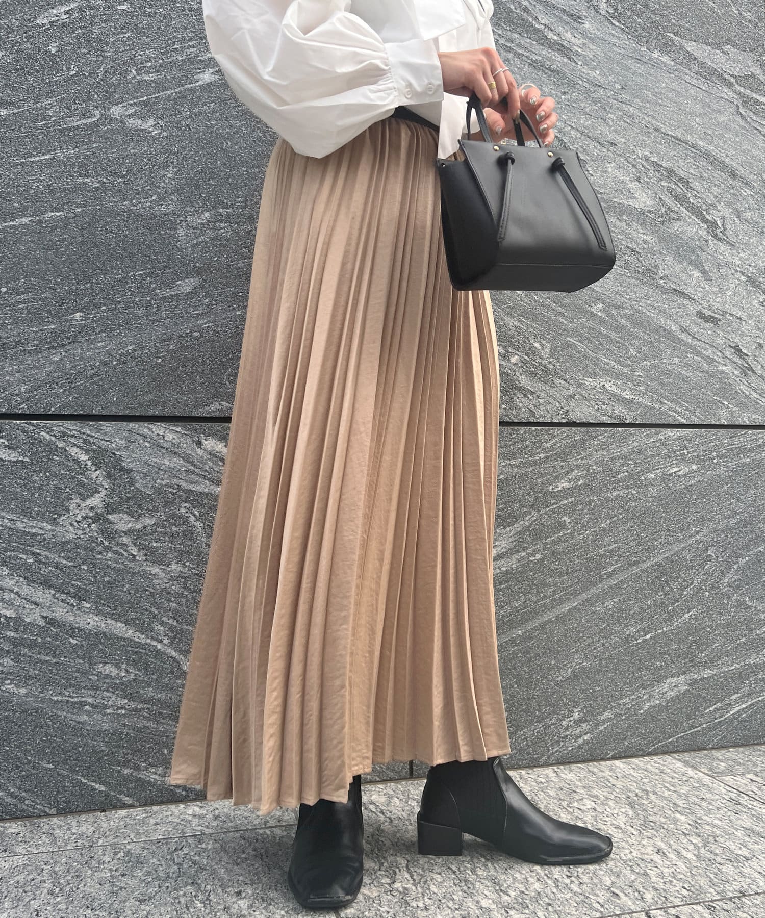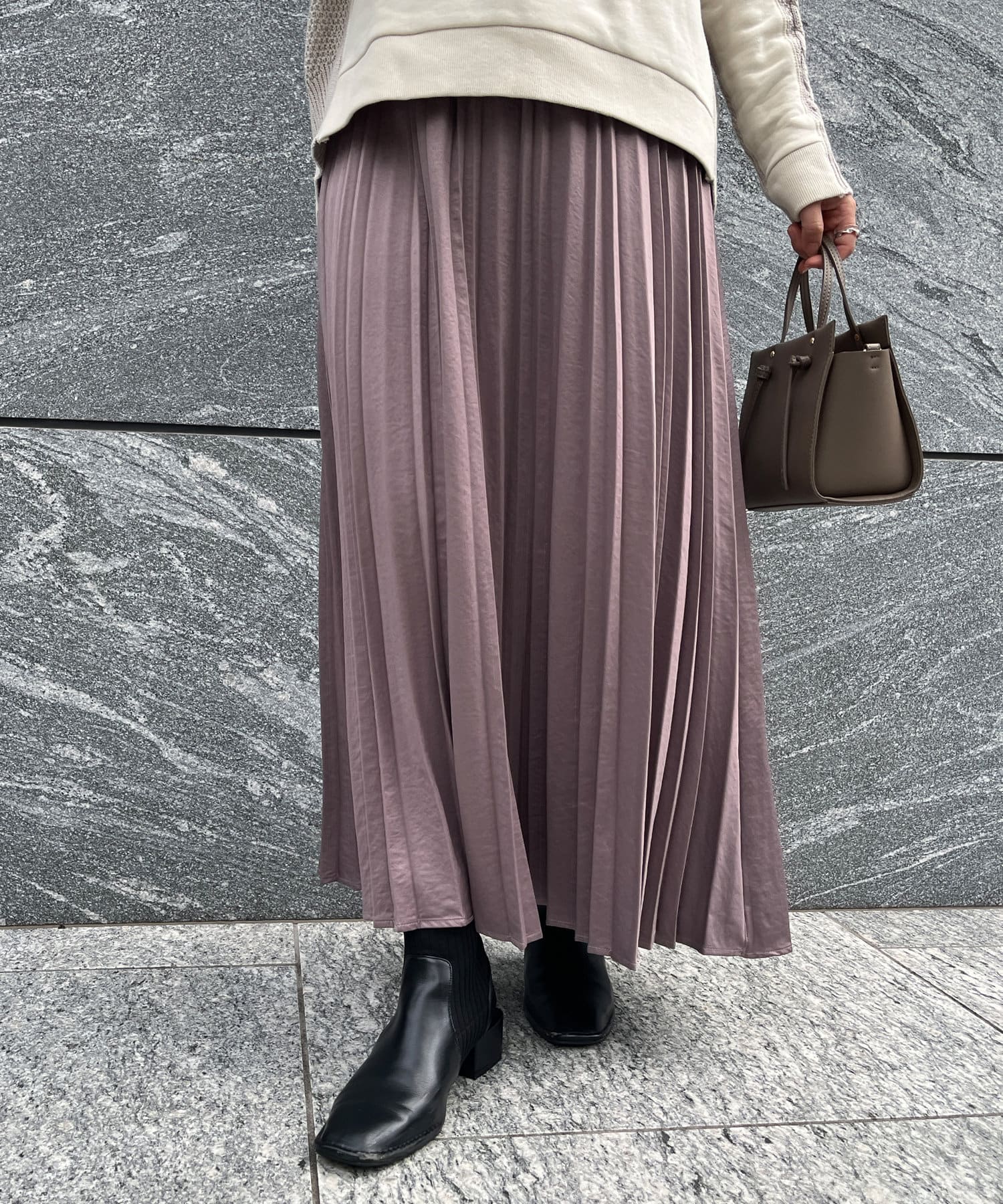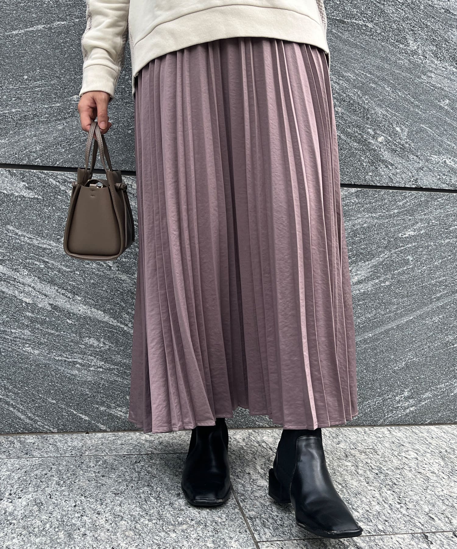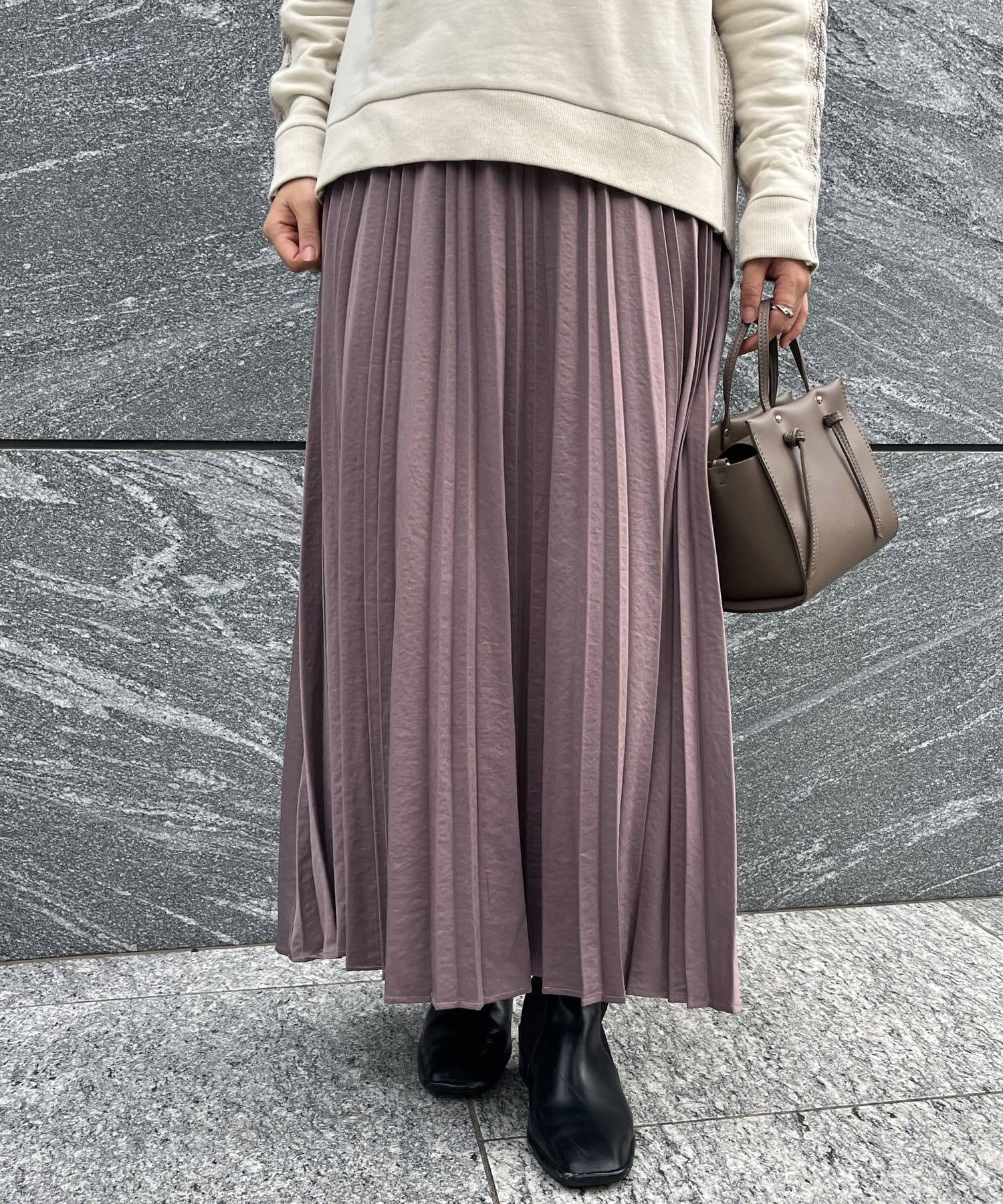 程よい光沢感が上品見えが叶うオトナプリーツスカート