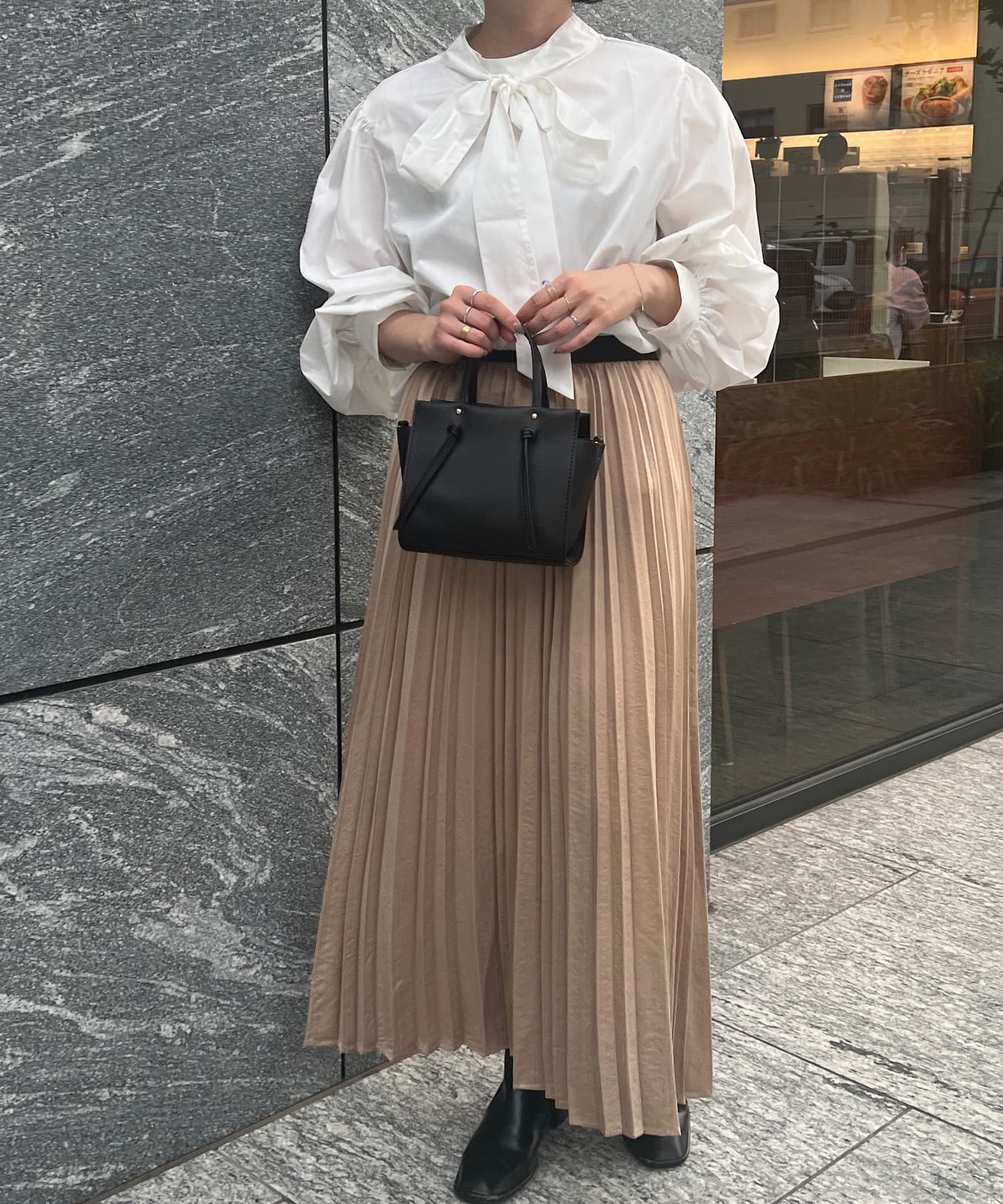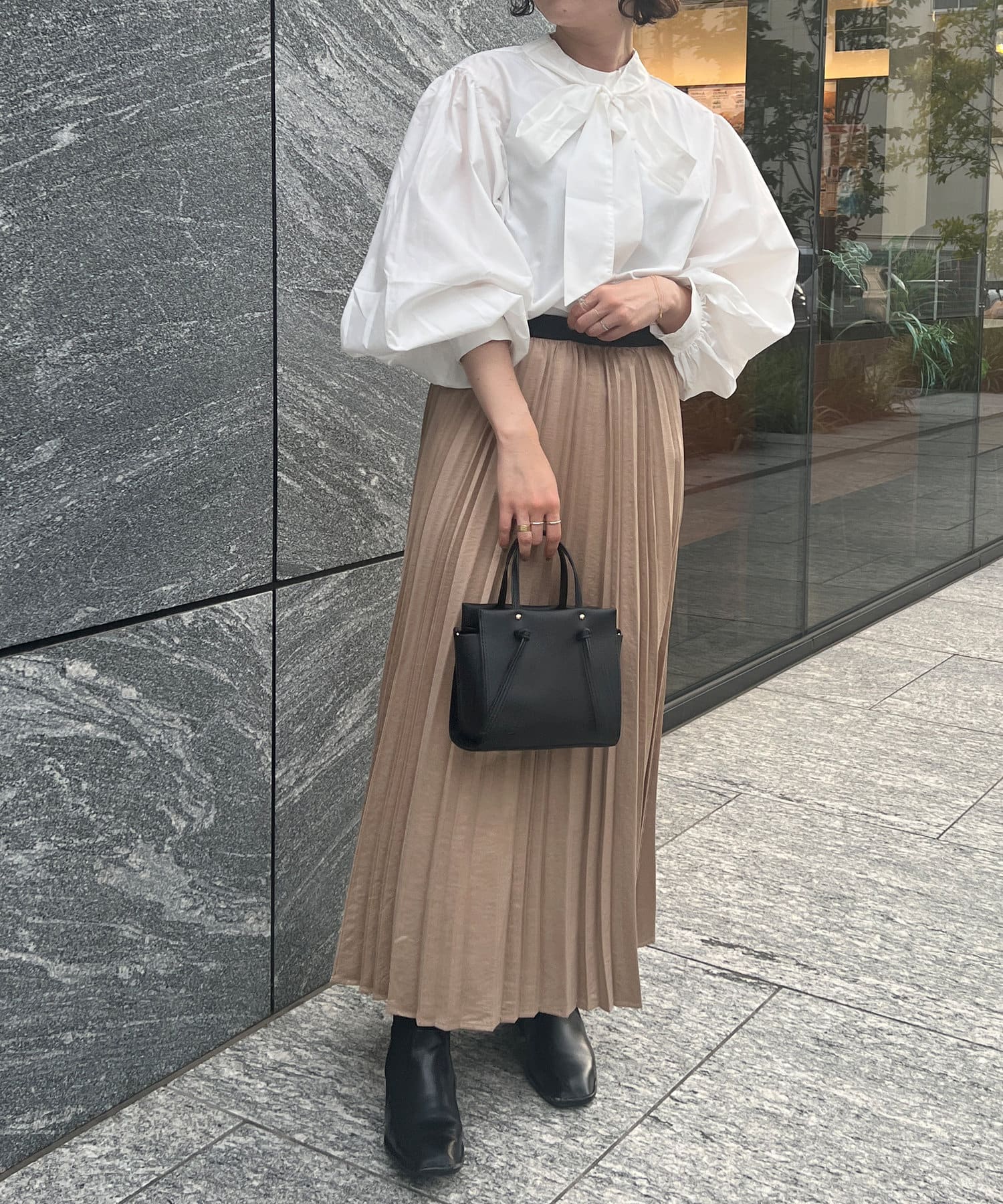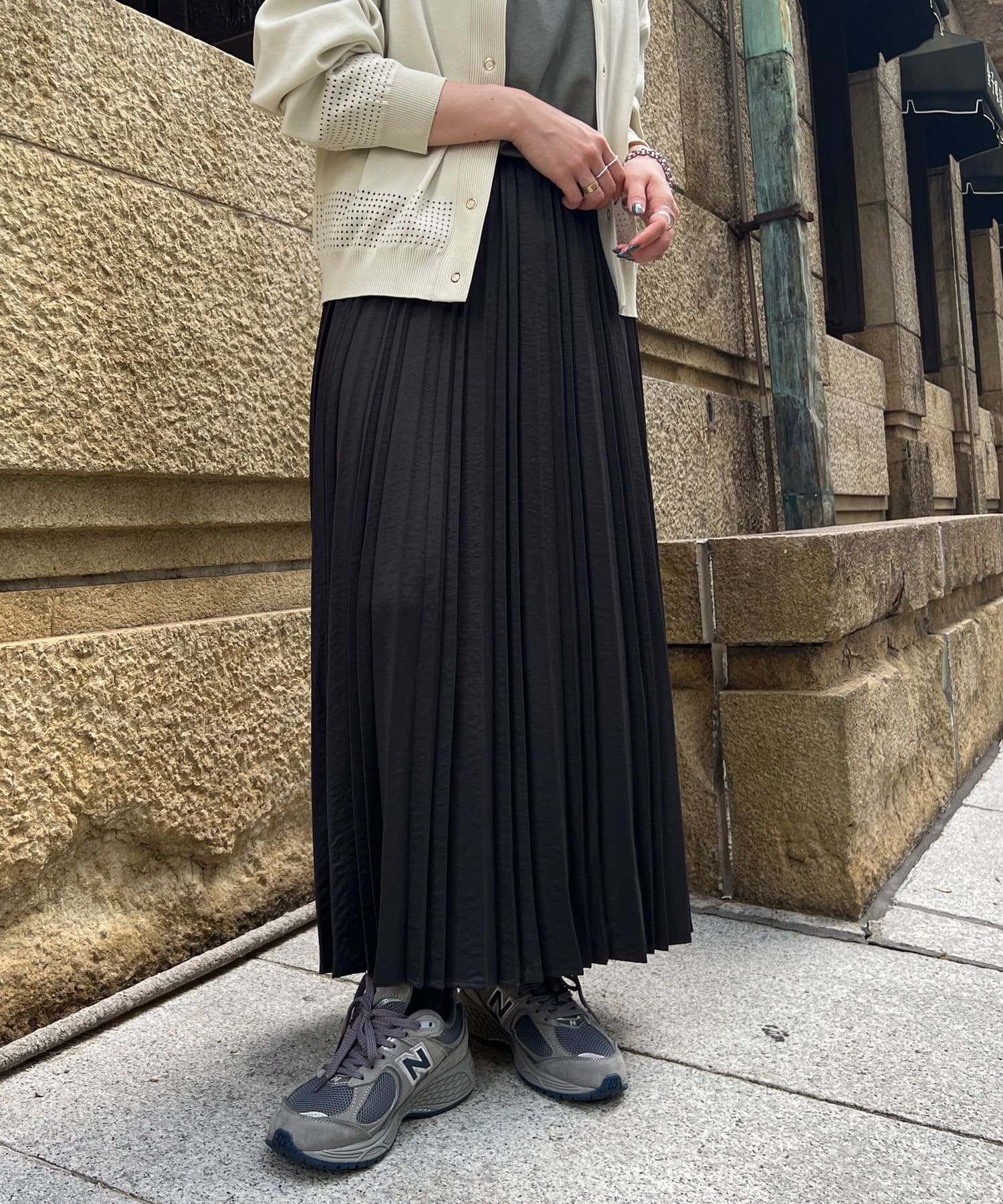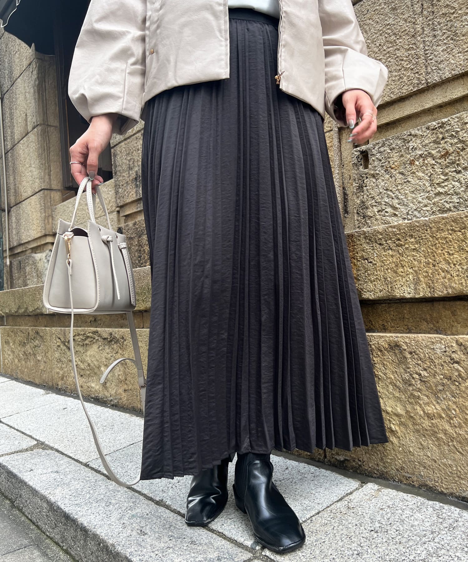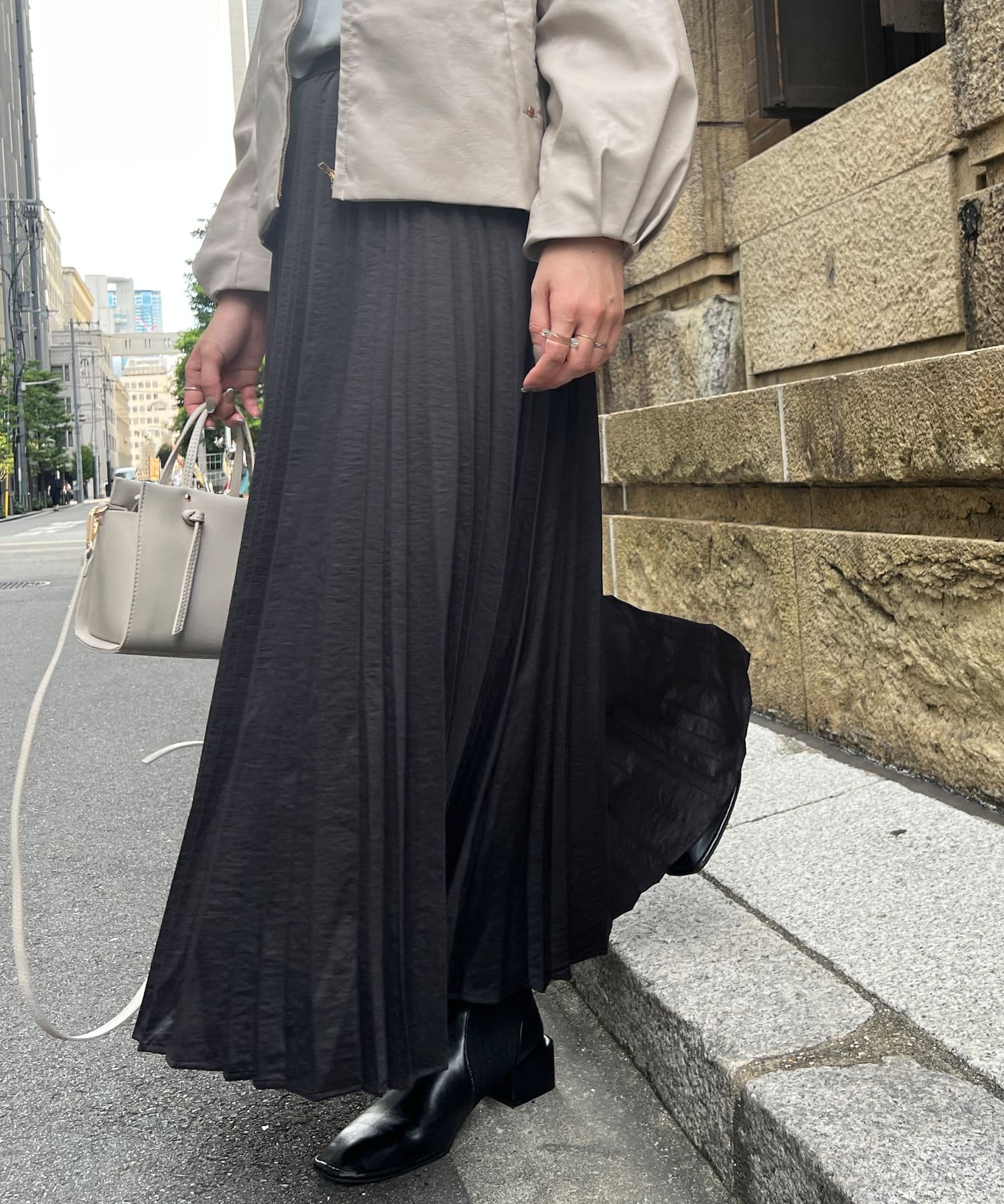 程よい光沢感が上品見えが叶うオトナプリーツスカート