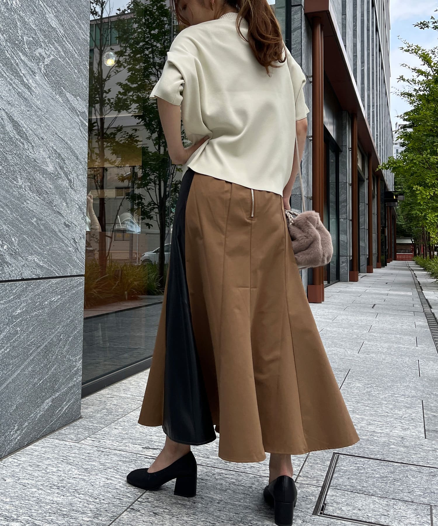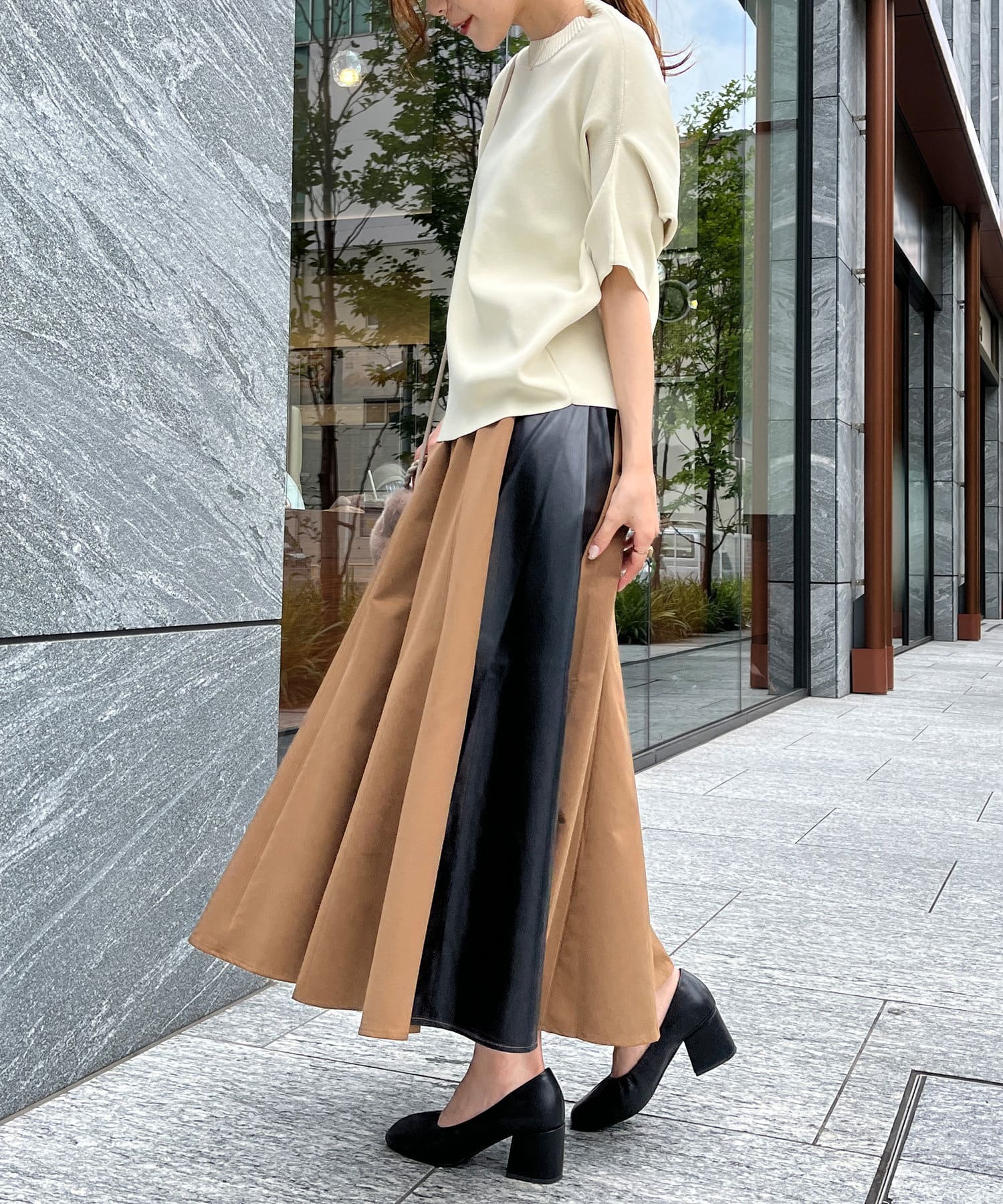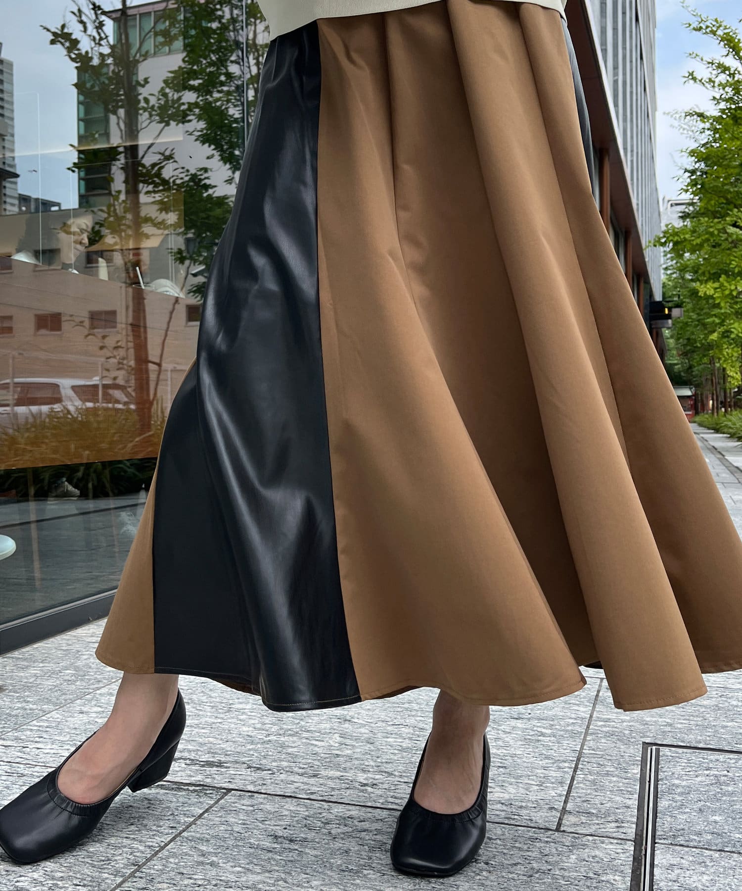 レザーが程よいアクセントを作ってくれる!!広がりすぎない美シルエットスカート