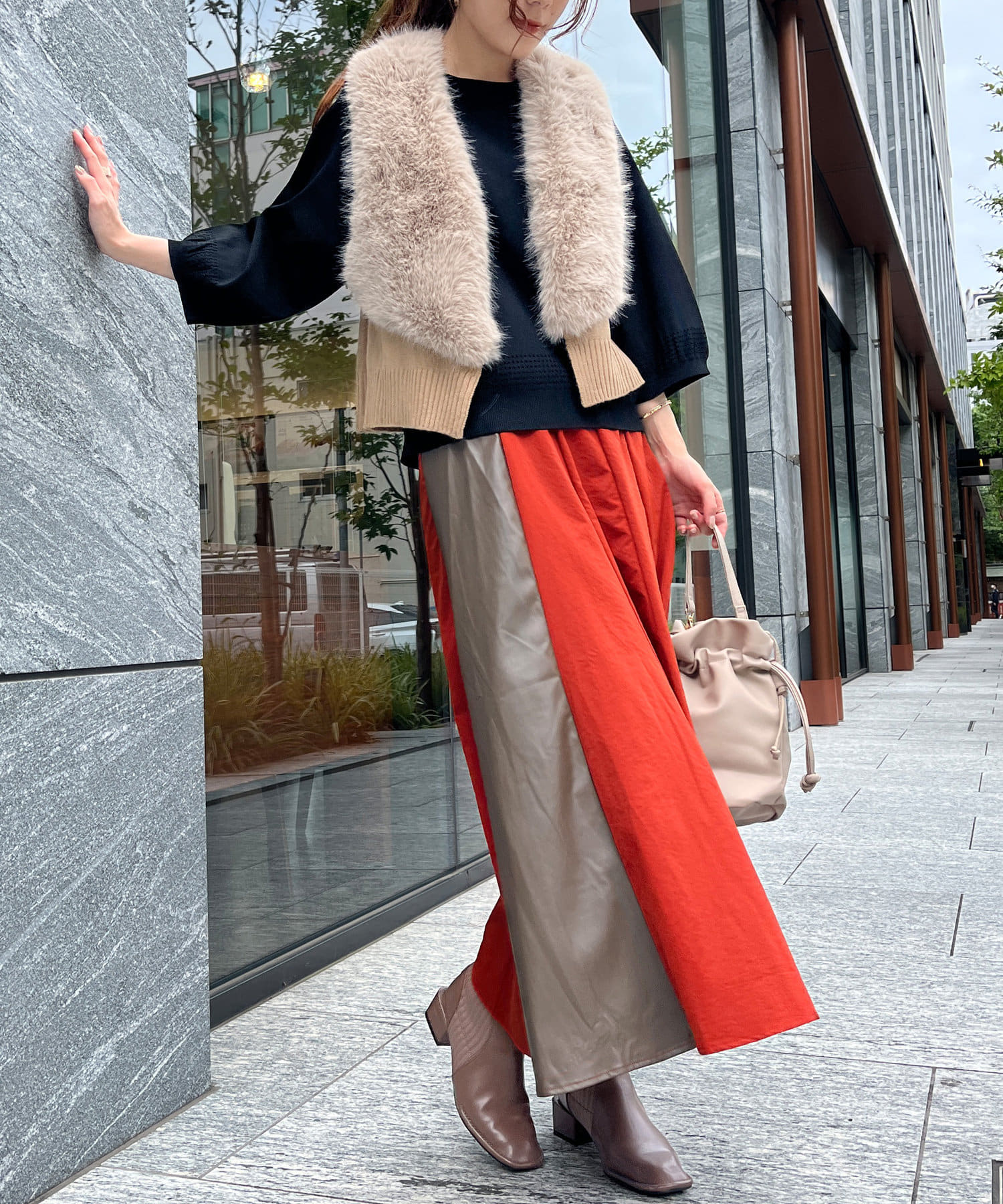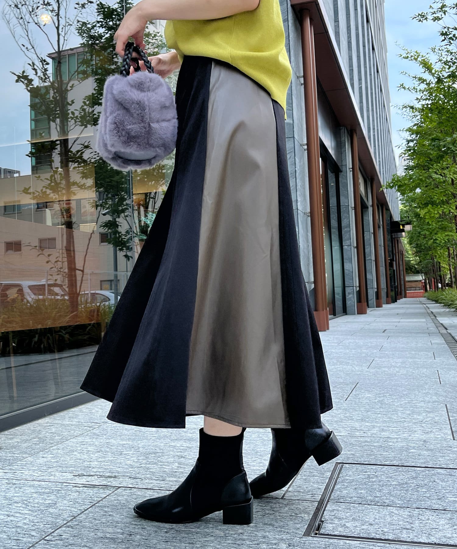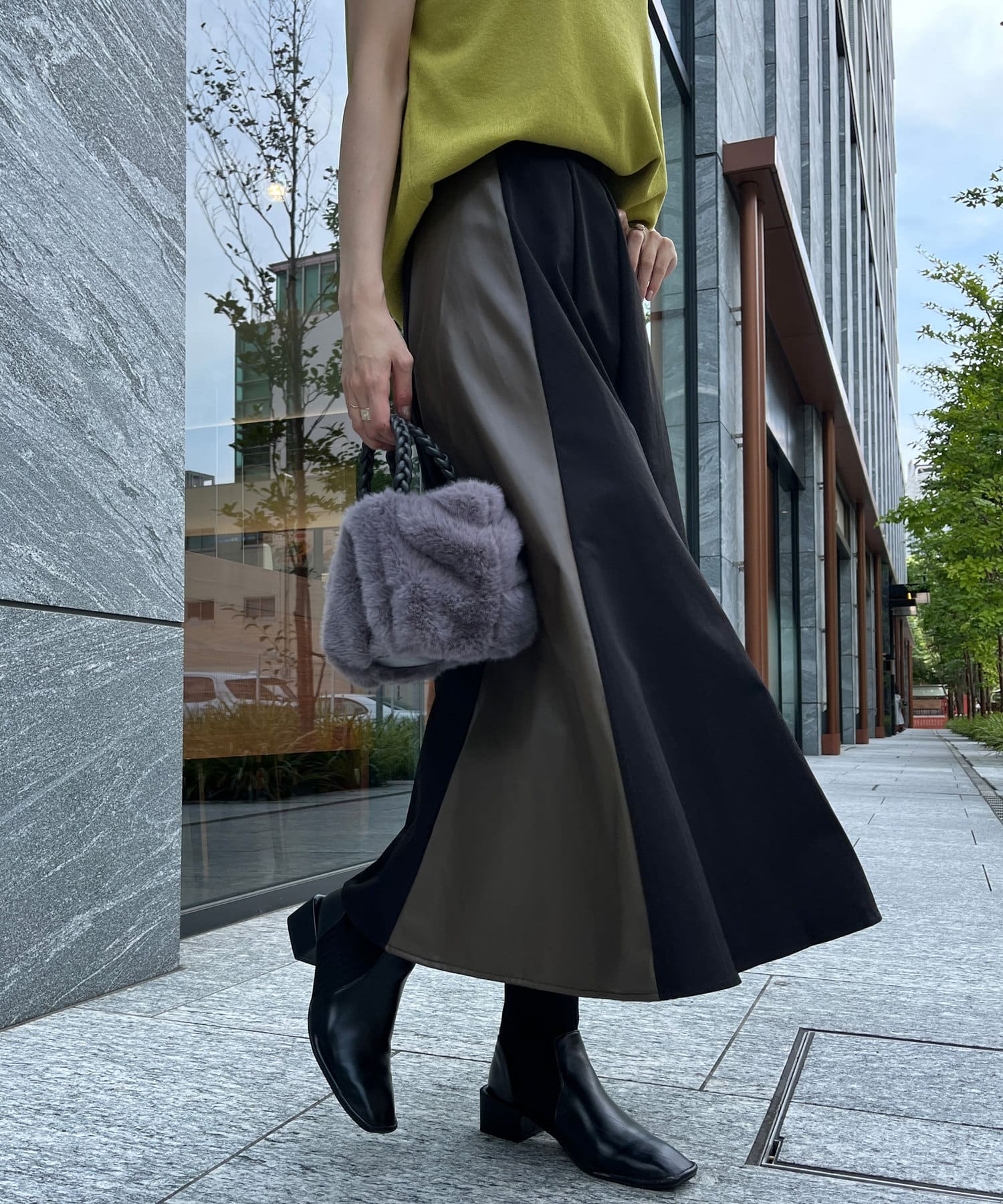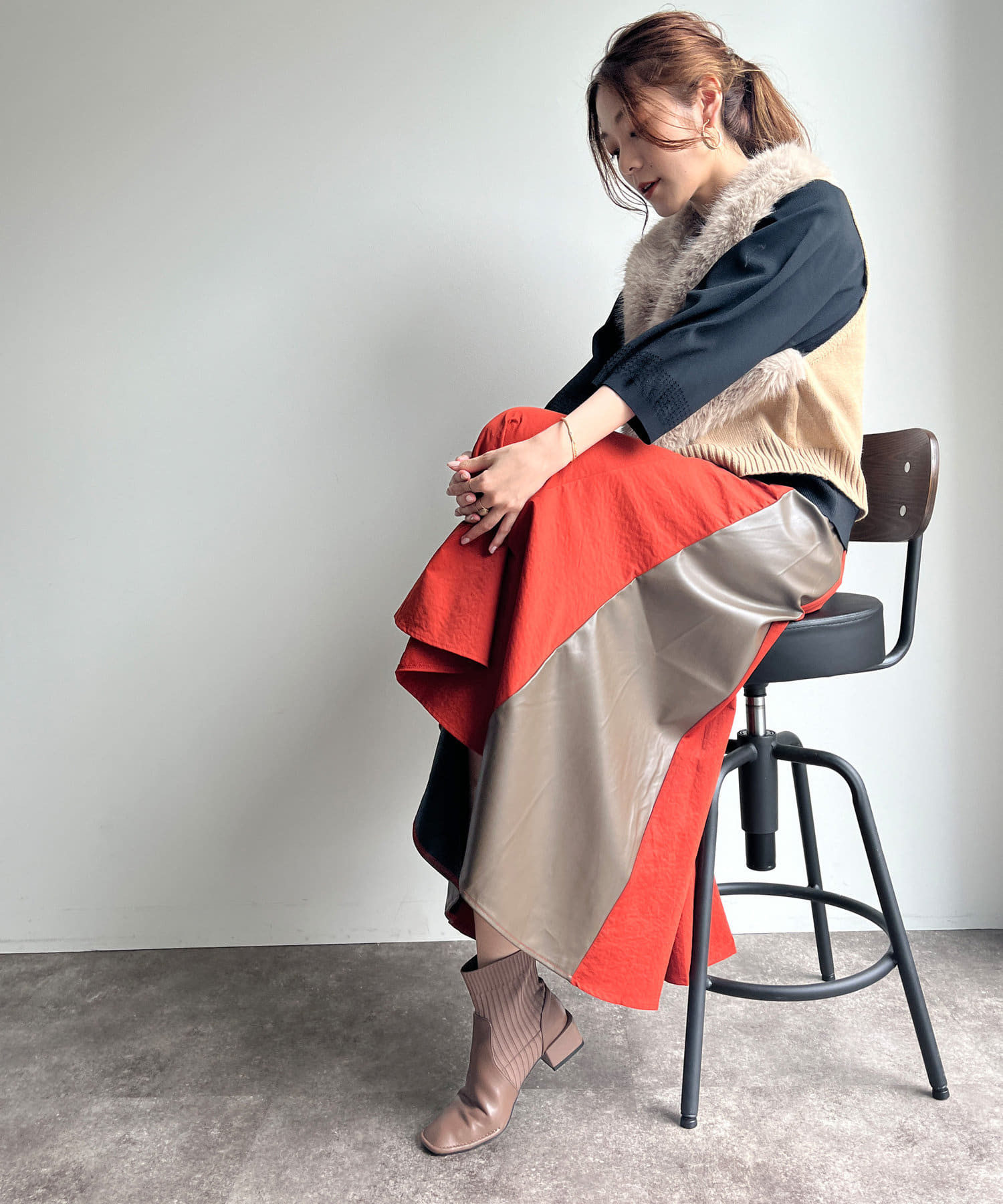 レザーが程よいアクセントを作ってくれる!!広がりすぎない美シルエットスカート