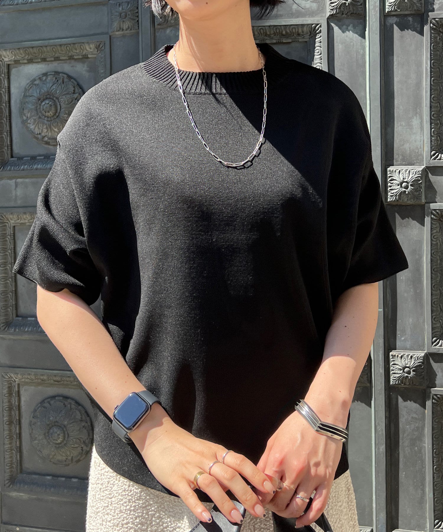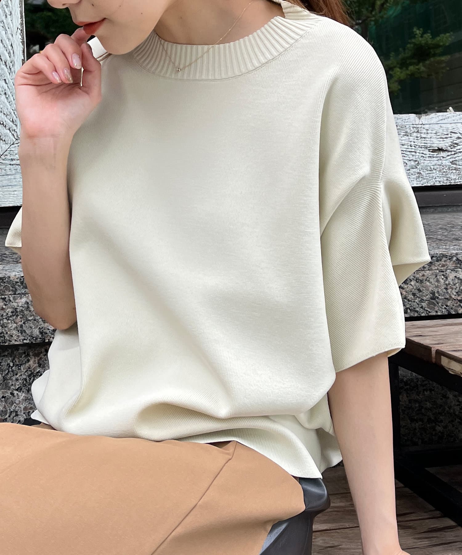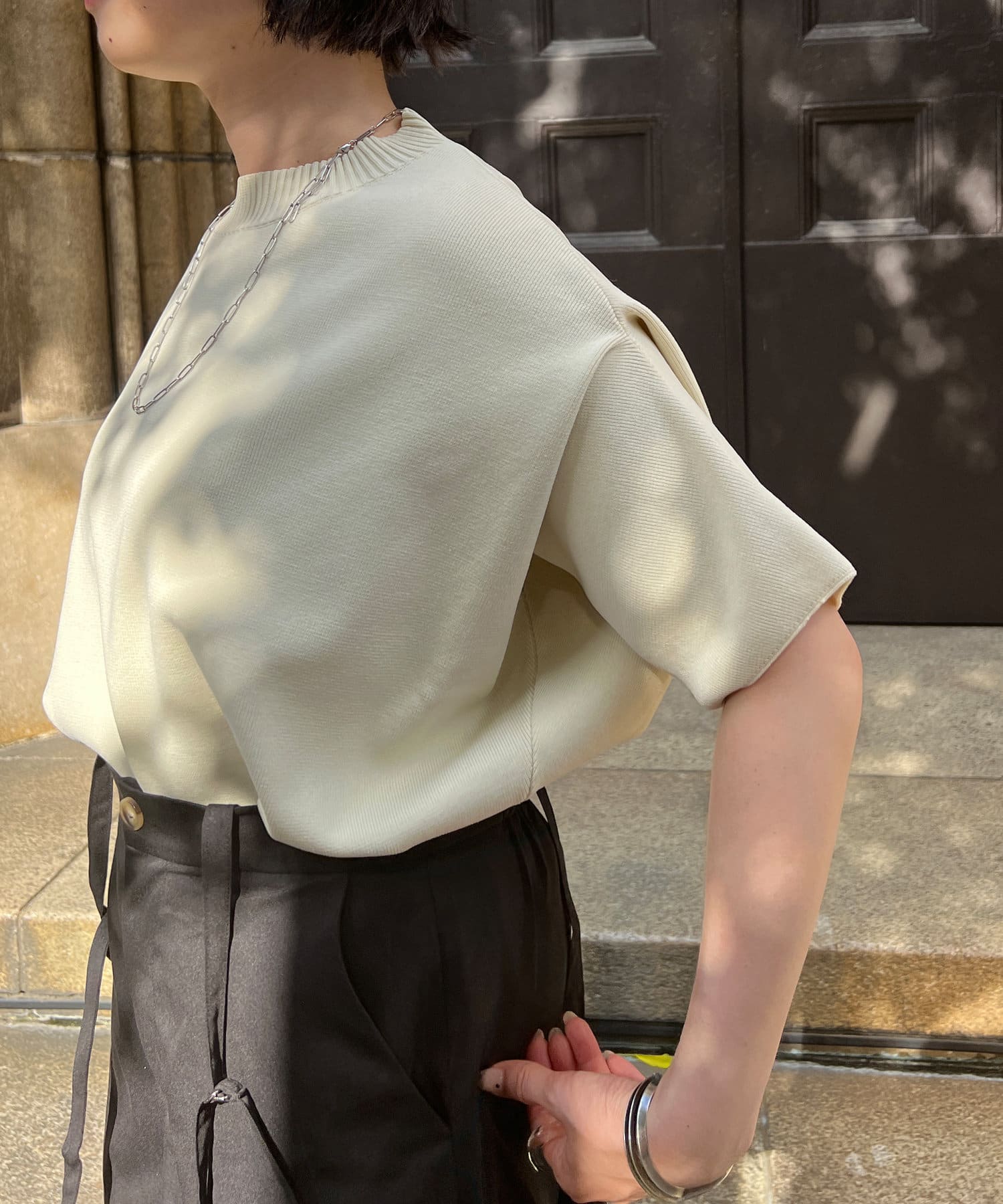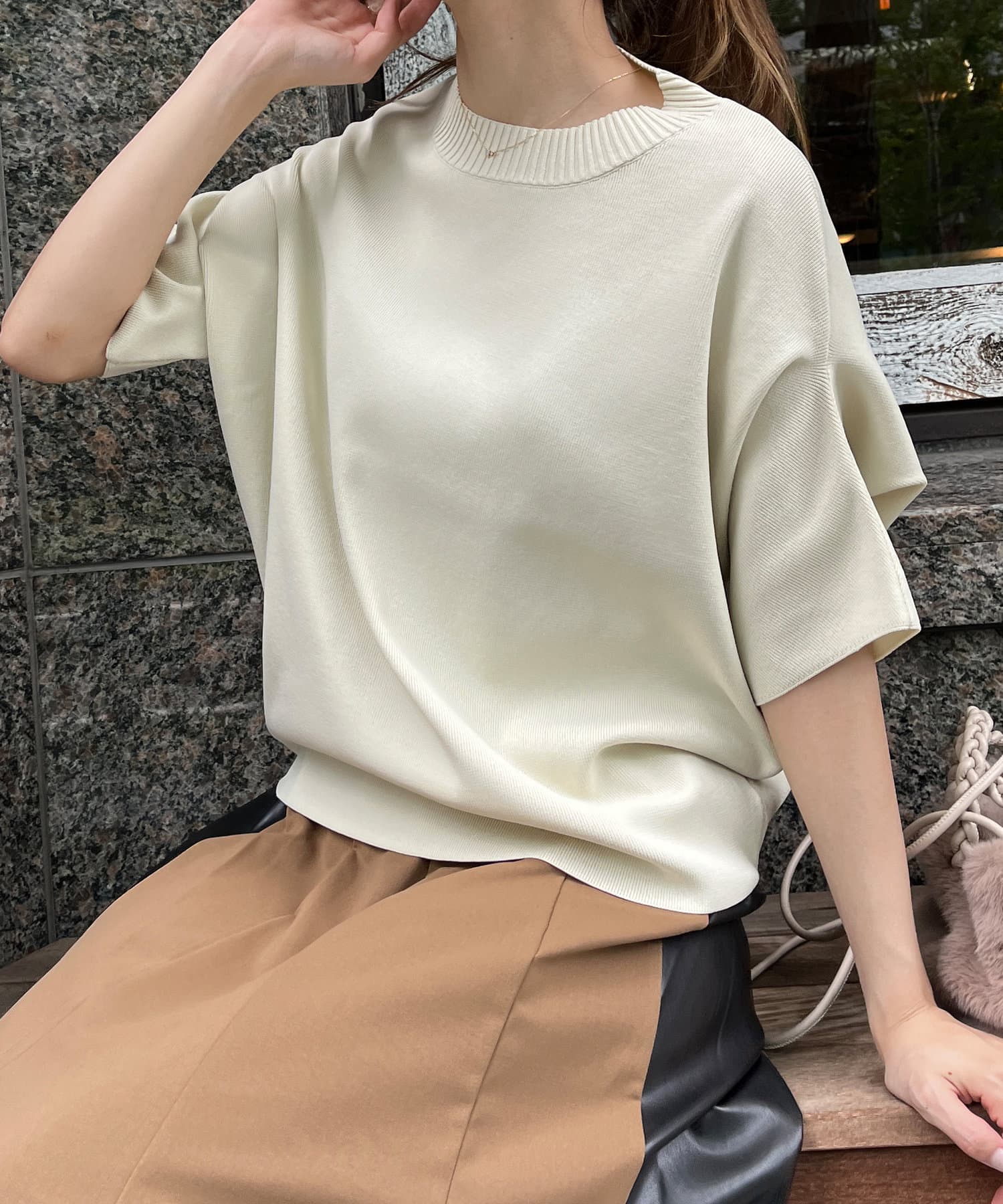 アップスリーブのデザインが二の腕を華奢に見せてくれるオトナに嬉しい万能ニット