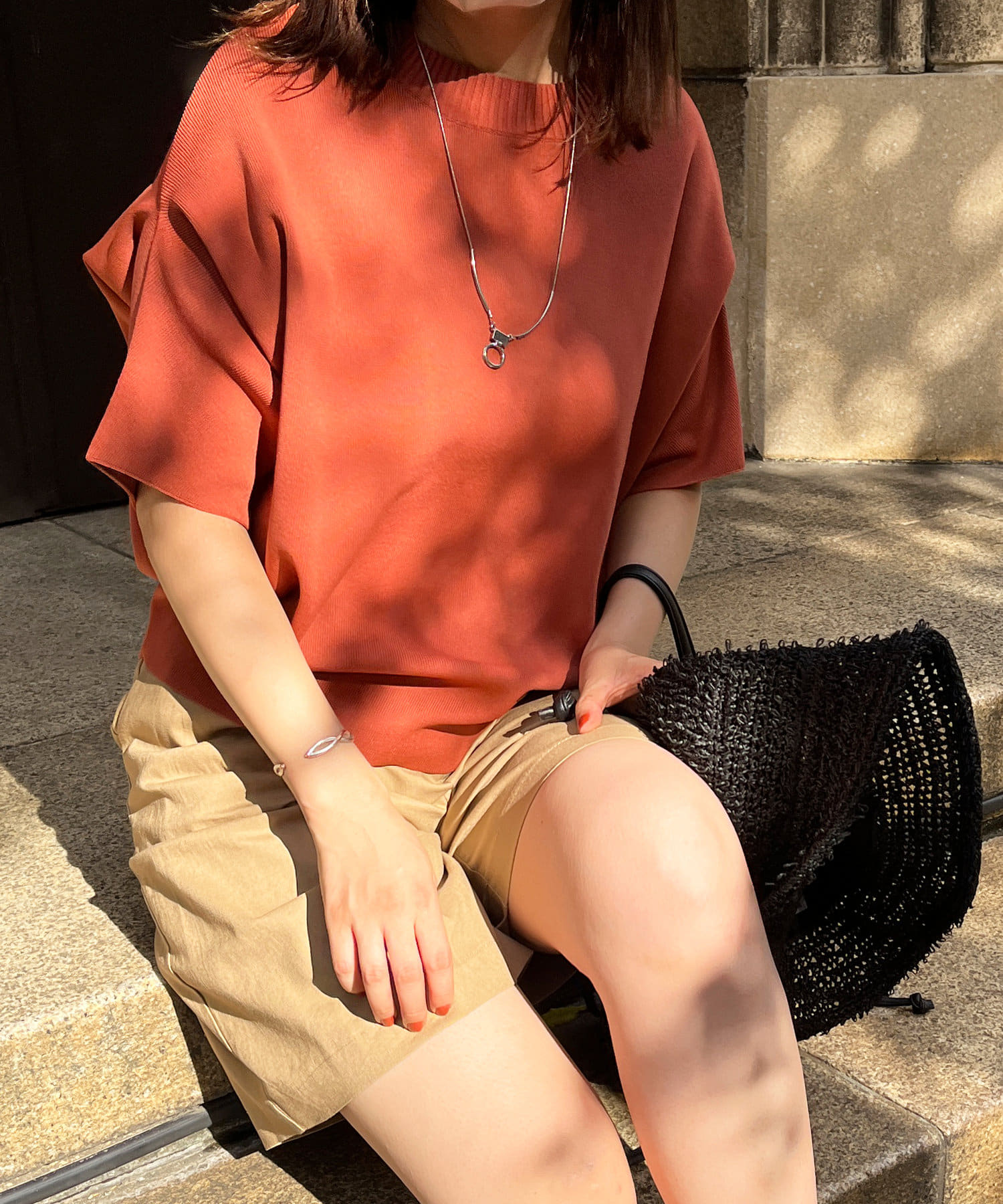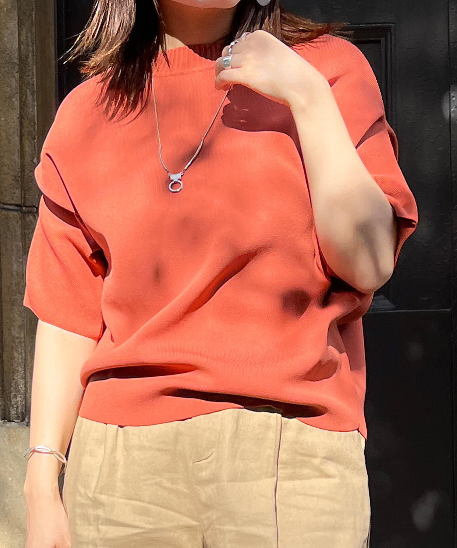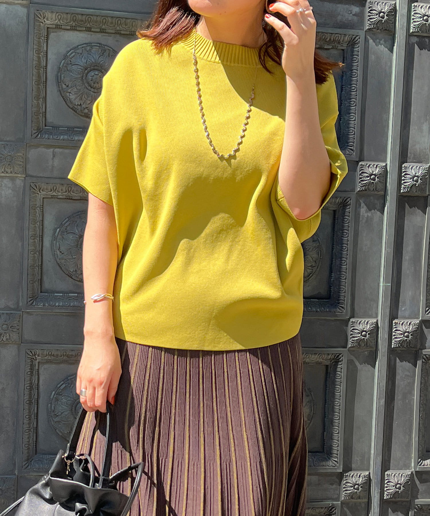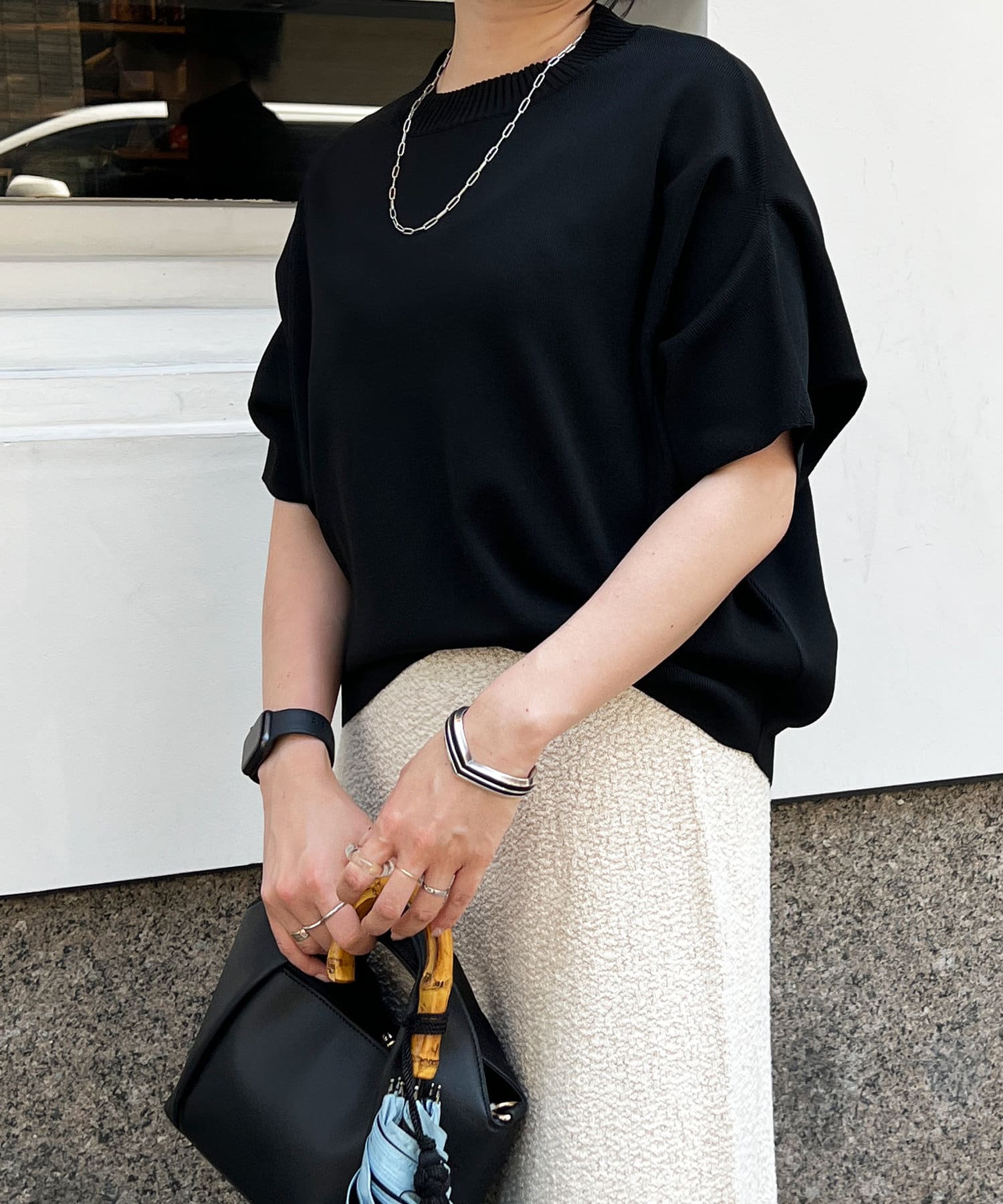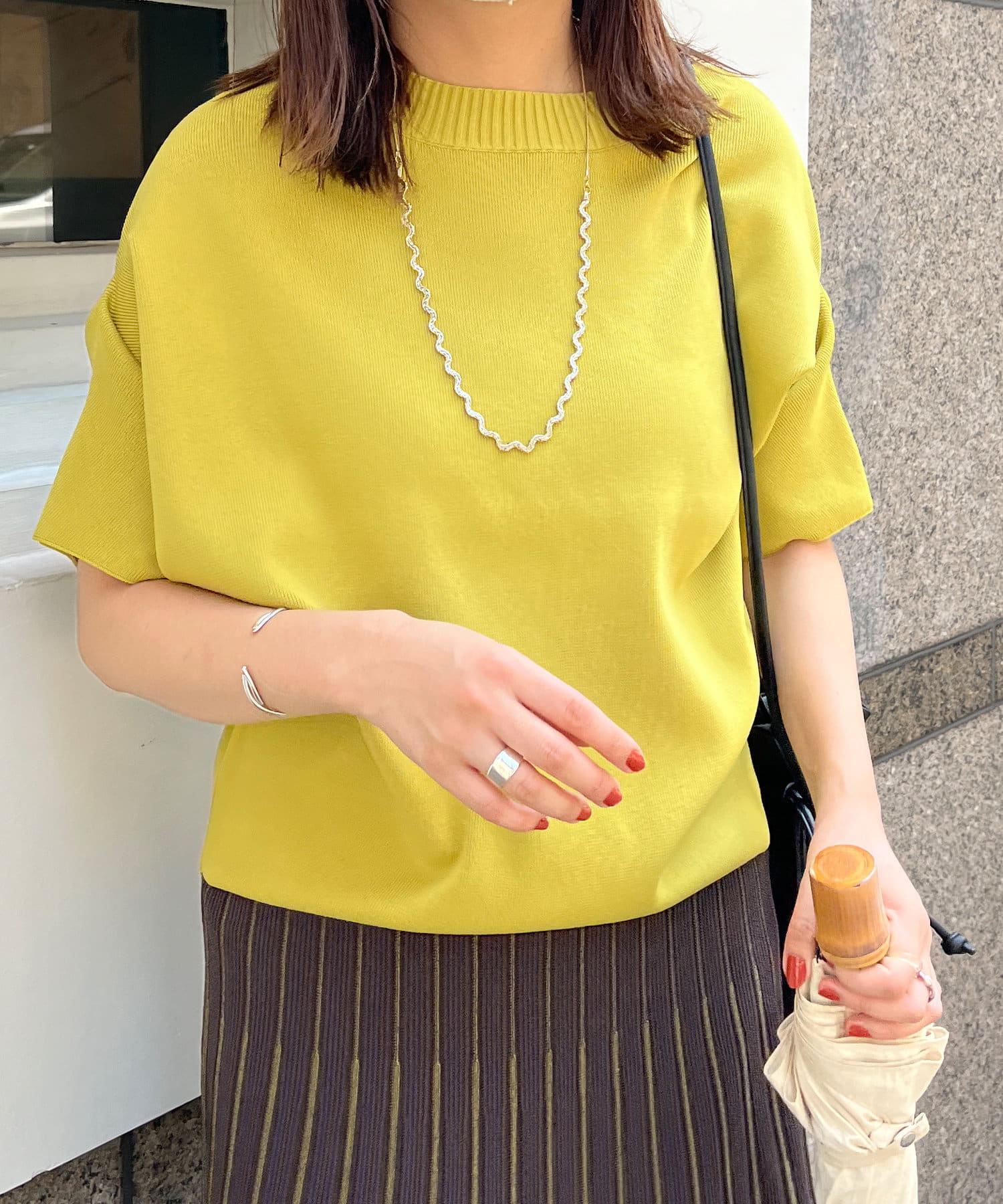 アップスリーブのデザインが二の腕を華奢に見せてくれるオトナに嬉しい万能ニット